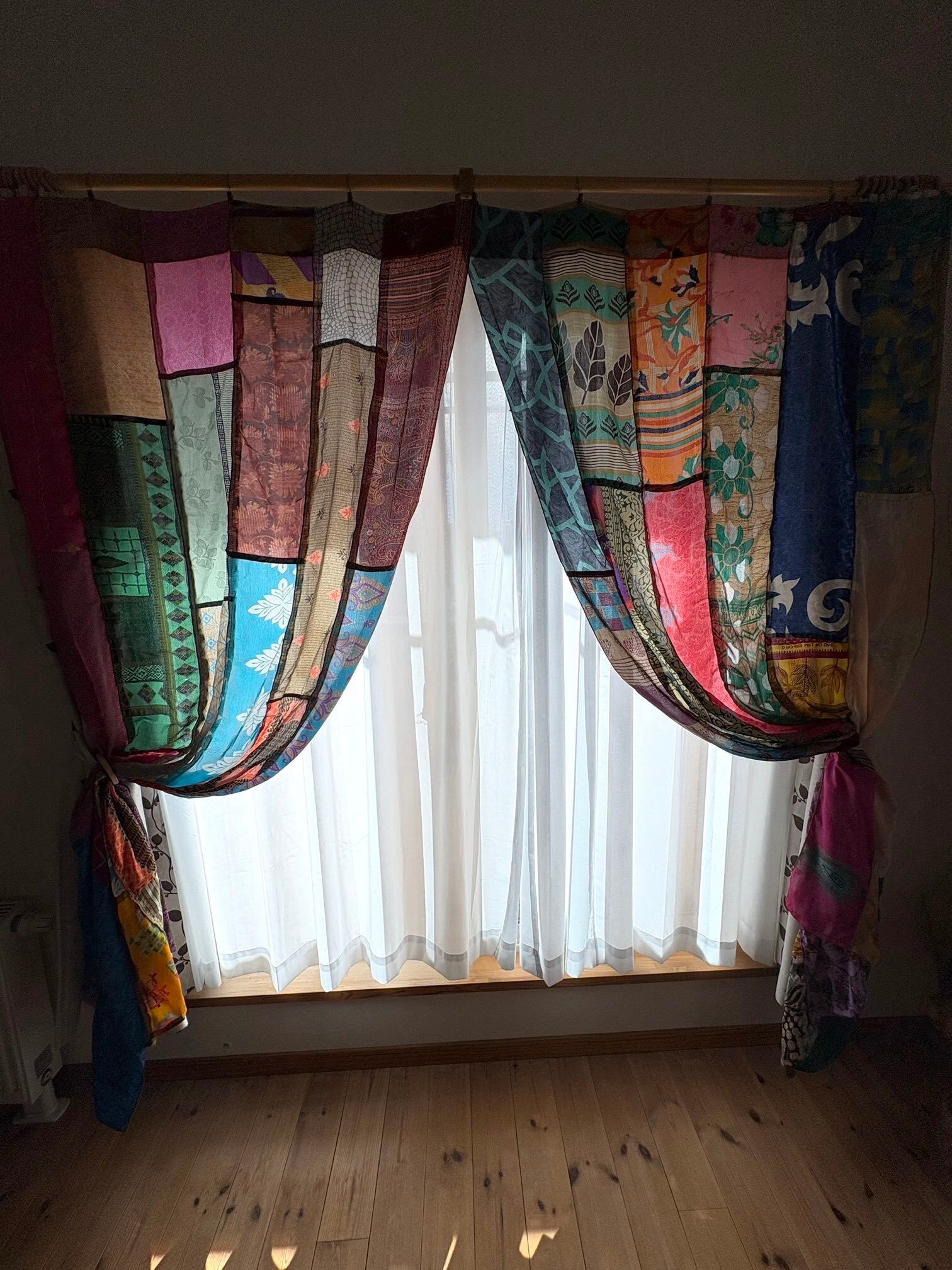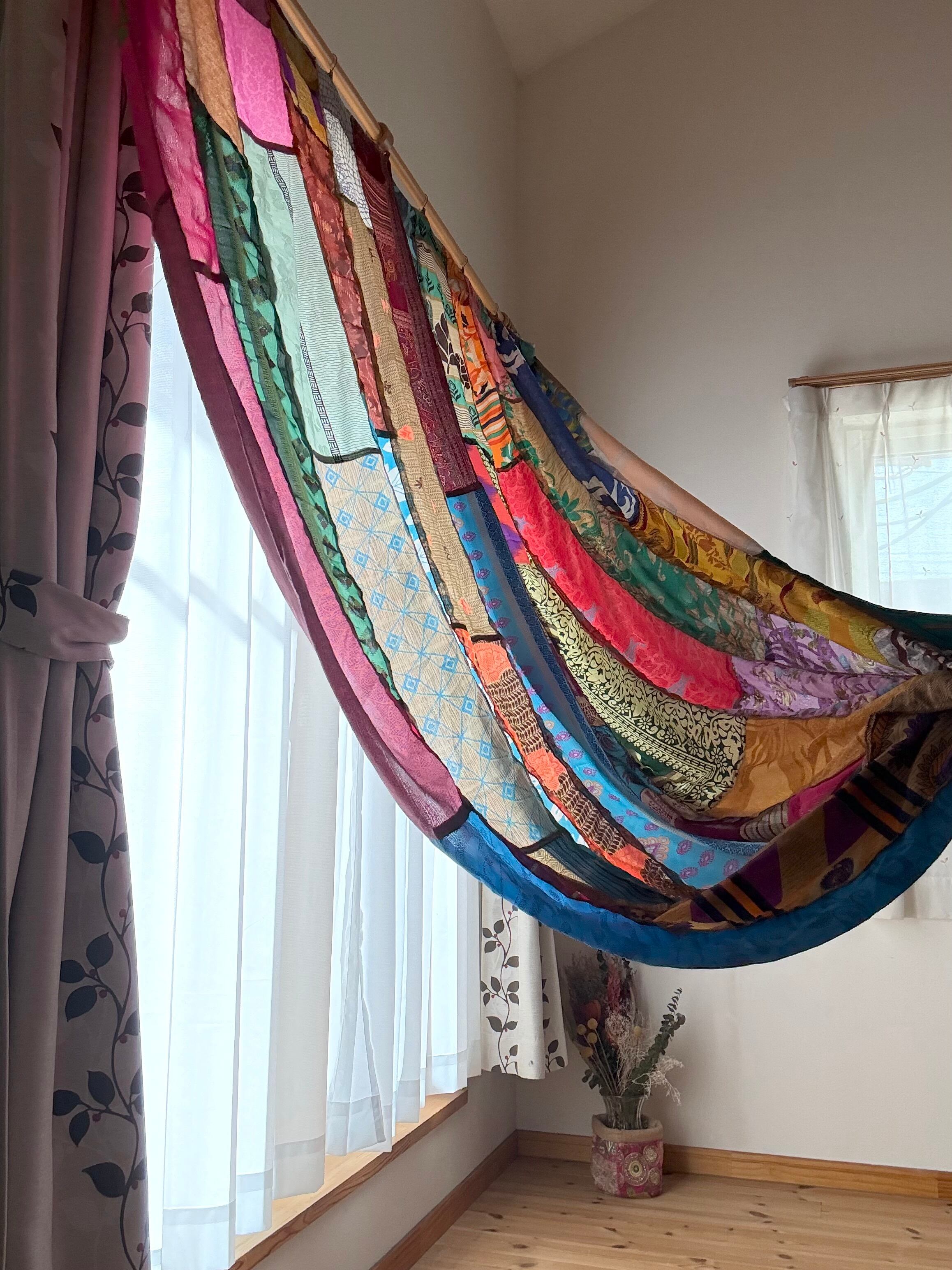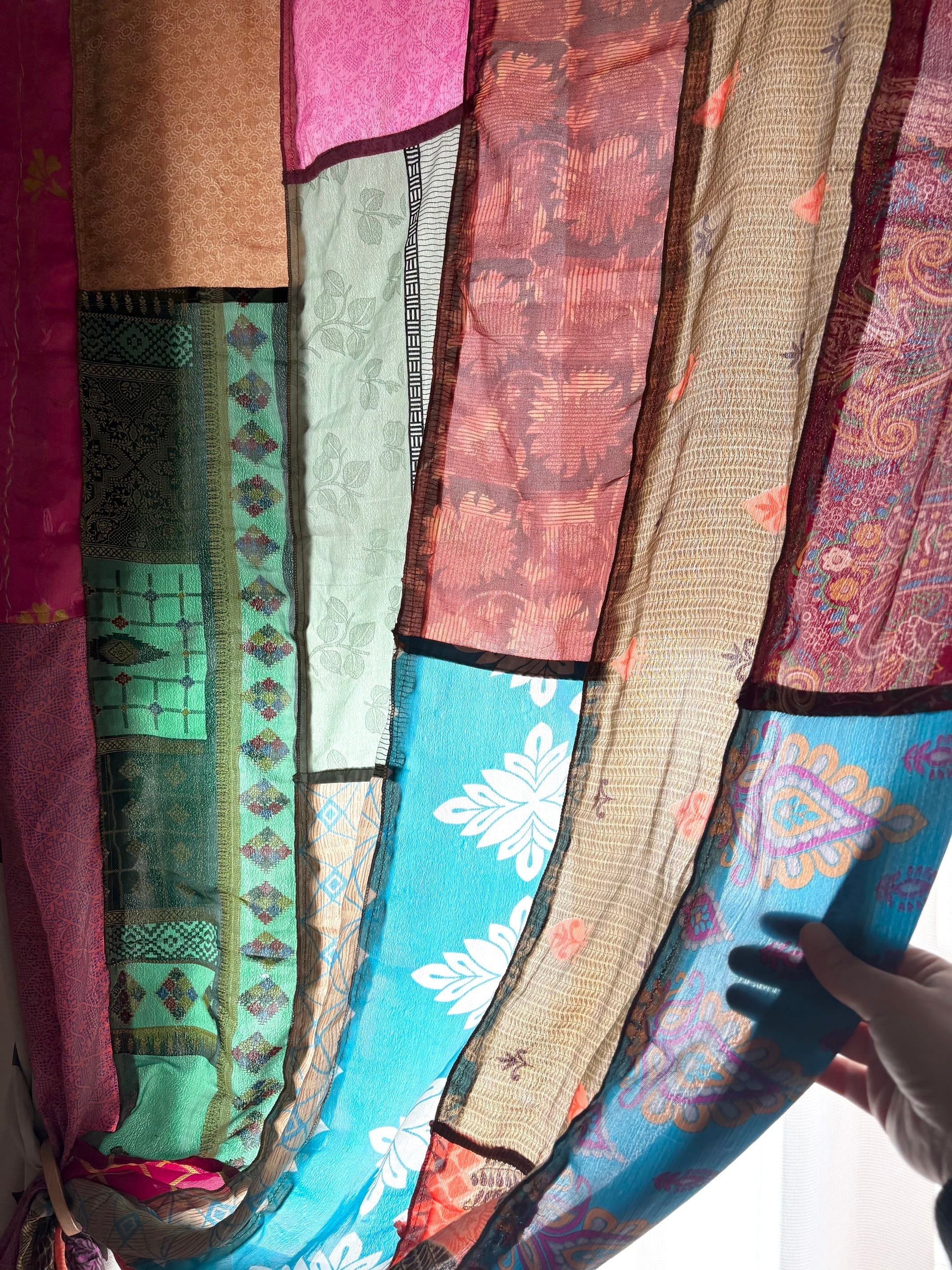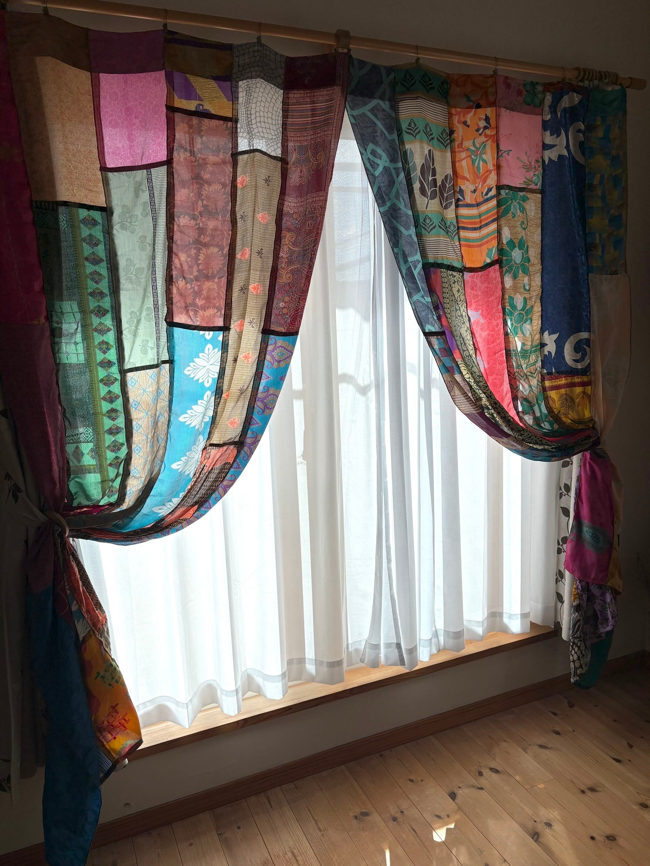 ヴィンテージサリーで出来たパッチワークシルクカーテン