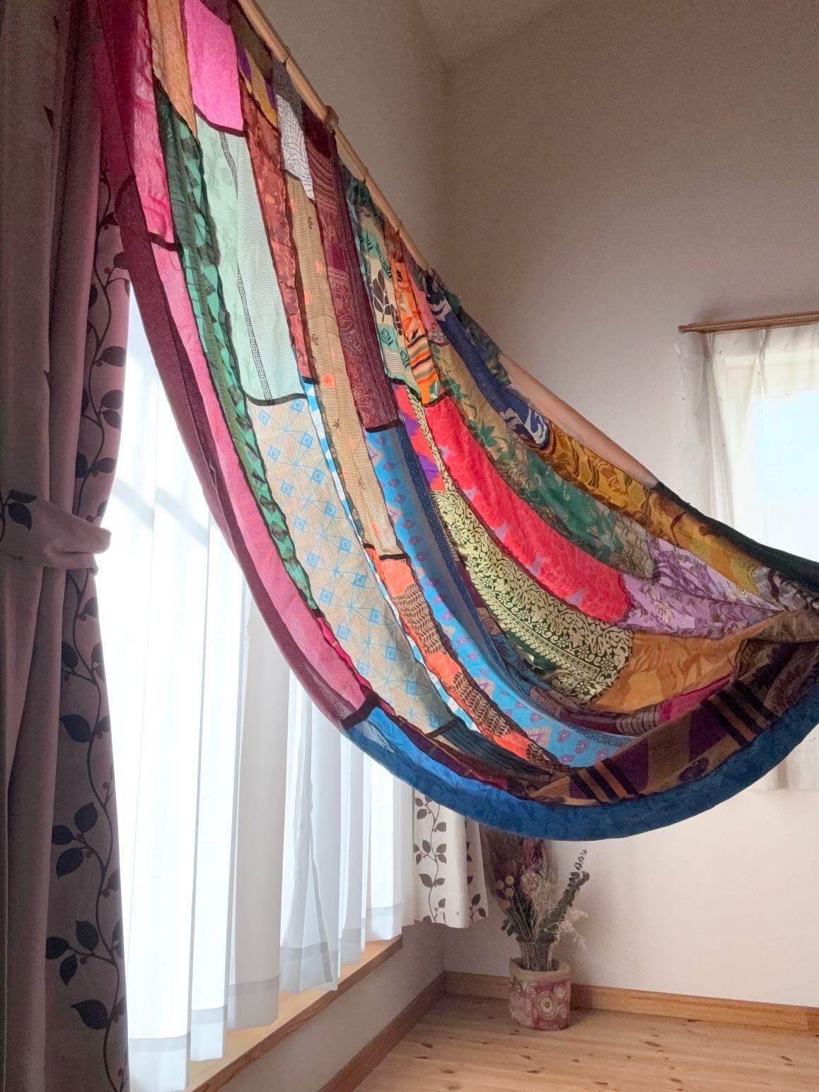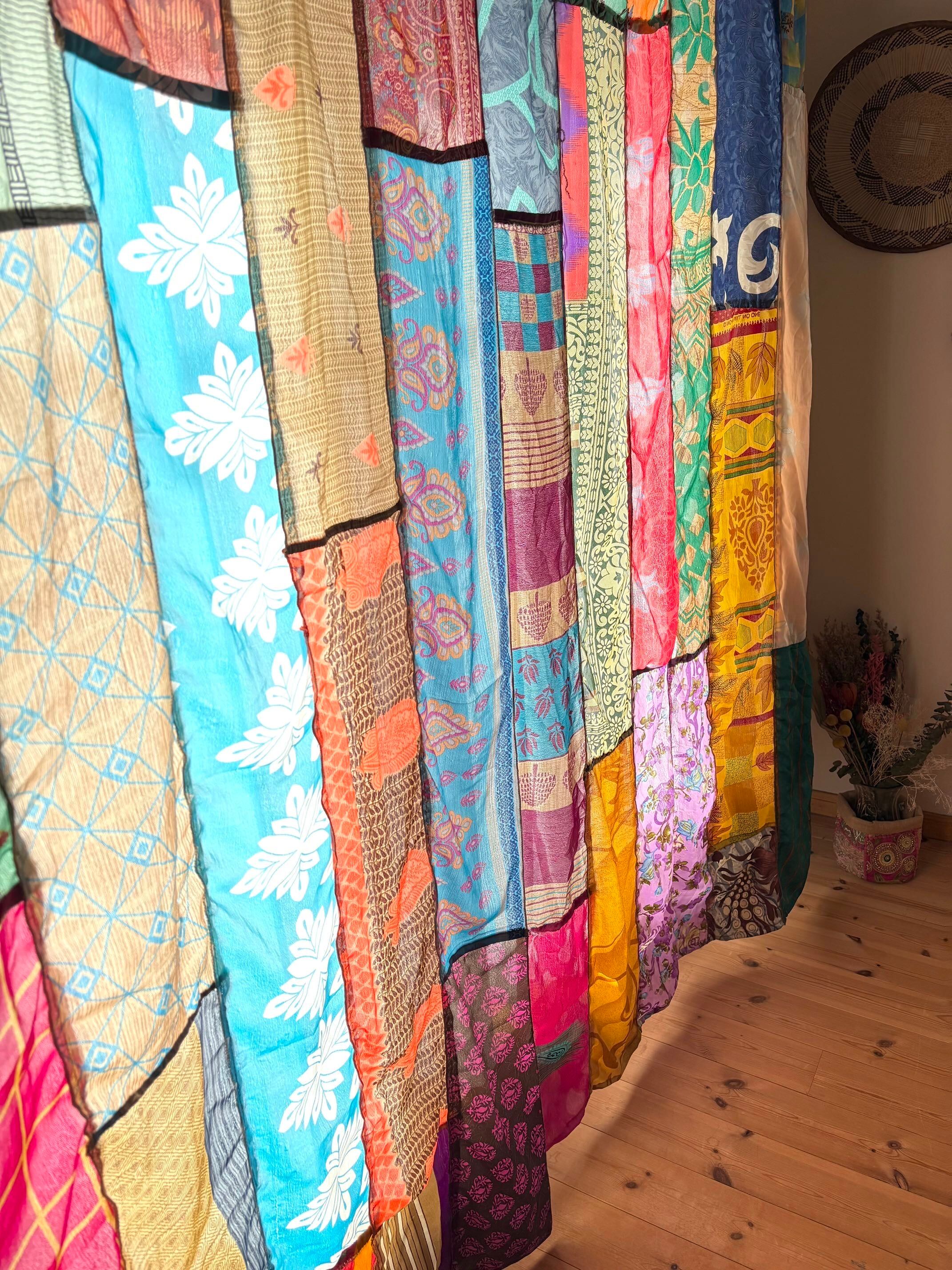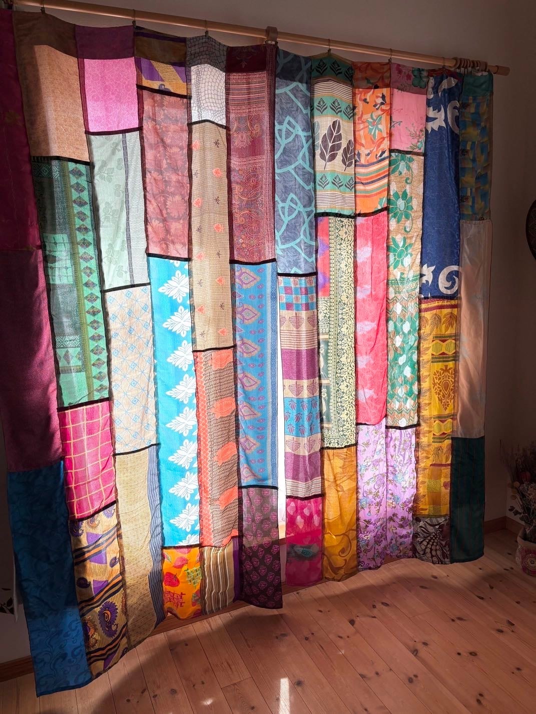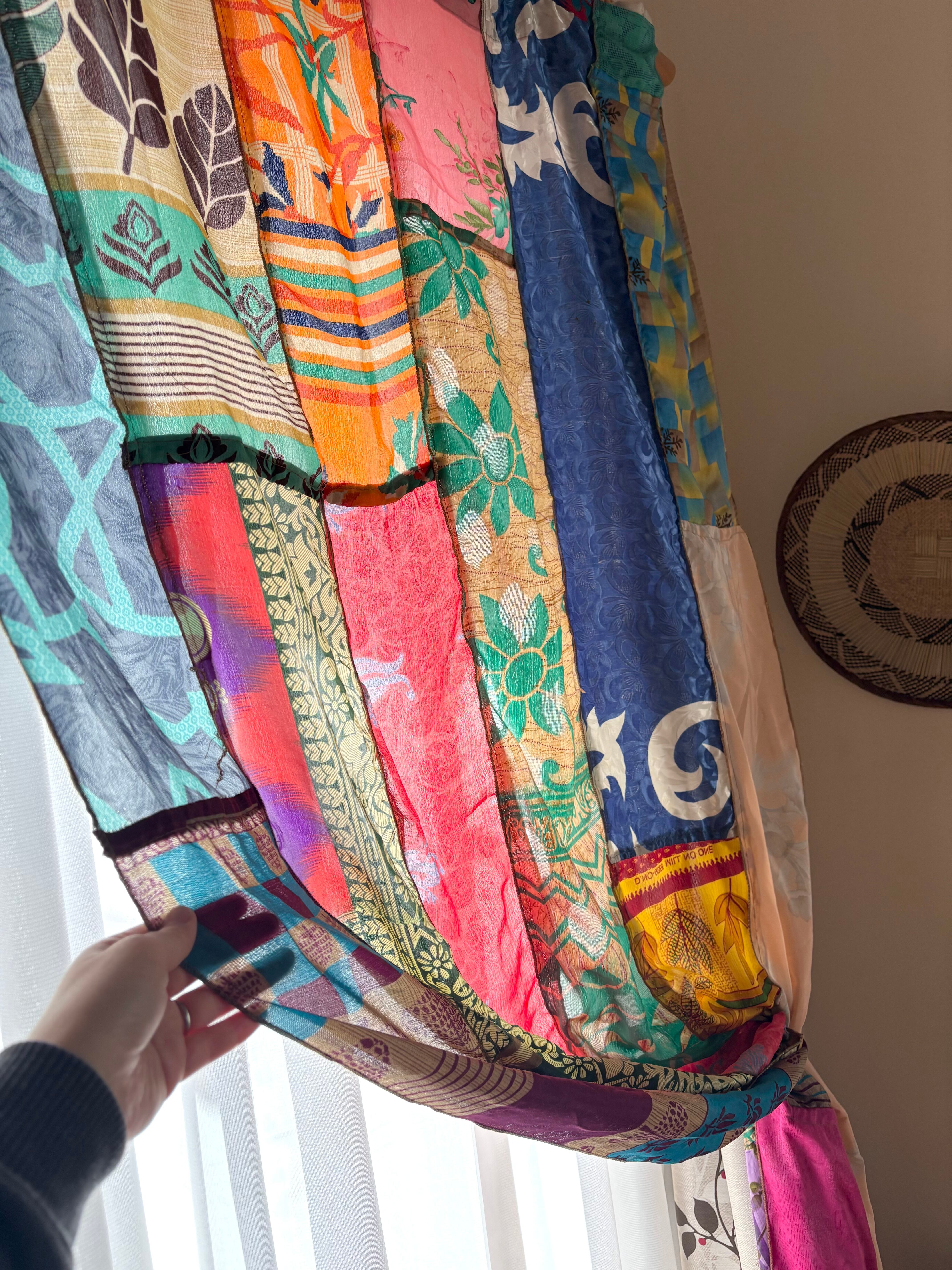 ヴィンテージサリーで出来たパッチワークシルクカーテン