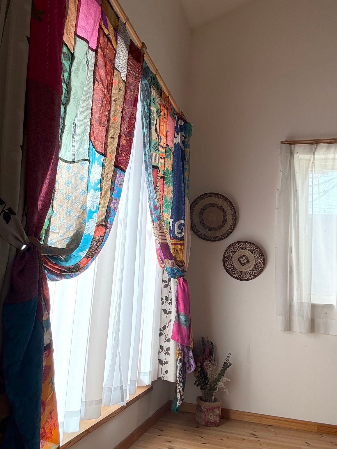 ※カーテンとしては新品未使用ですが、布はヴィンテージサリーを使っております。