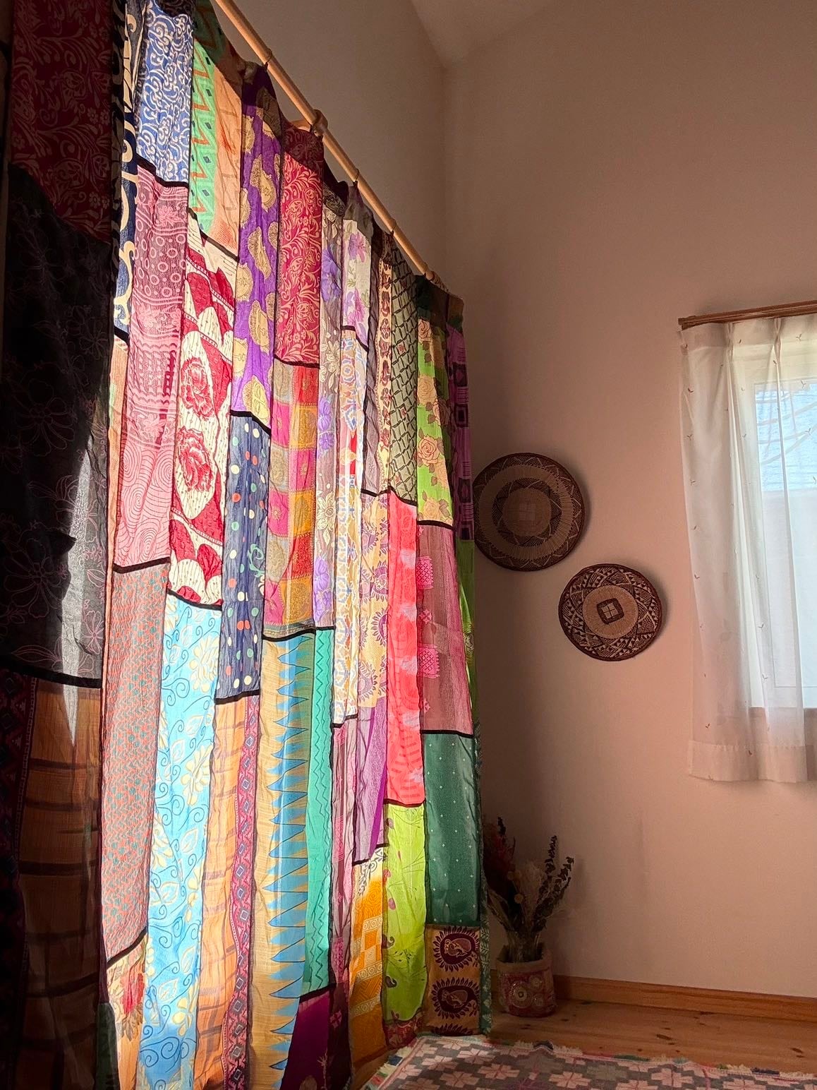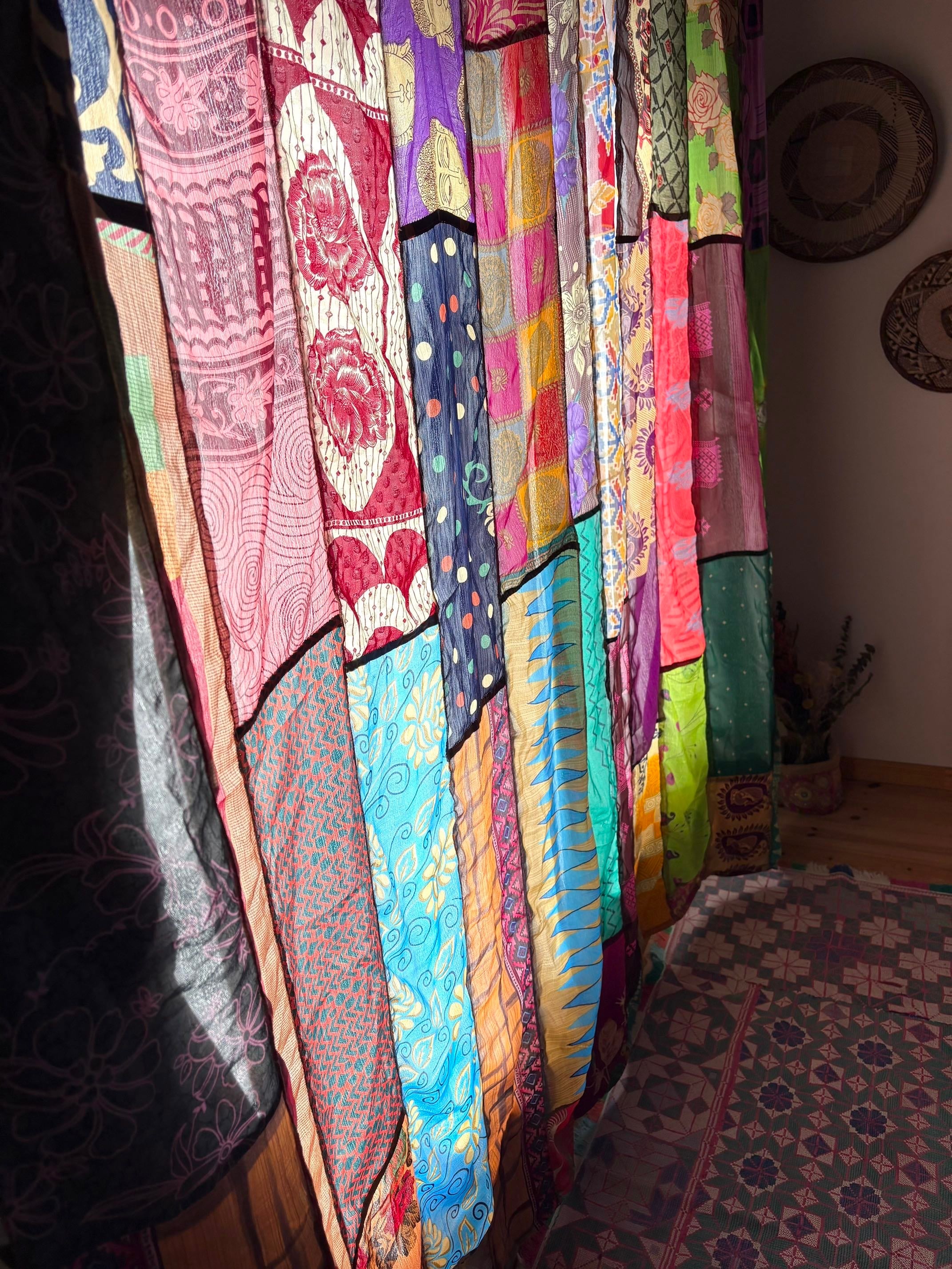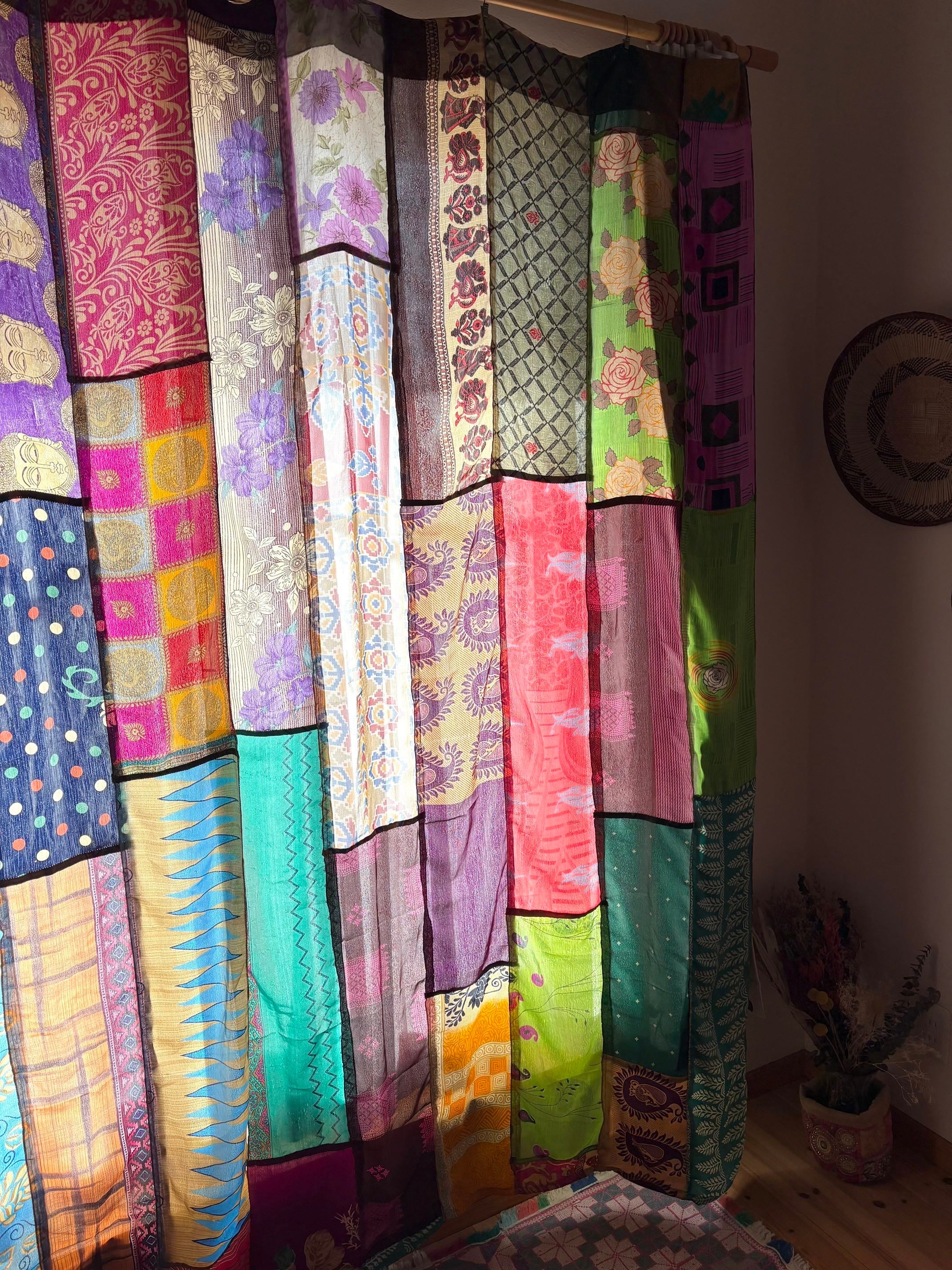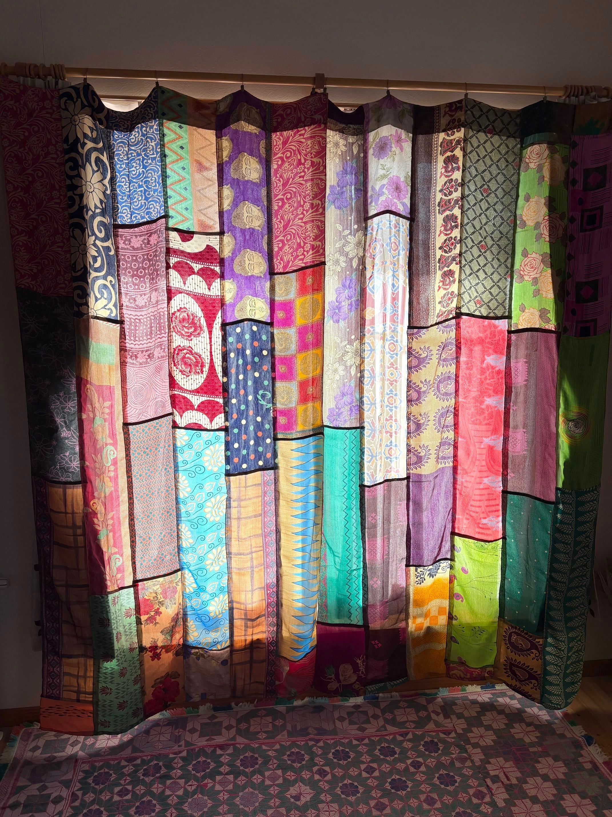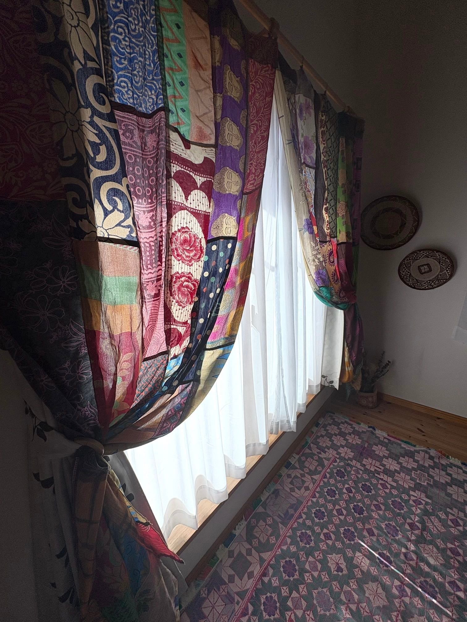 ヴィンテージサリーで出来たパッチワークシルクカーテン