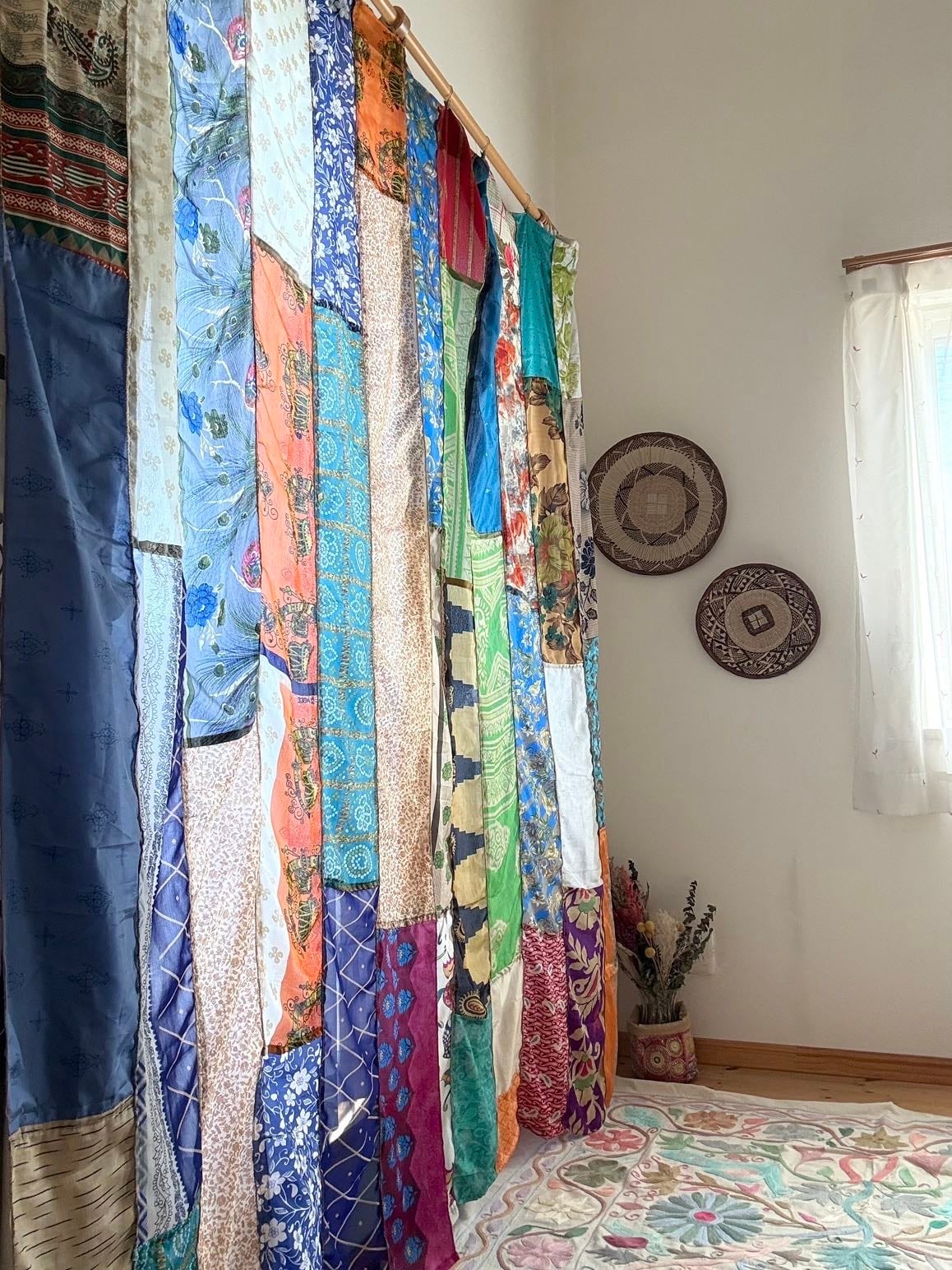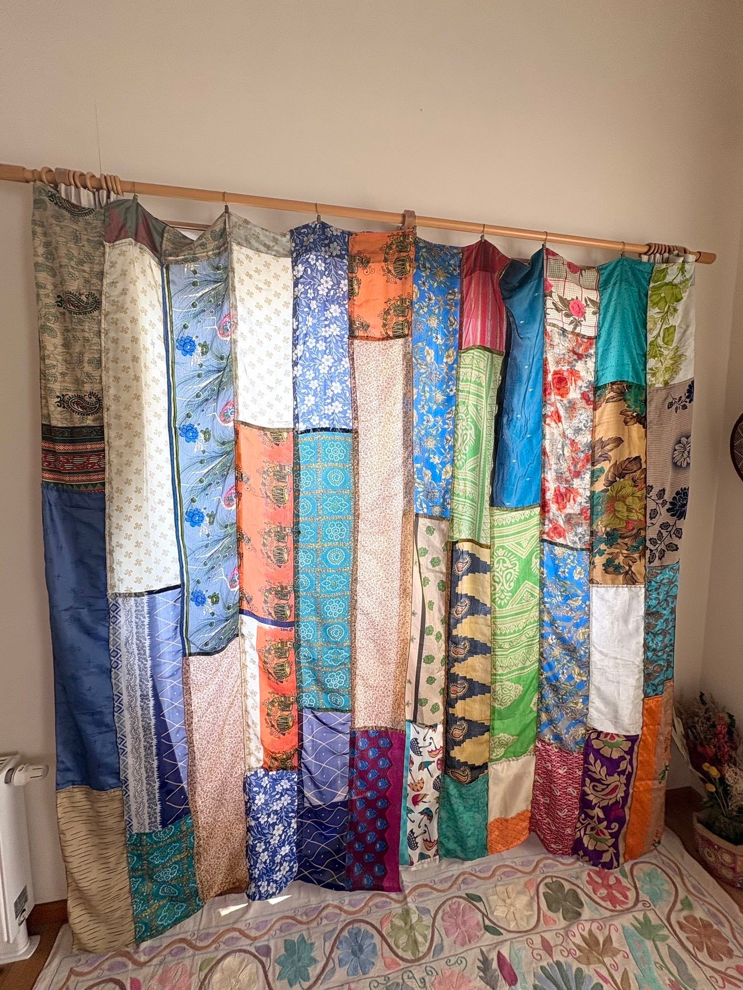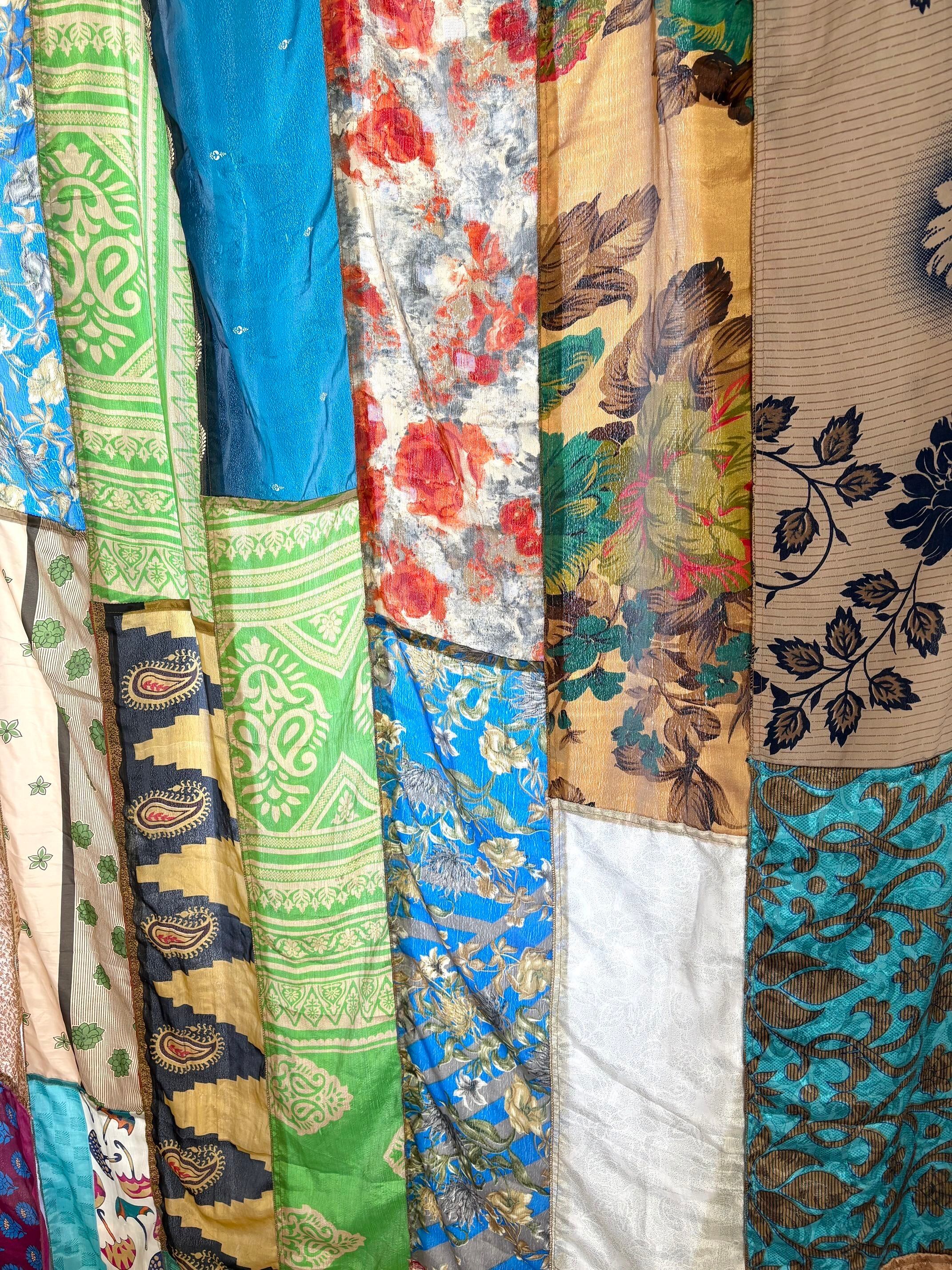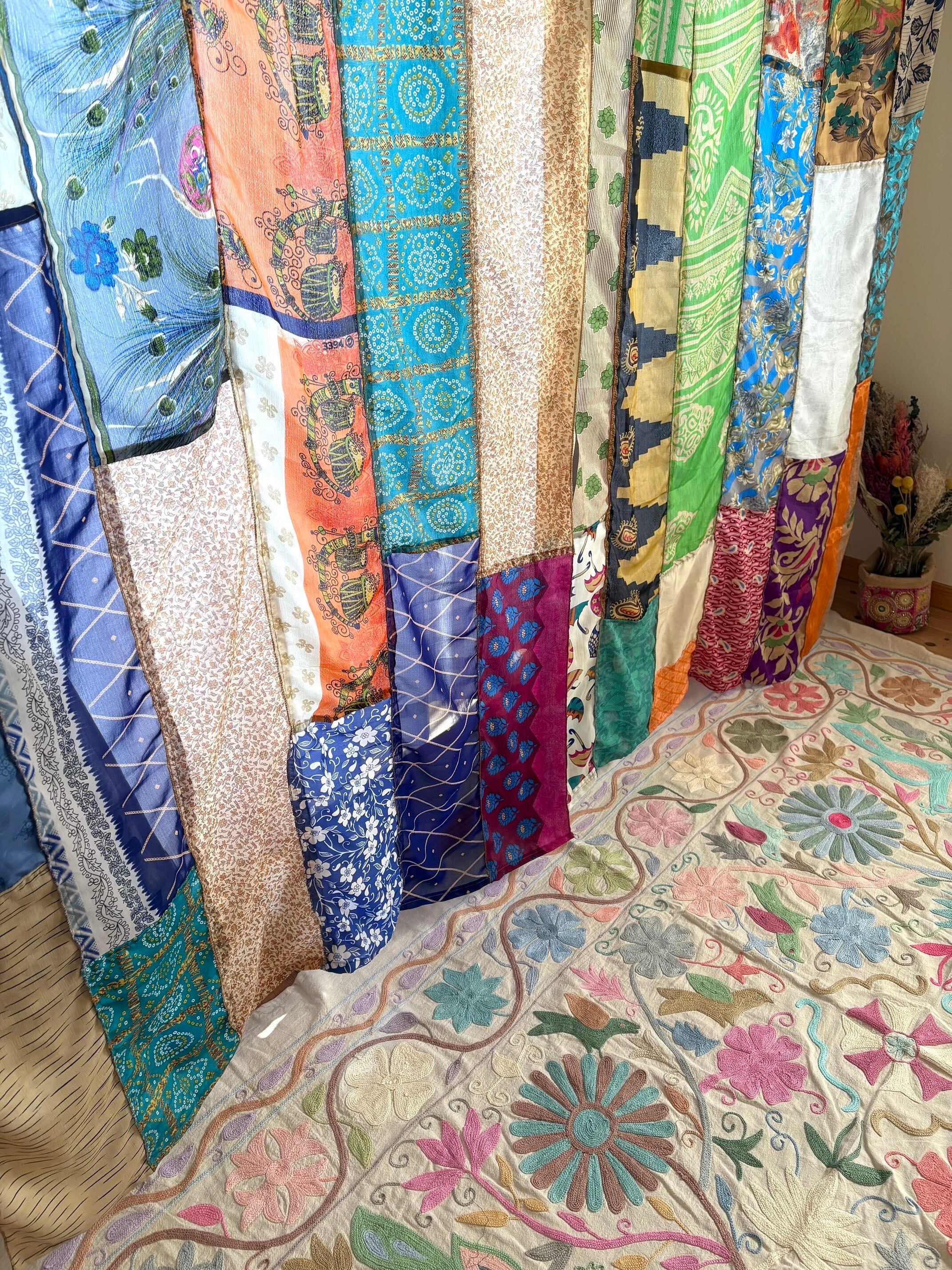 ヴィンテージサリーで出来たパッチワークシルクカーテン