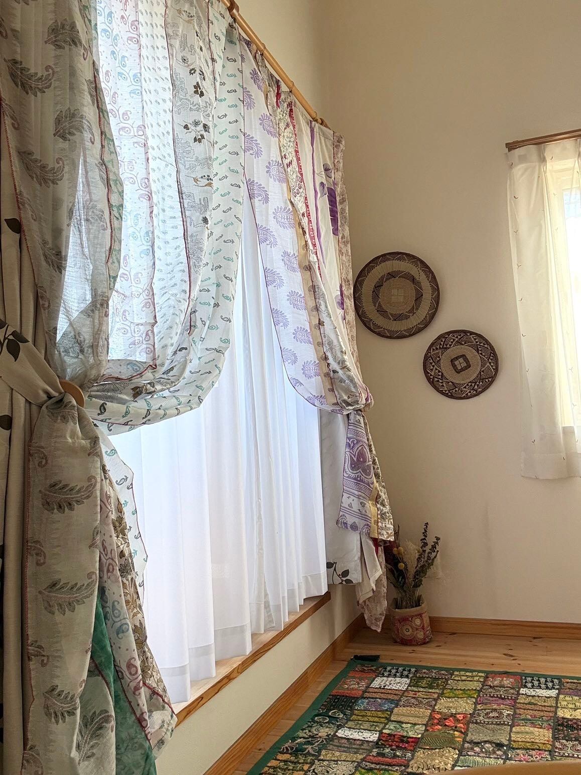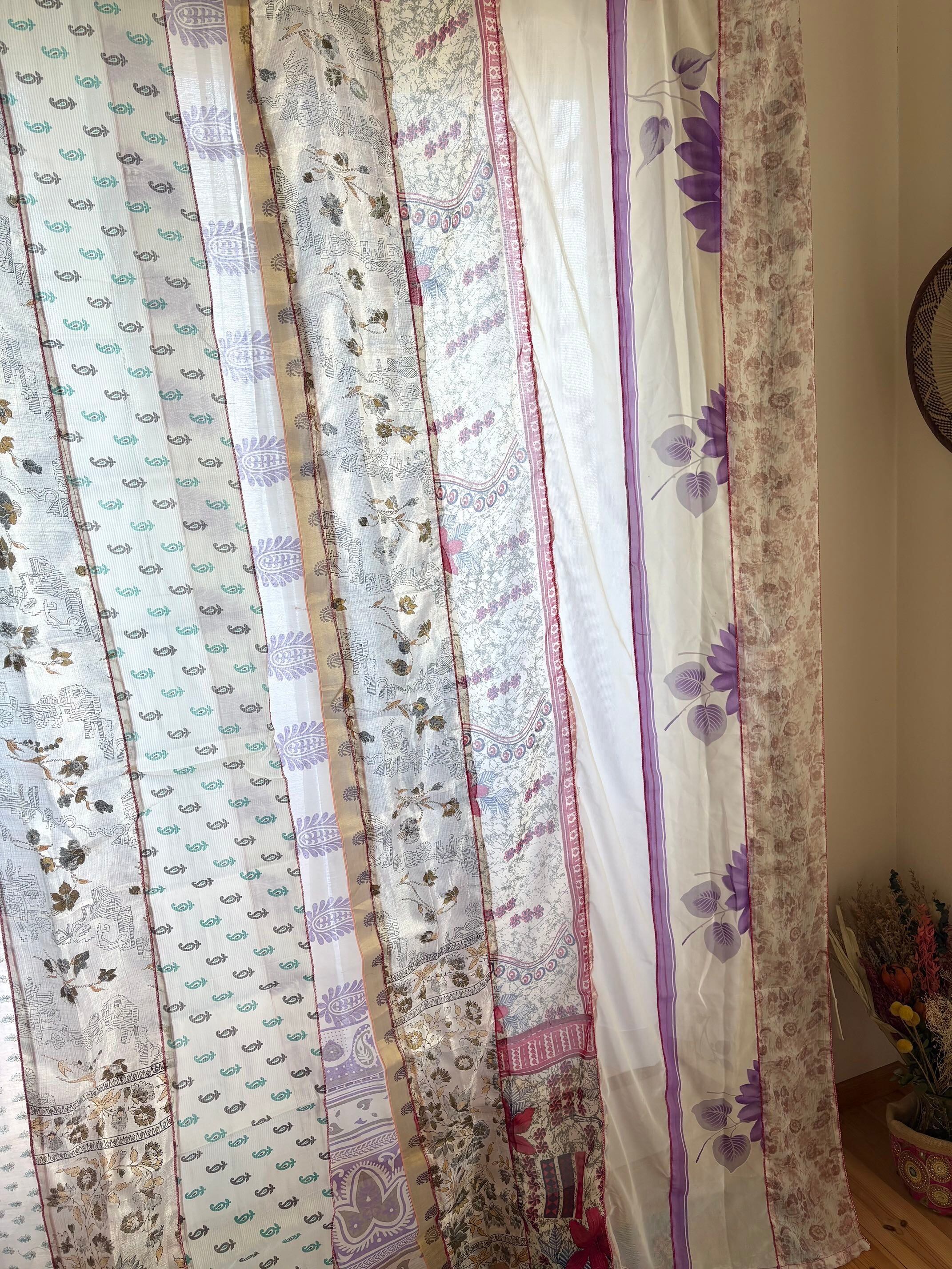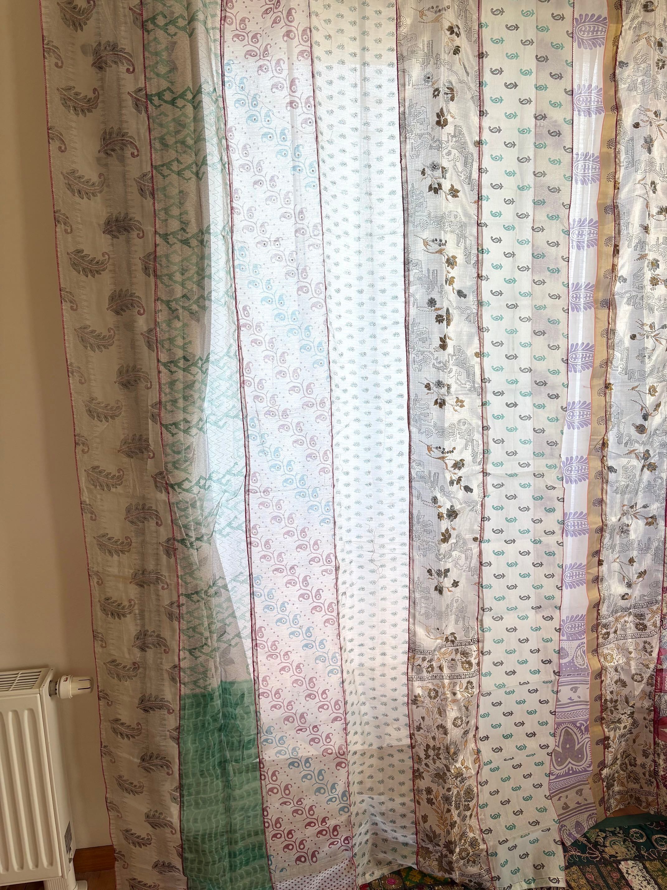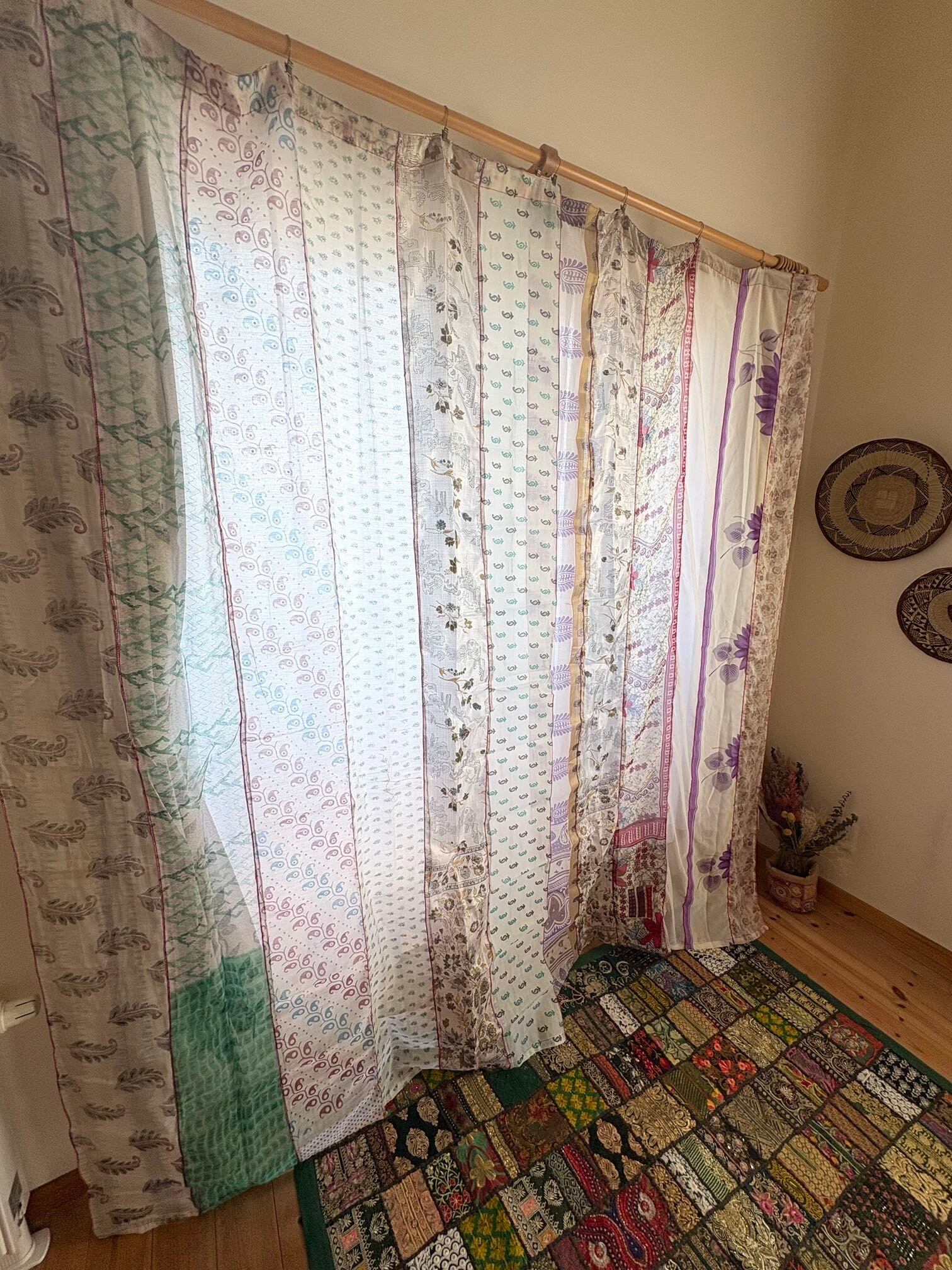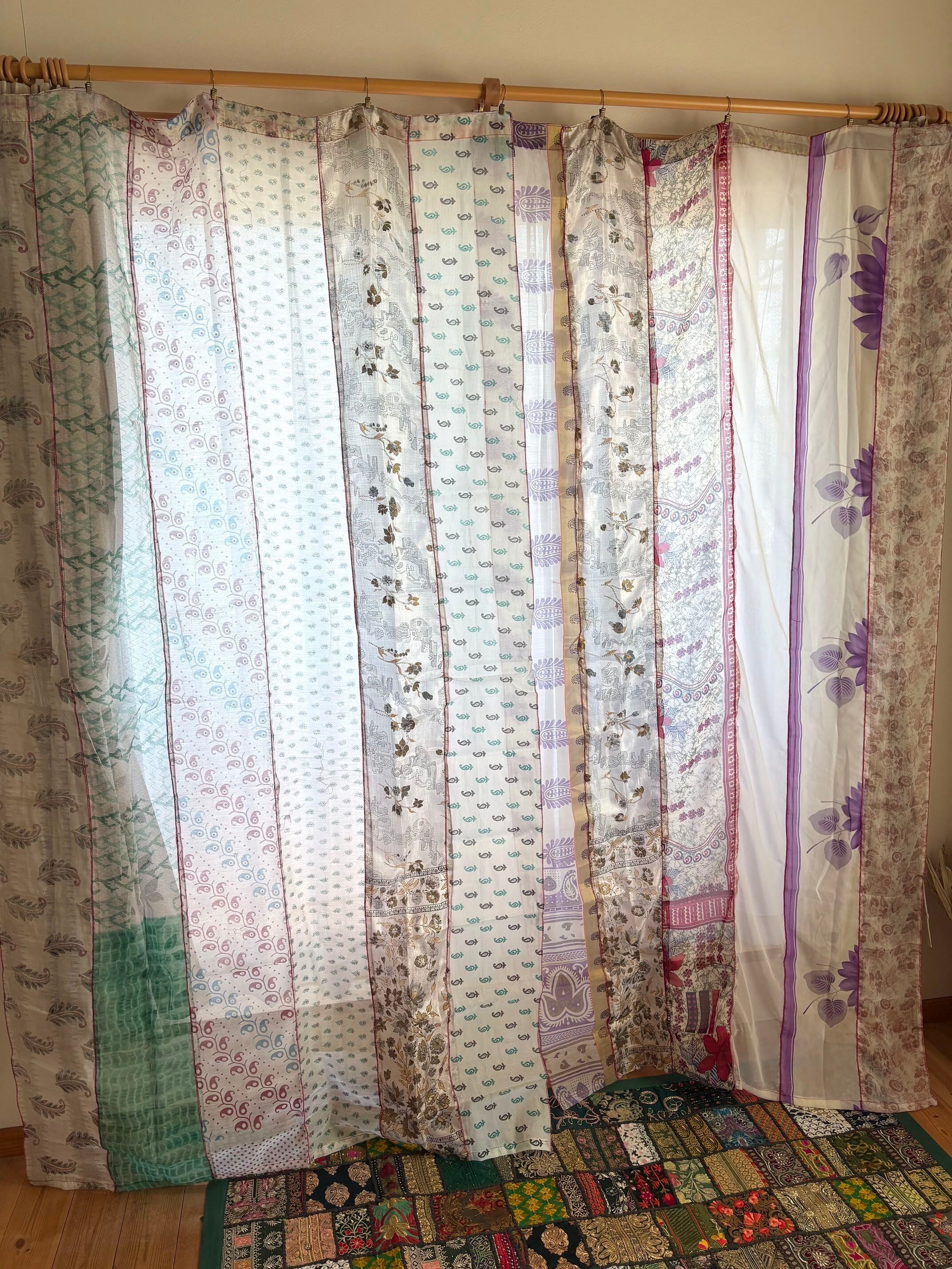 ヴィンテージサリーで出来たパッチワークシルクカーテン