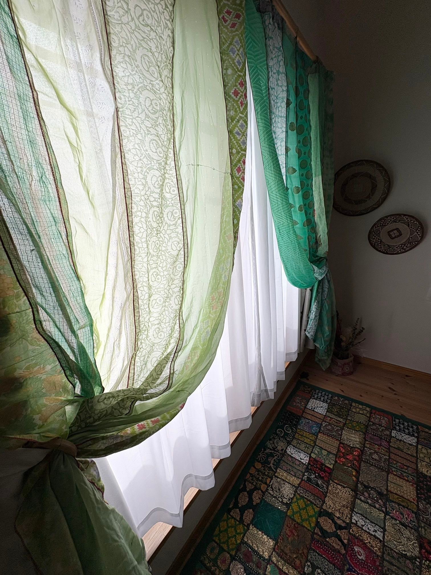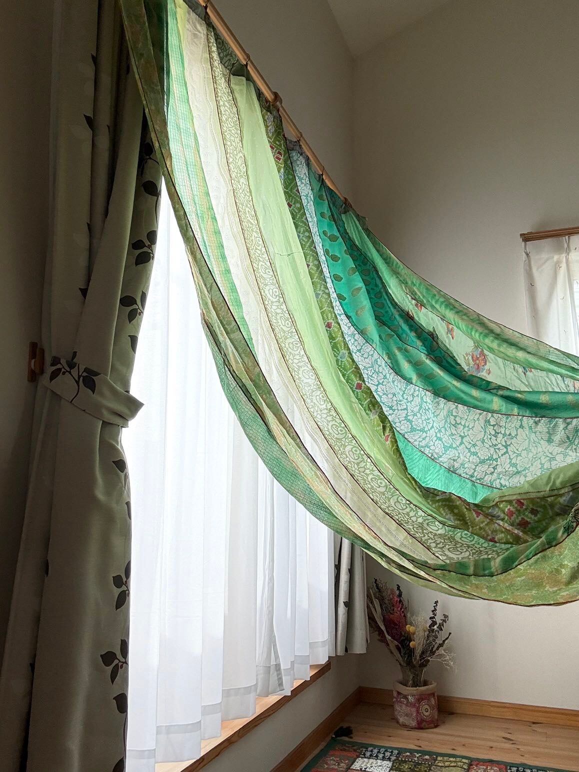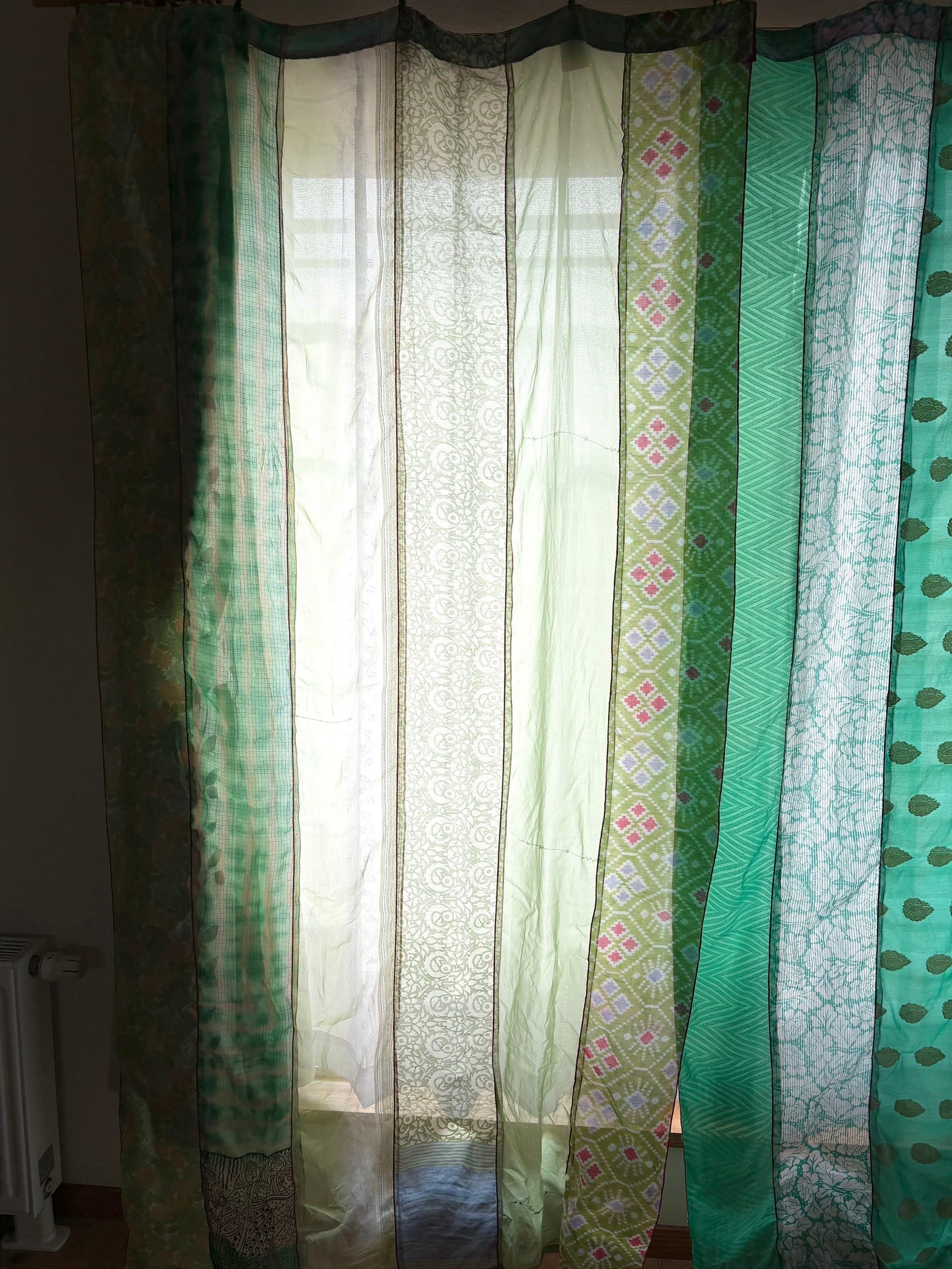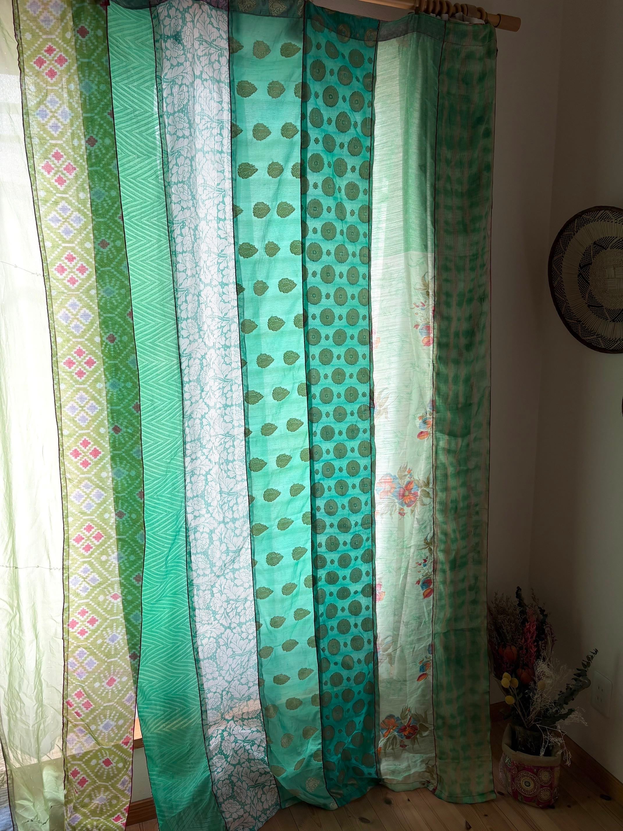 ヴィンテージサリーで出来たパッチワークシルクカーテン