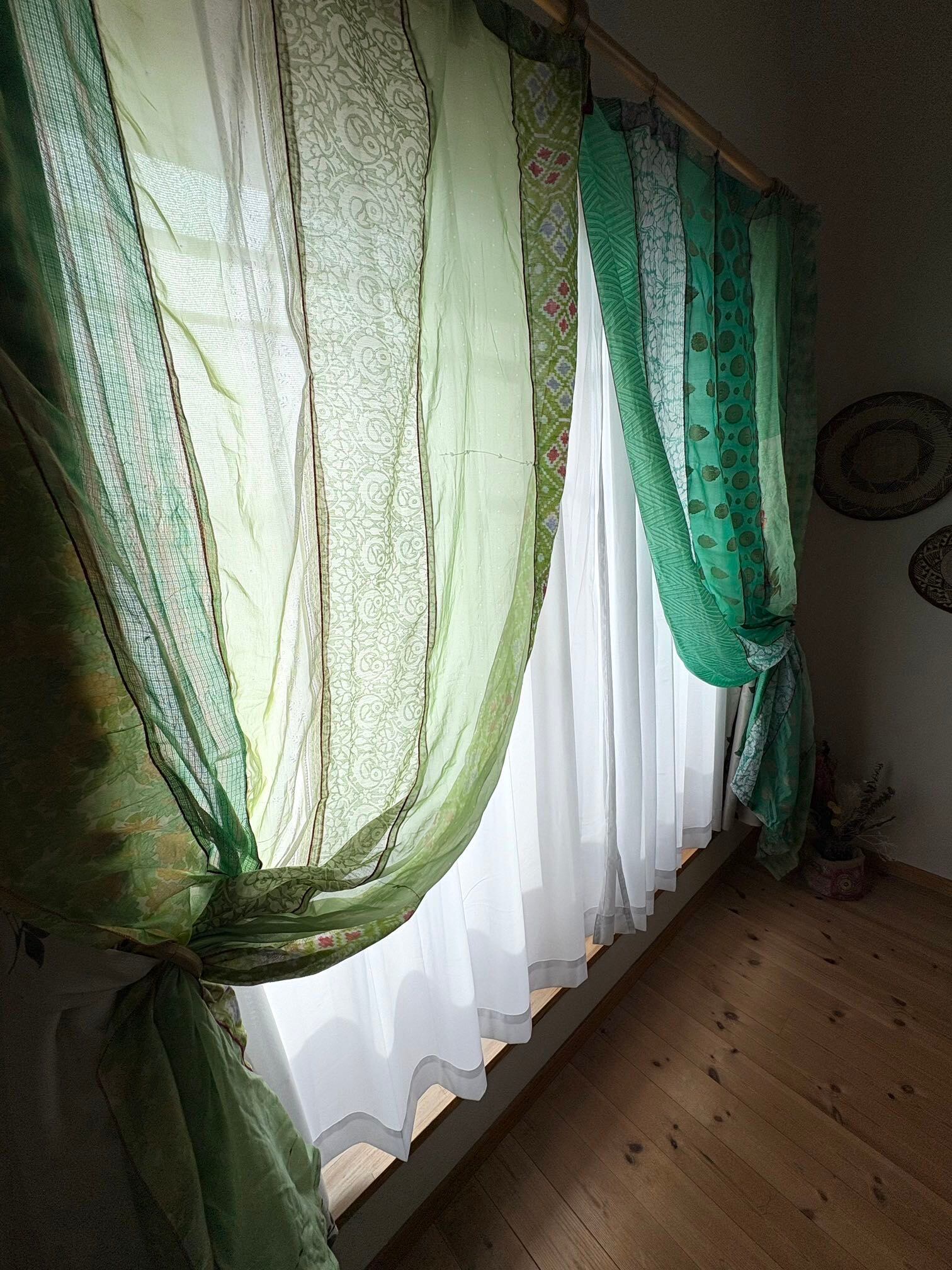 ※カーテンとしては新品未使用ですが、布はヴィンテージサリーを使っております。