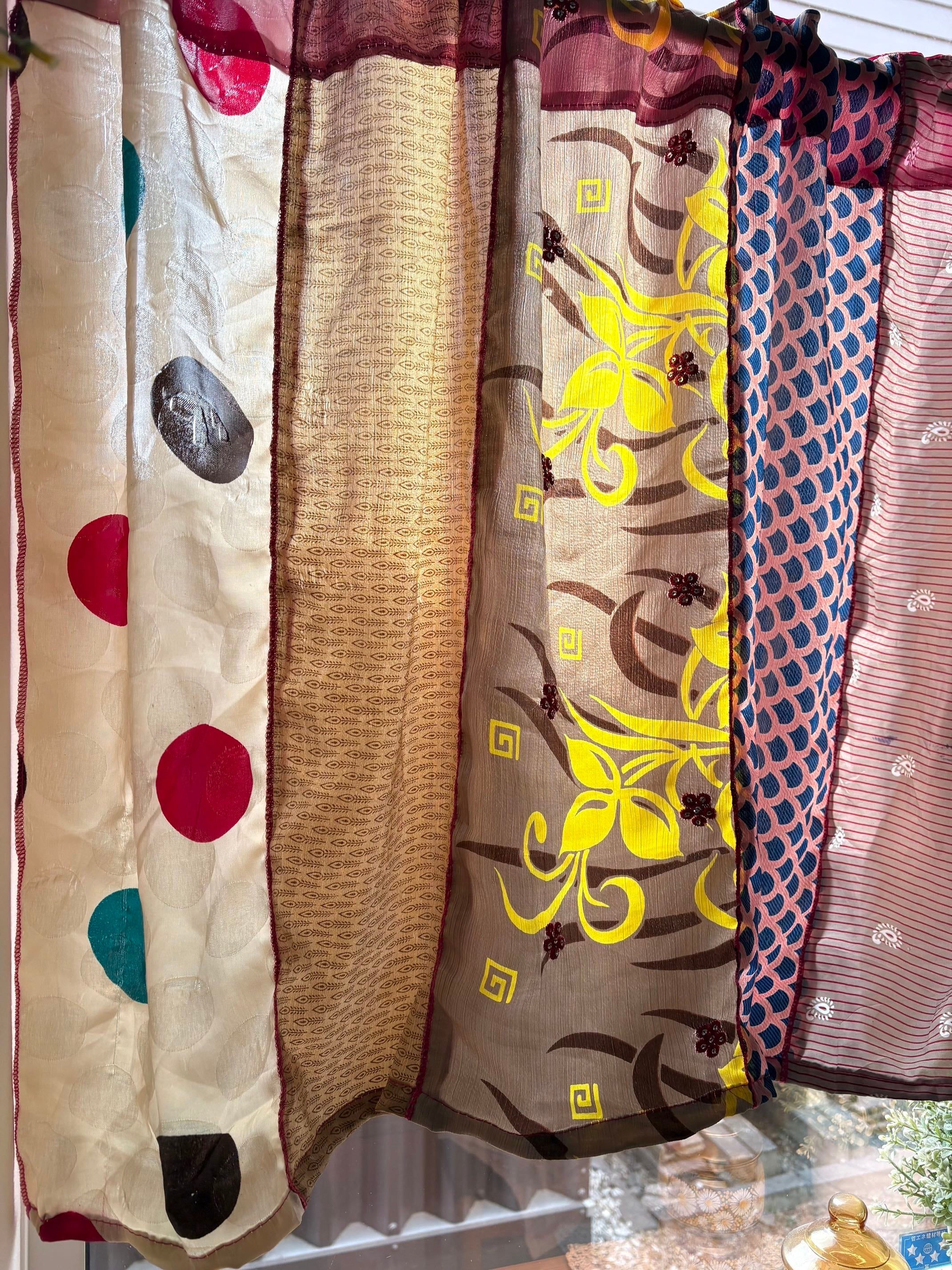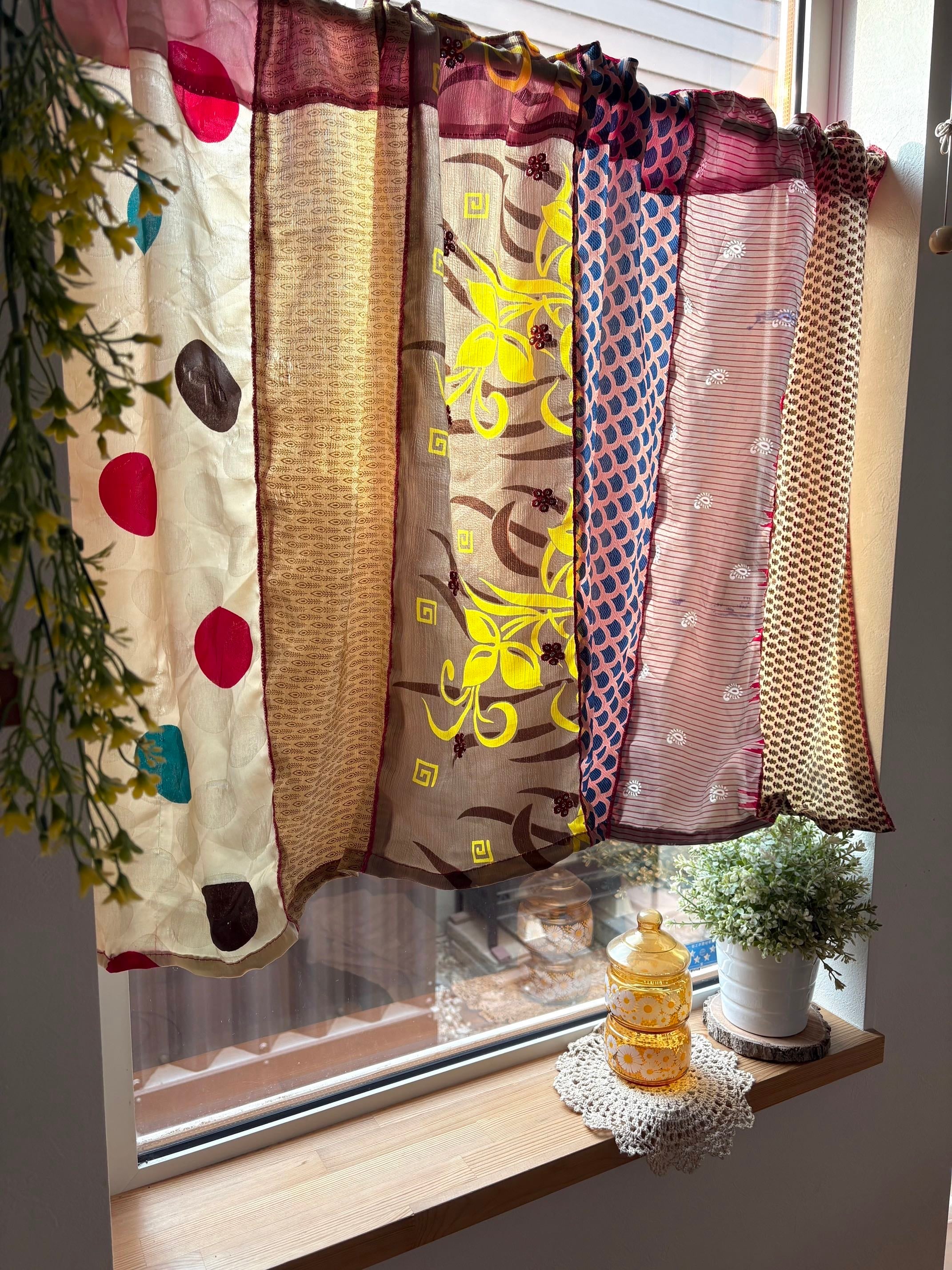ヴィンテージサリーで出来たパッチワークシルクカーテン