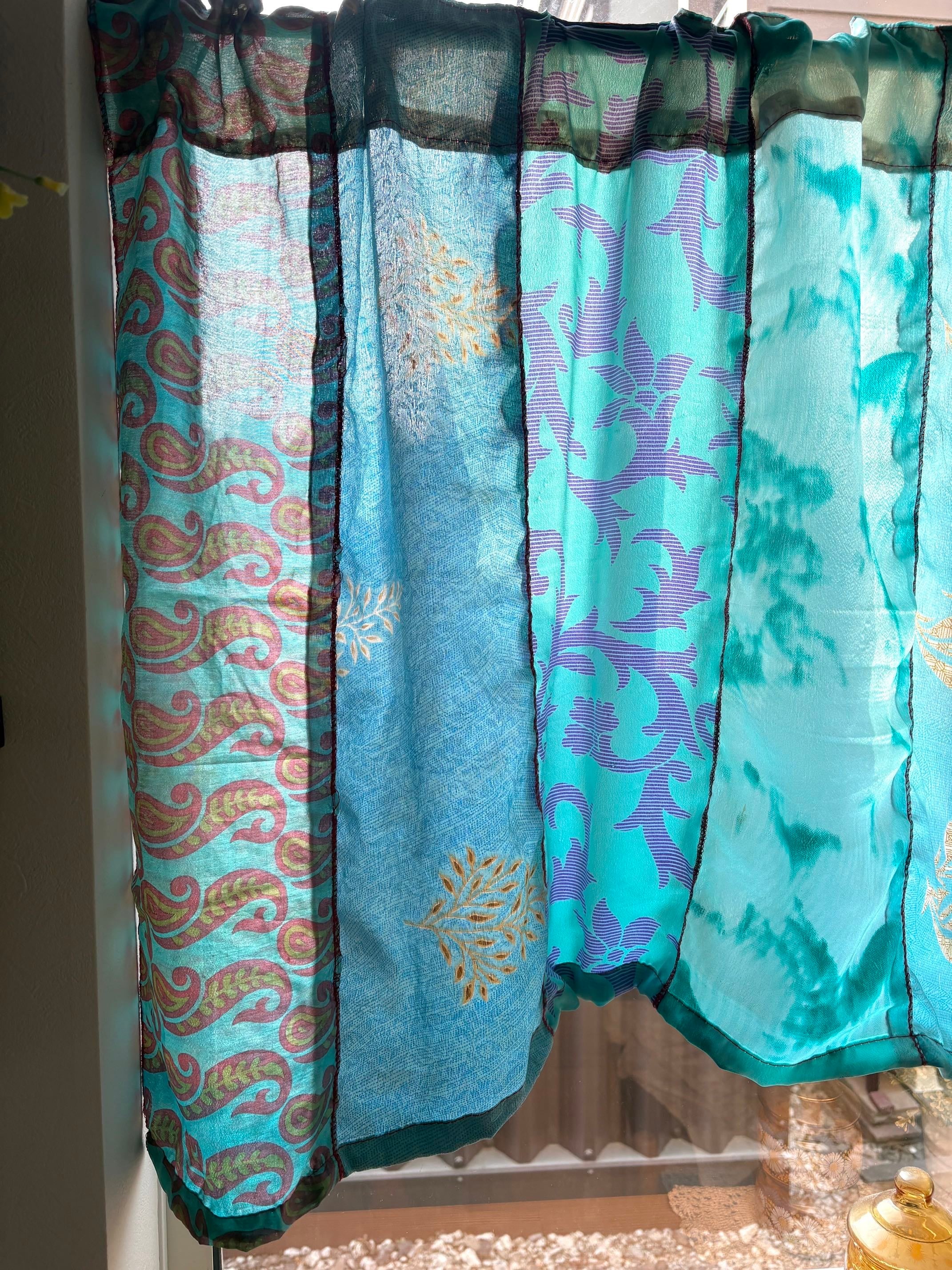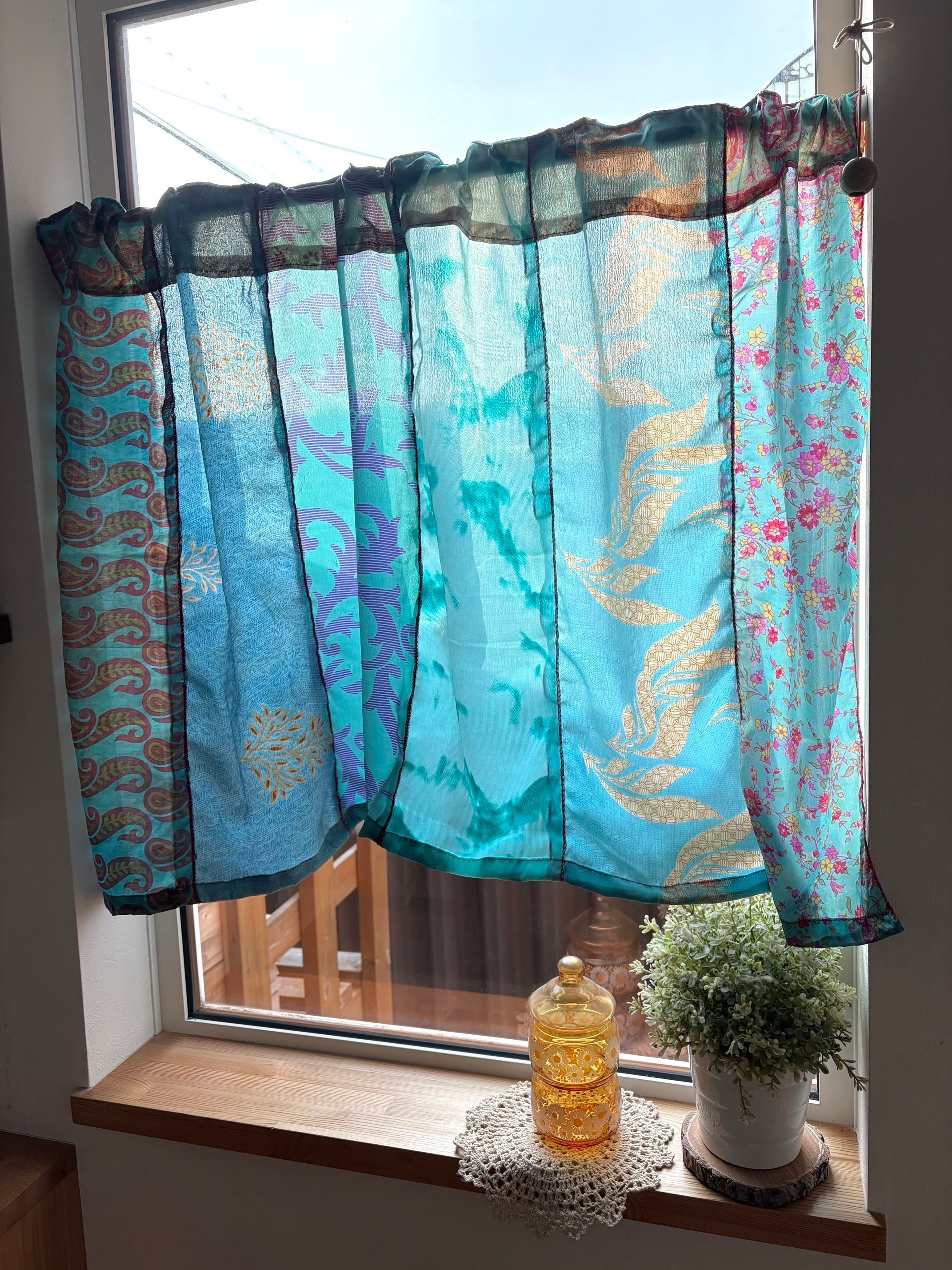 ヴィンテージサリーで出来たパッチワークシルクカーテン