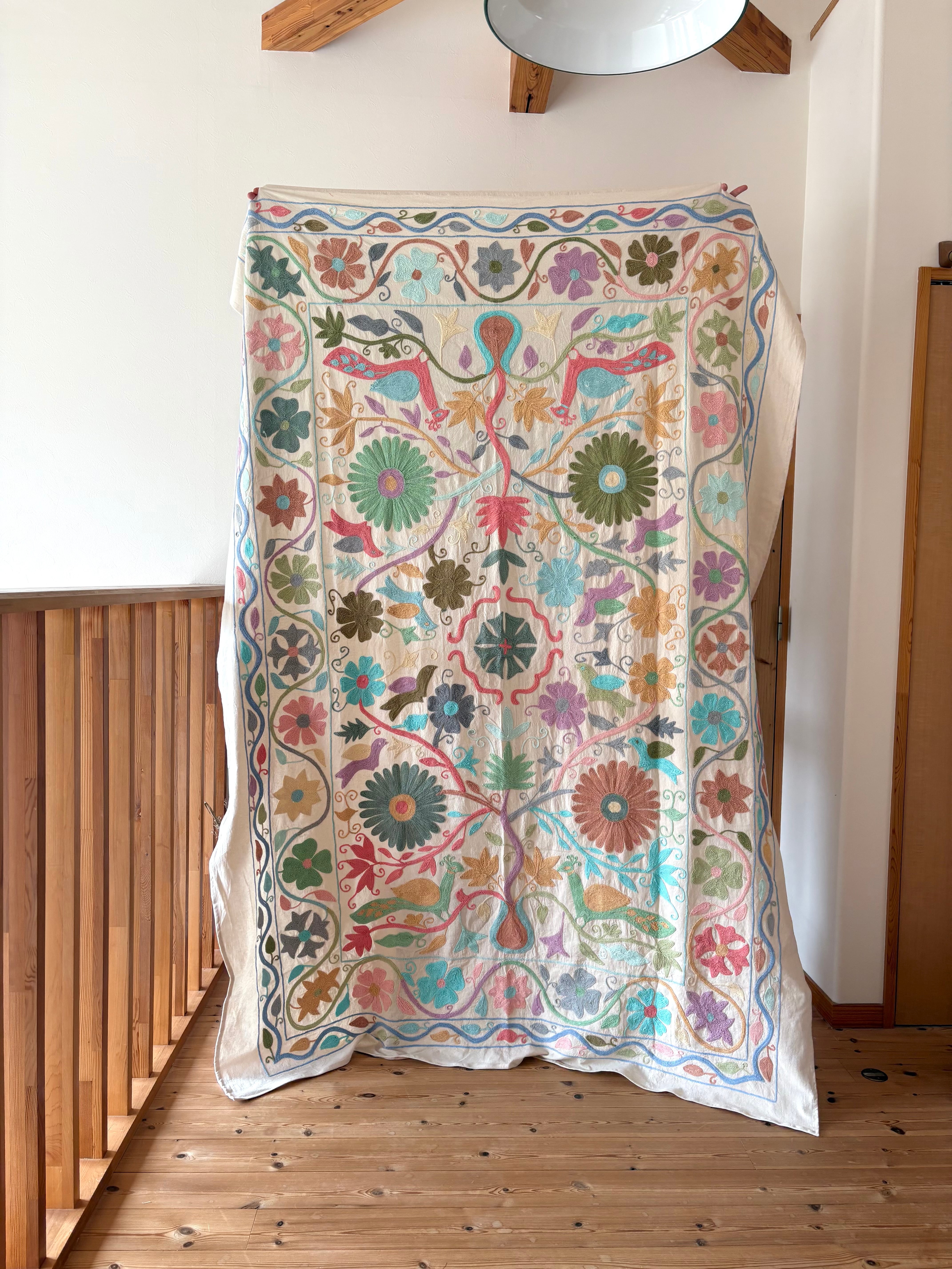 鳥たちの楽園/パステルスザニ刺繍キルト