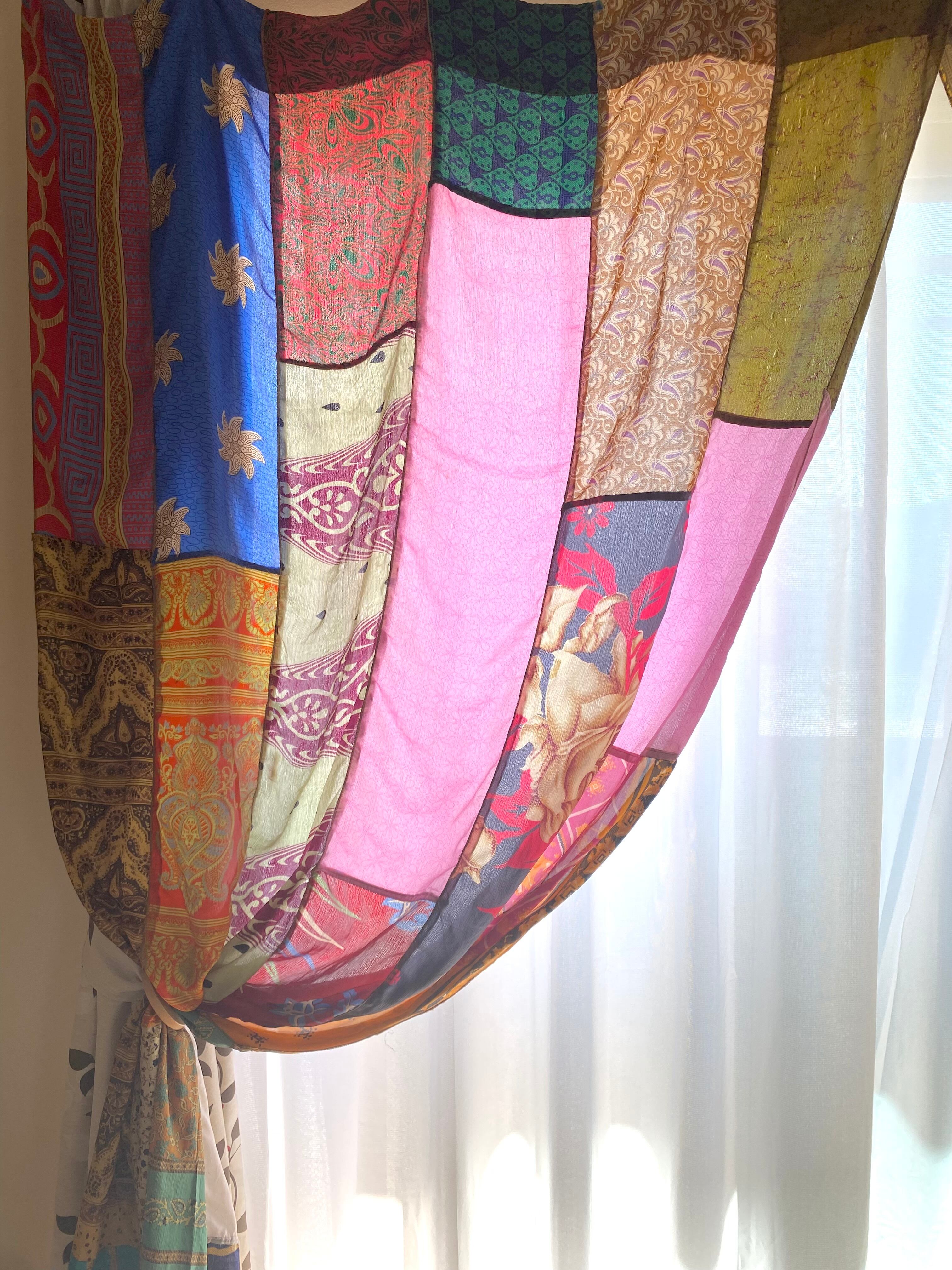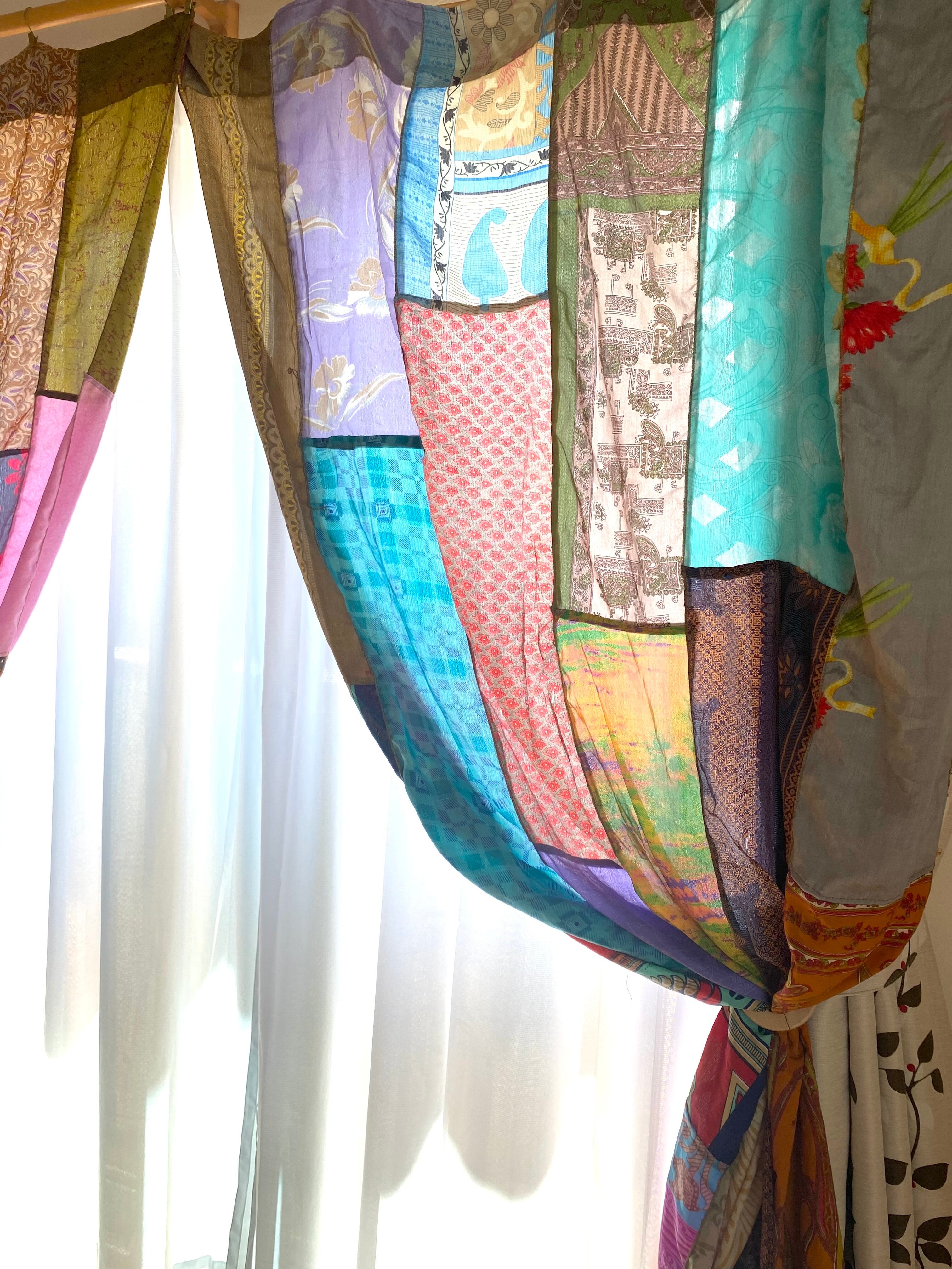 ヴィンテージサリーで出来たパッチワークシルクカーテン