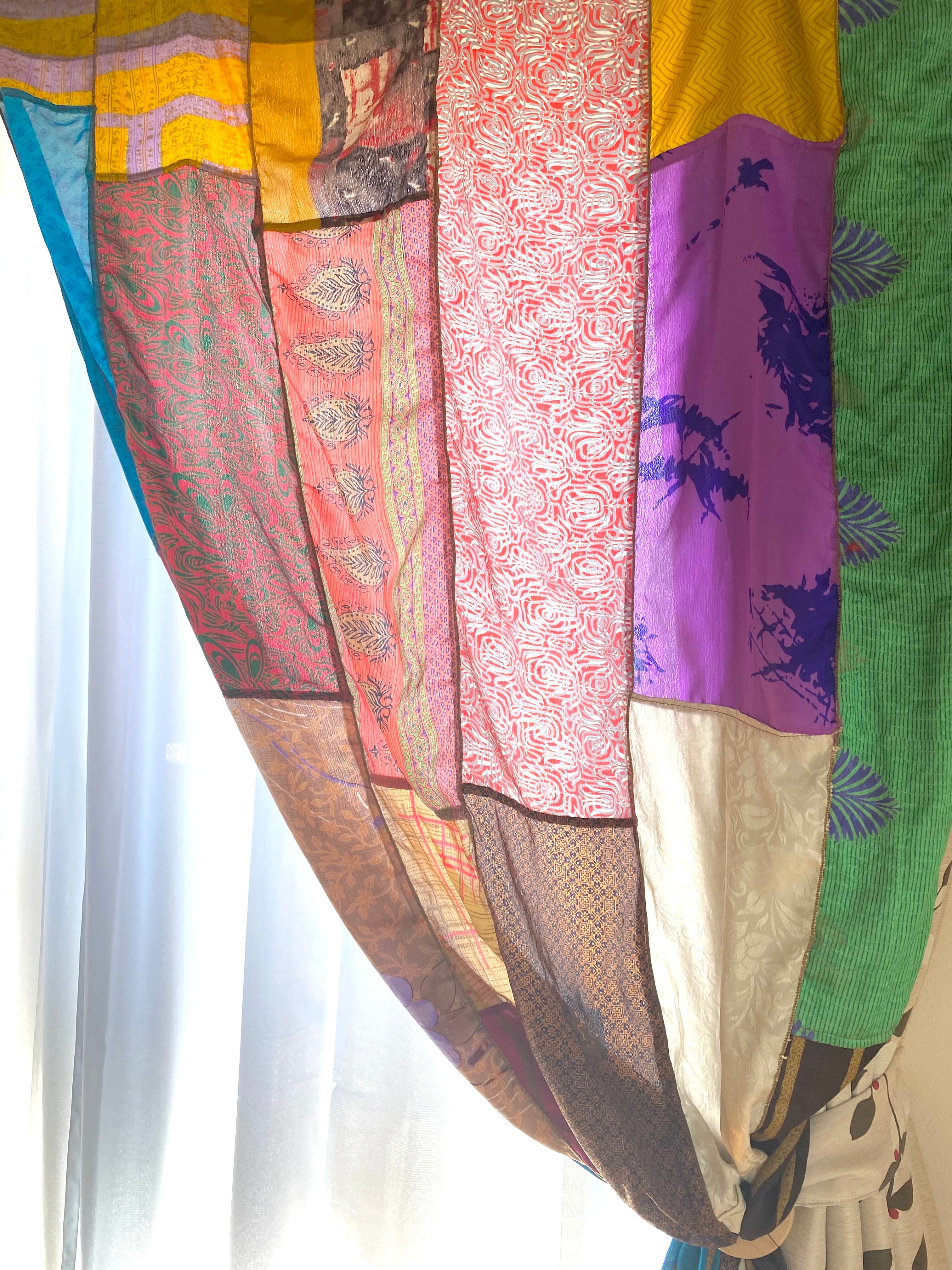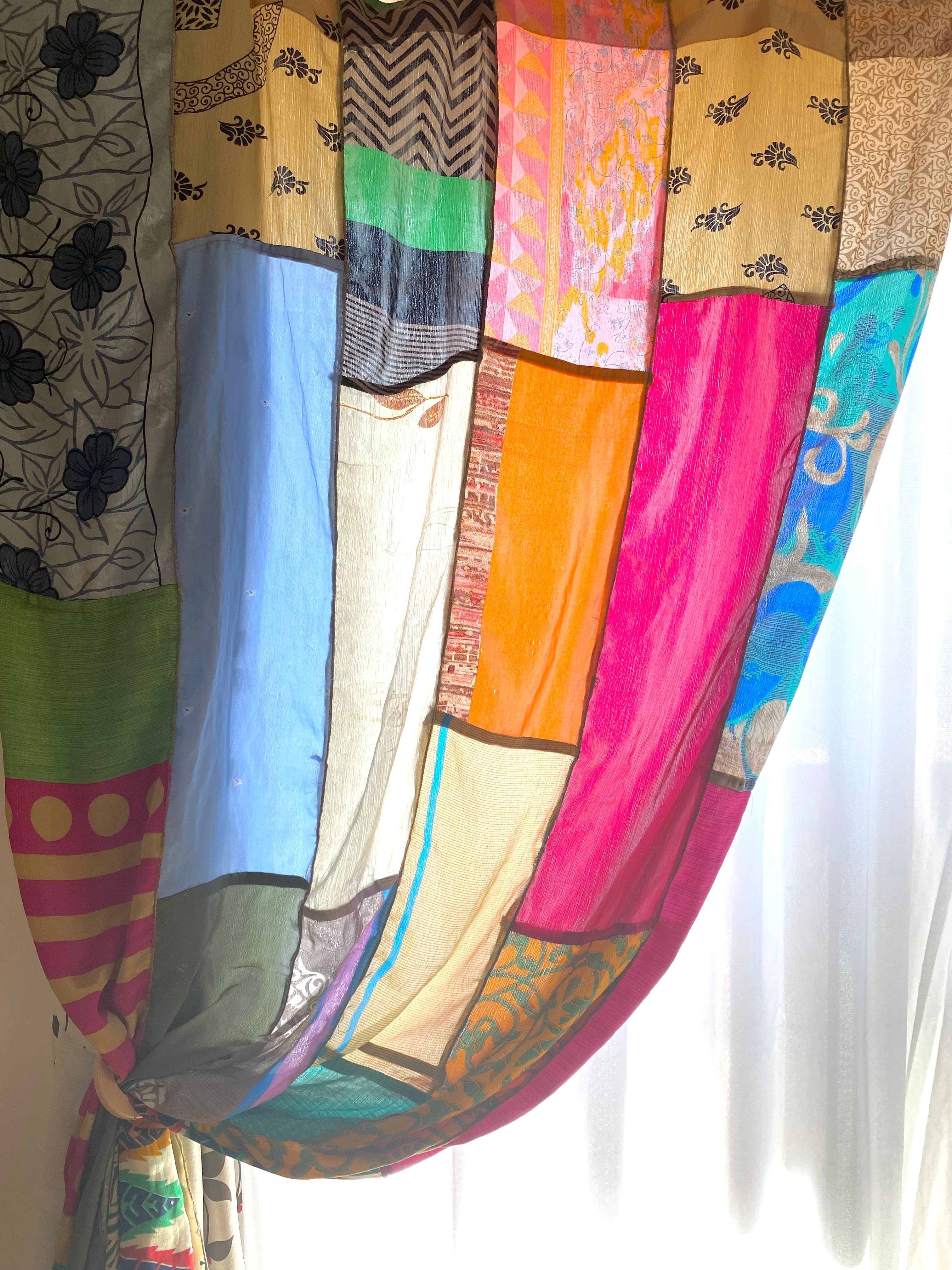 ヴィンテージサリーで出来たパッチワークシルクカーテン
