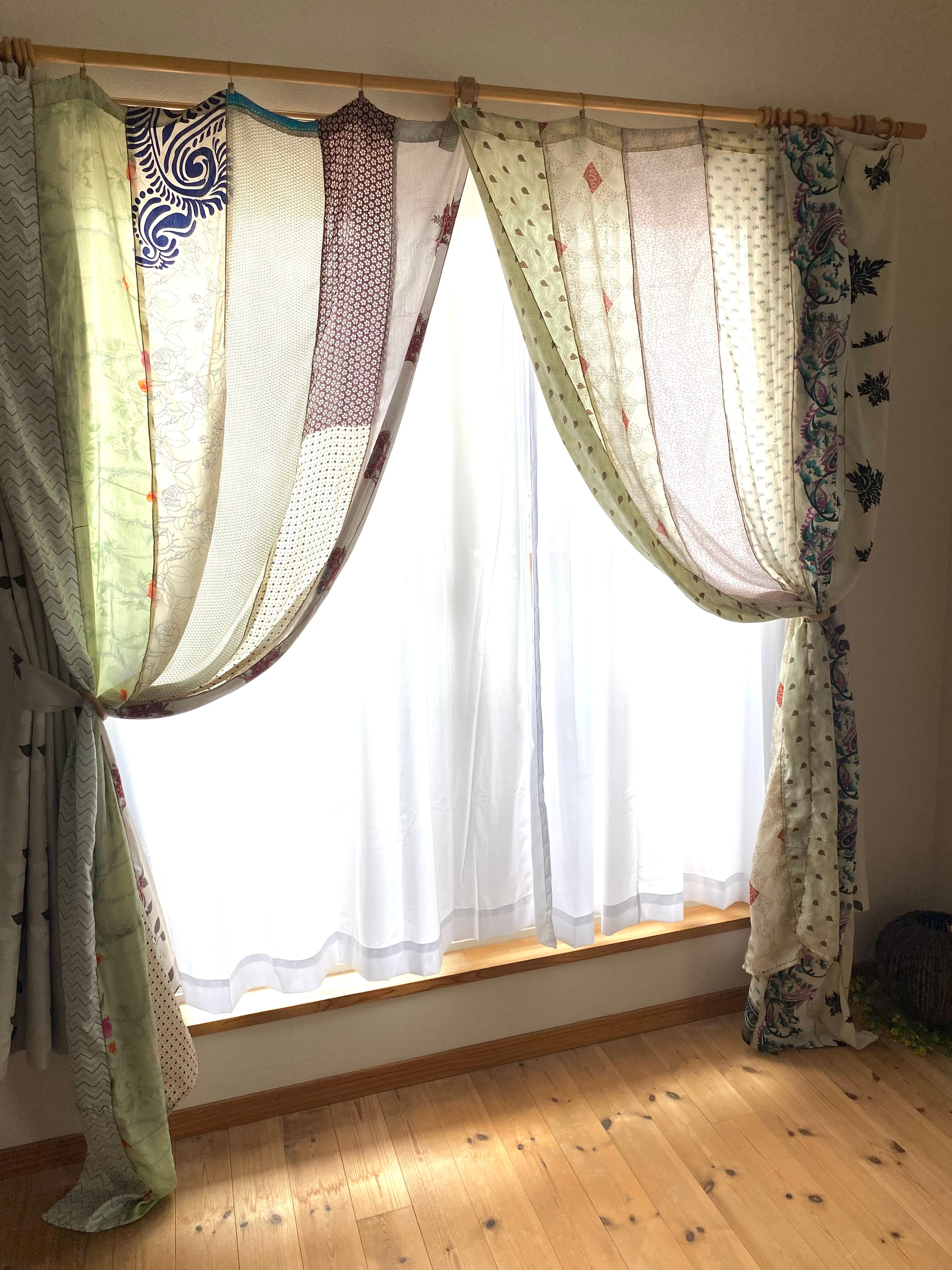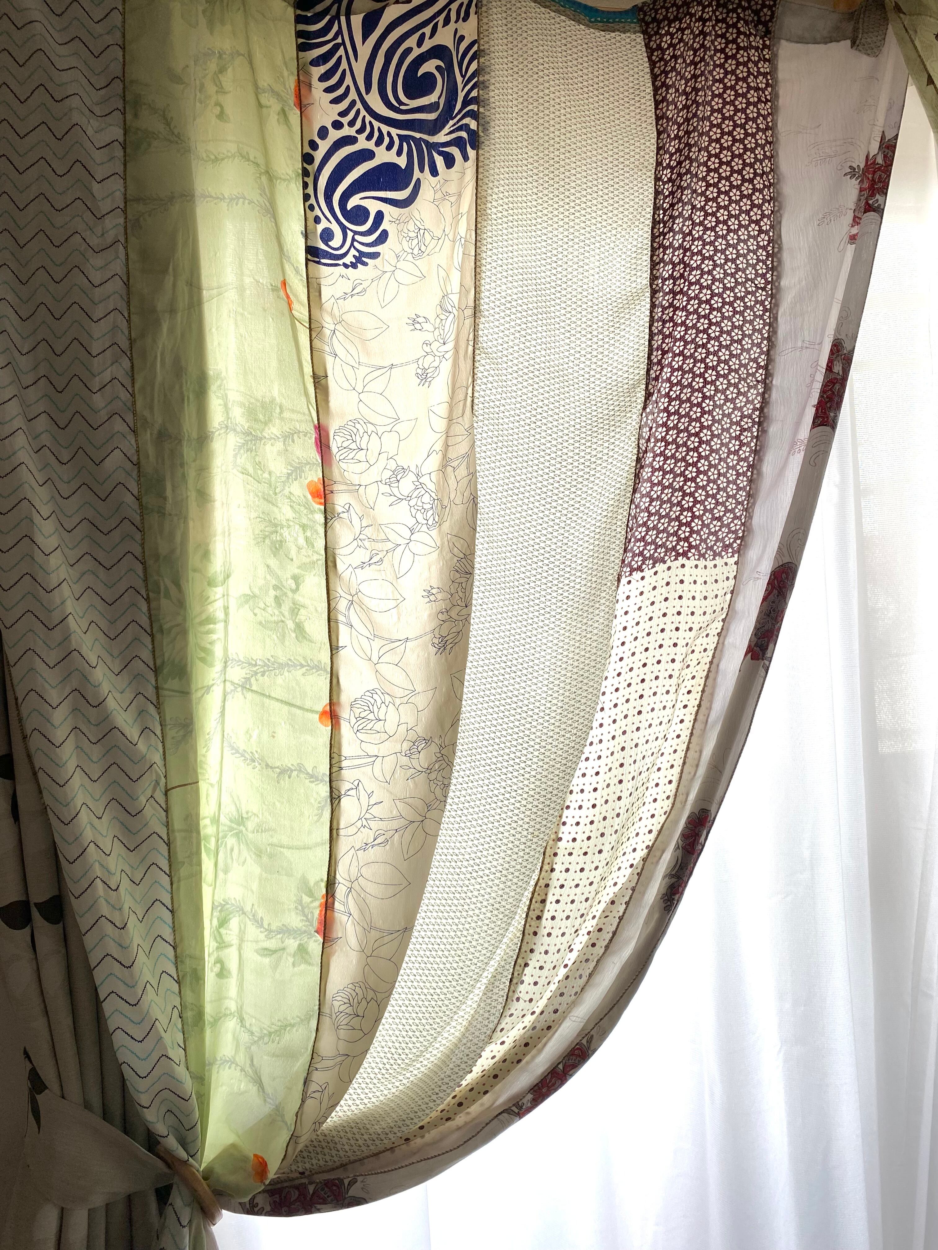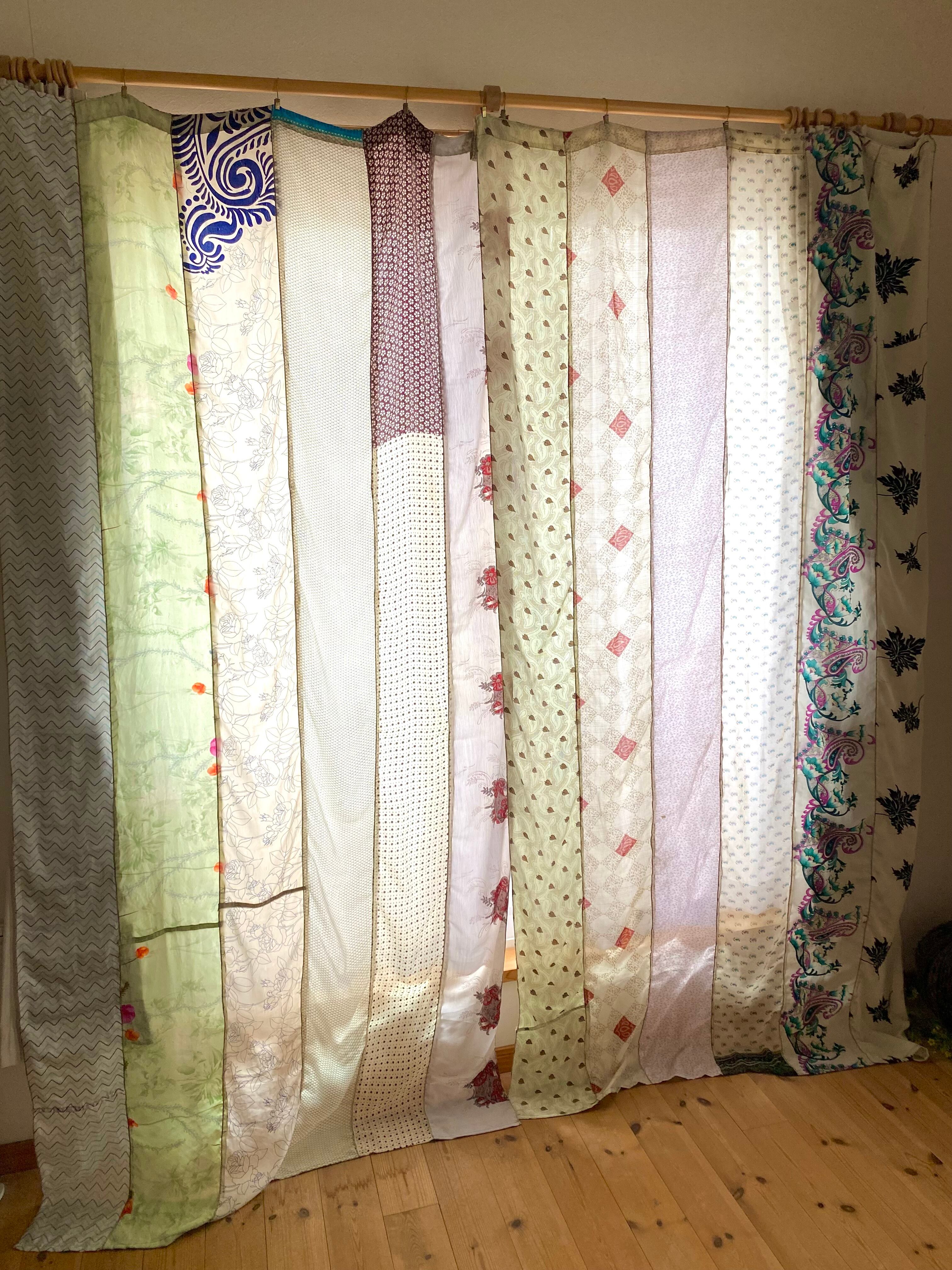 ヴィンテージサリーで出来たパッチワークシルクカーテン