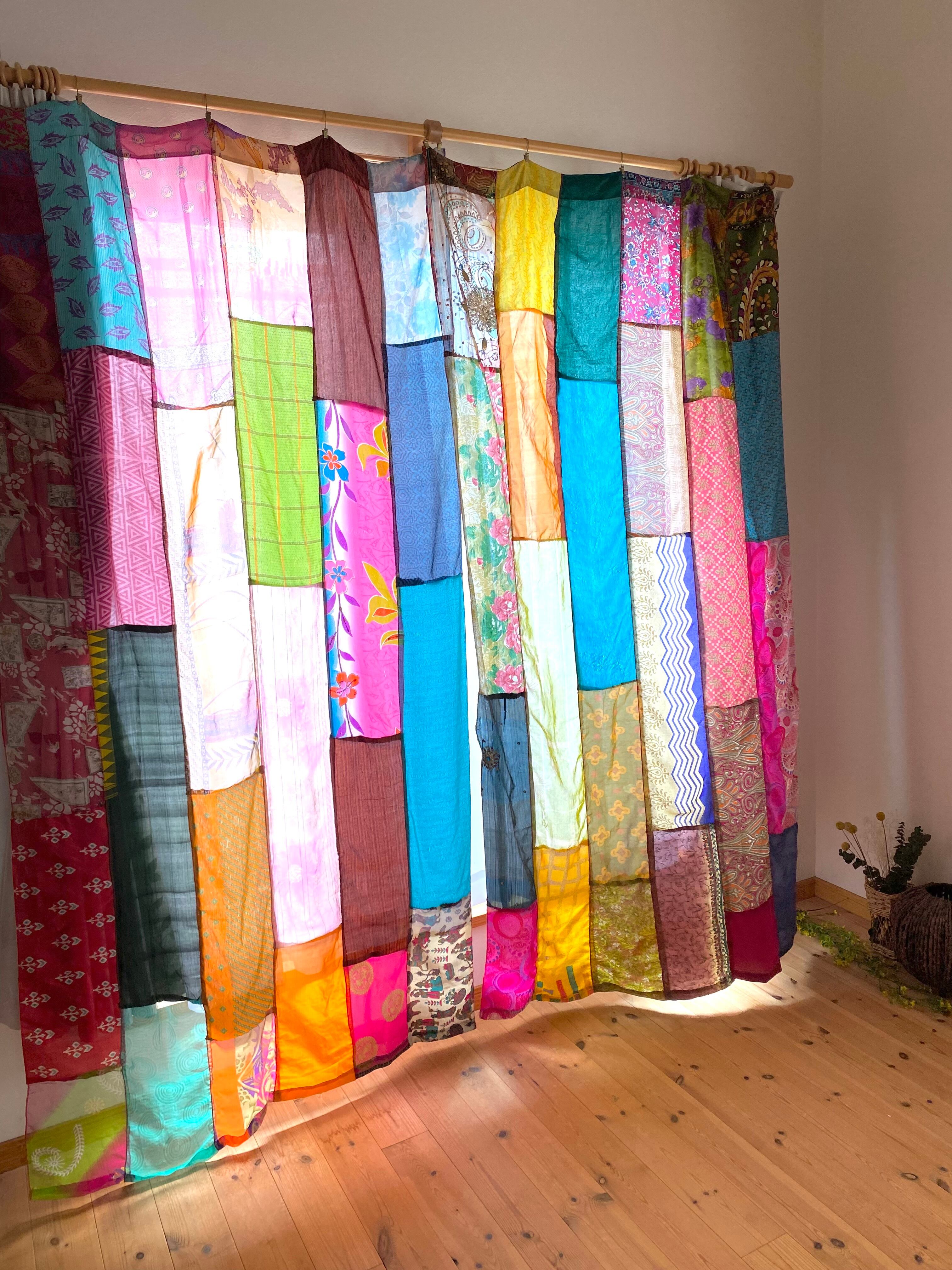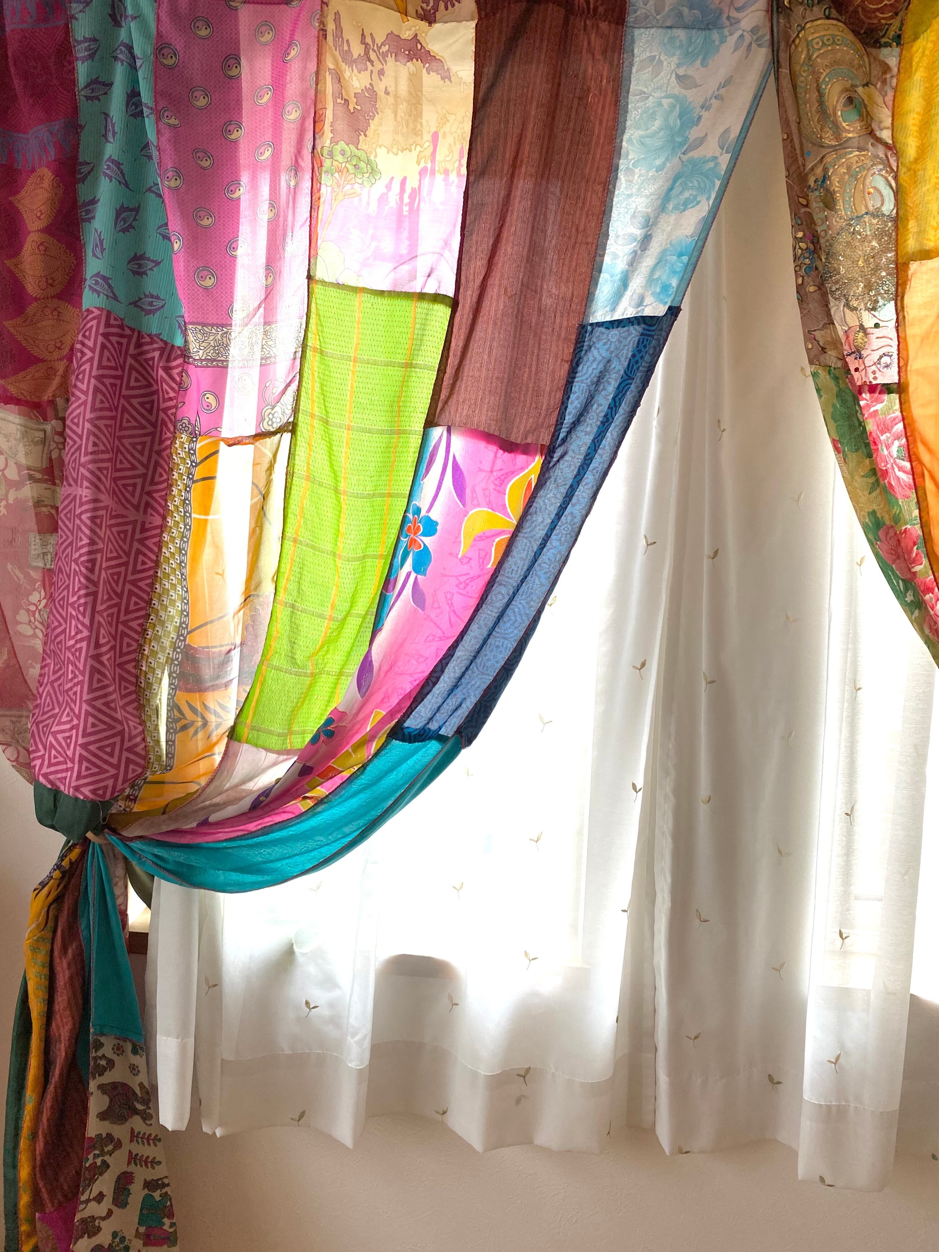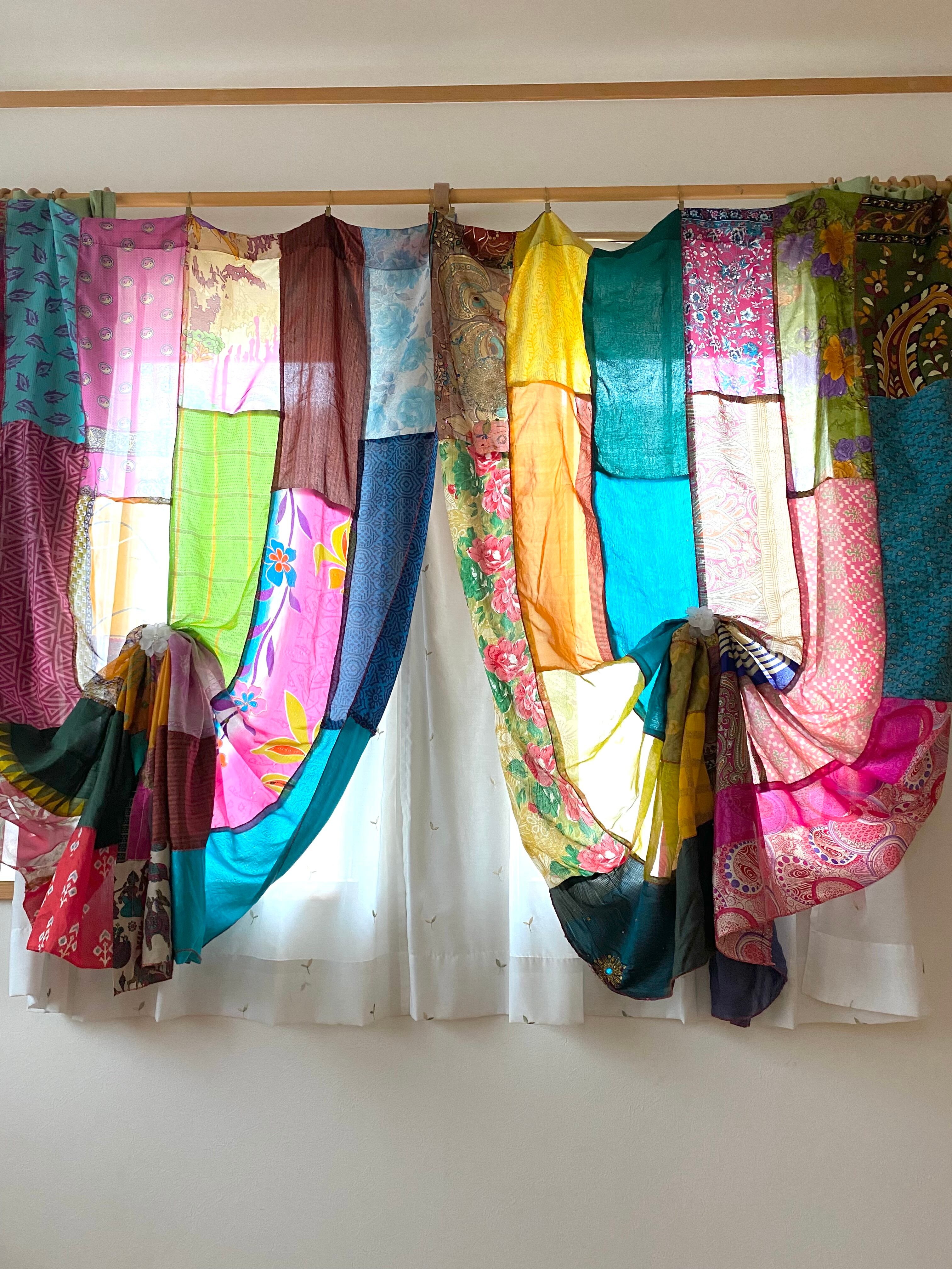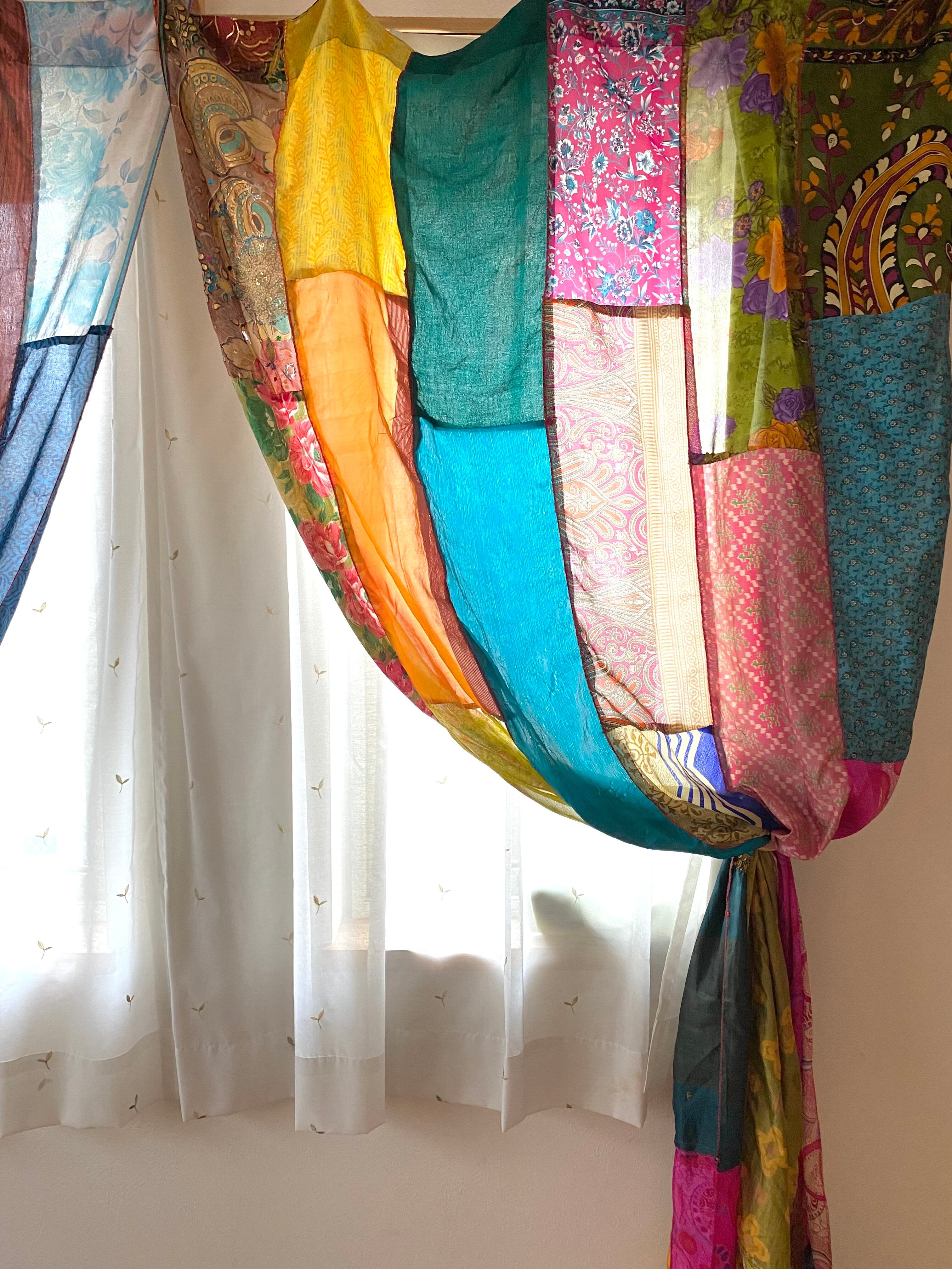 ヴィンテージサリーで出来たパッチワークシルクカーテン