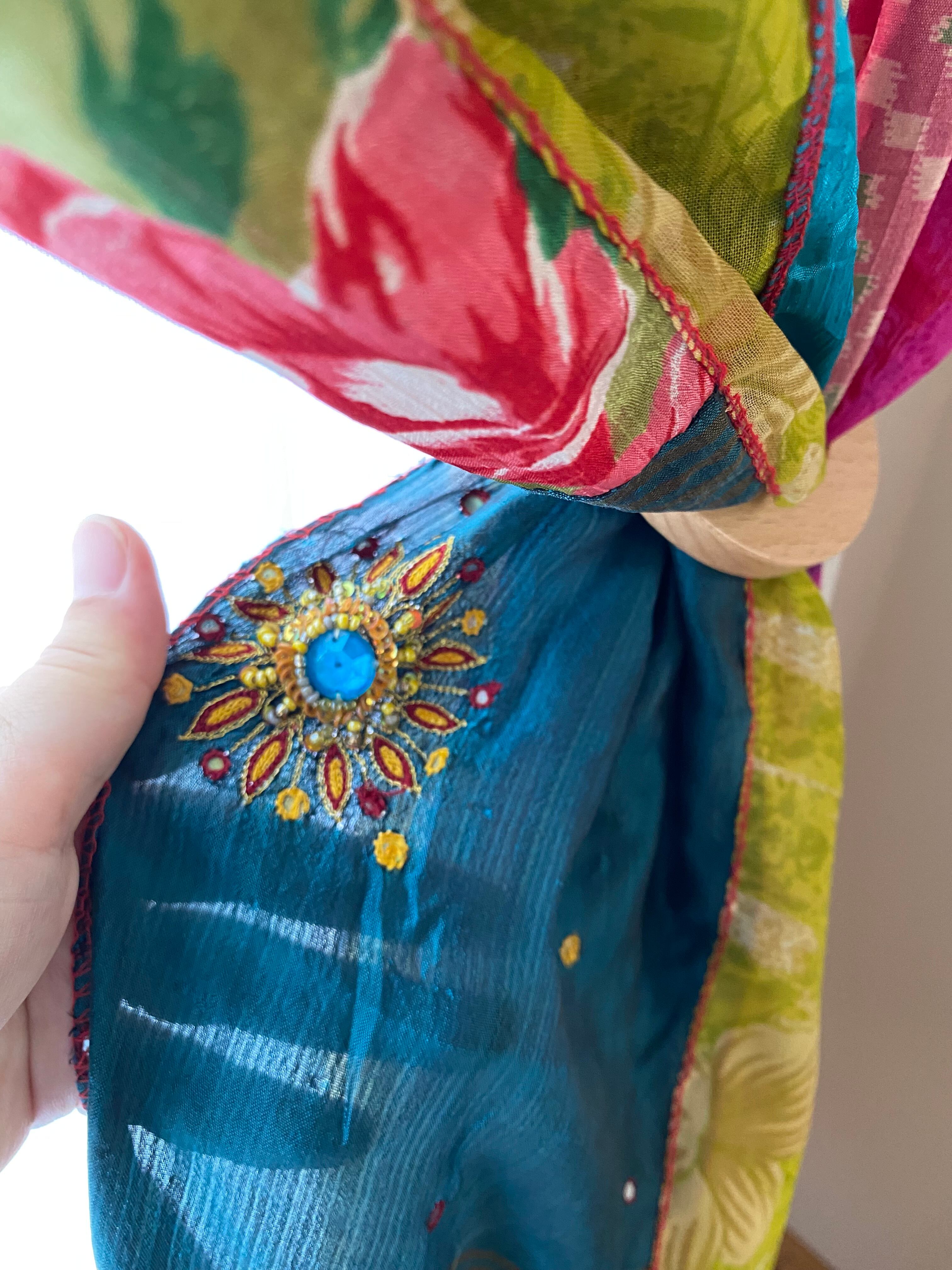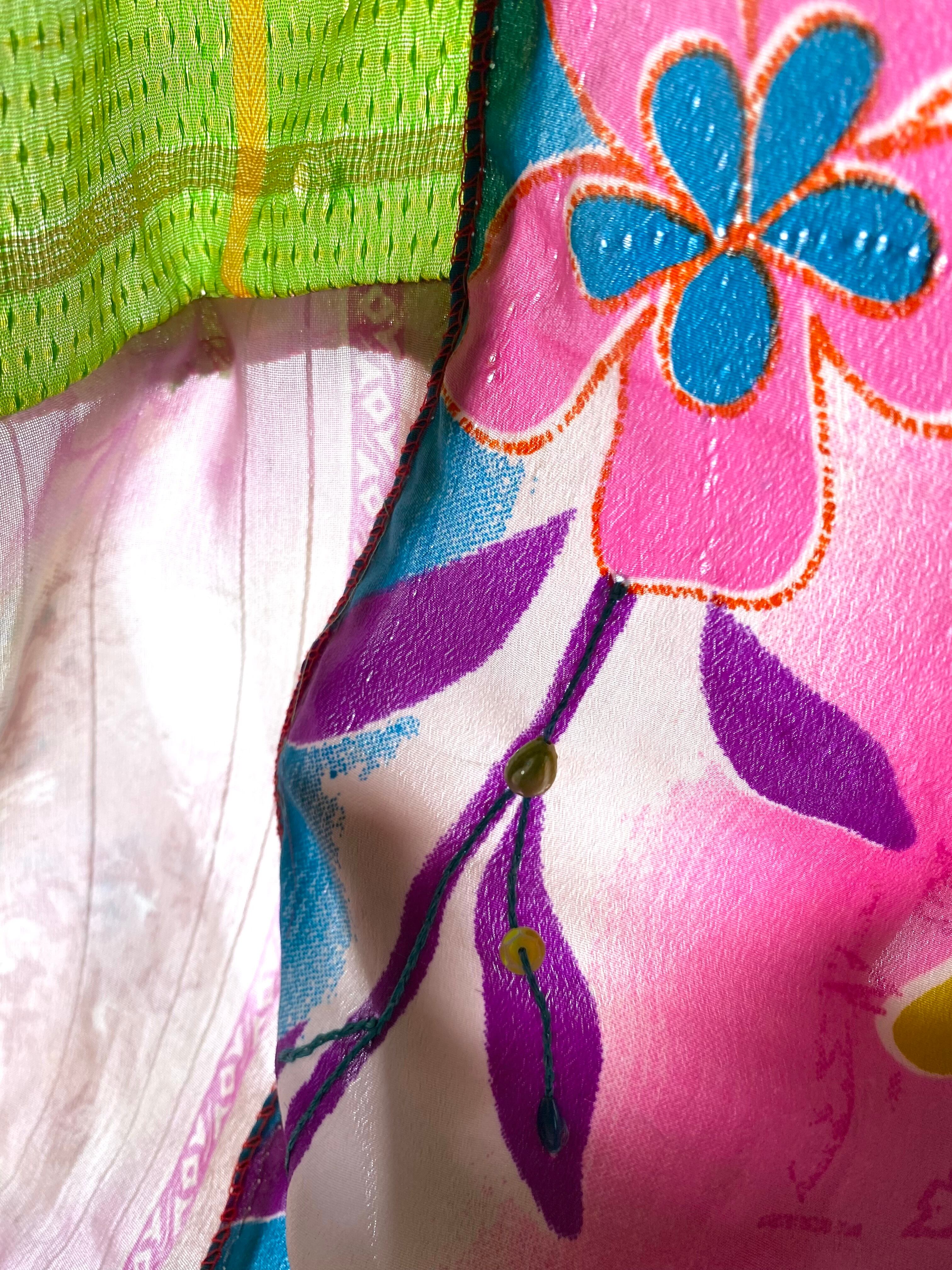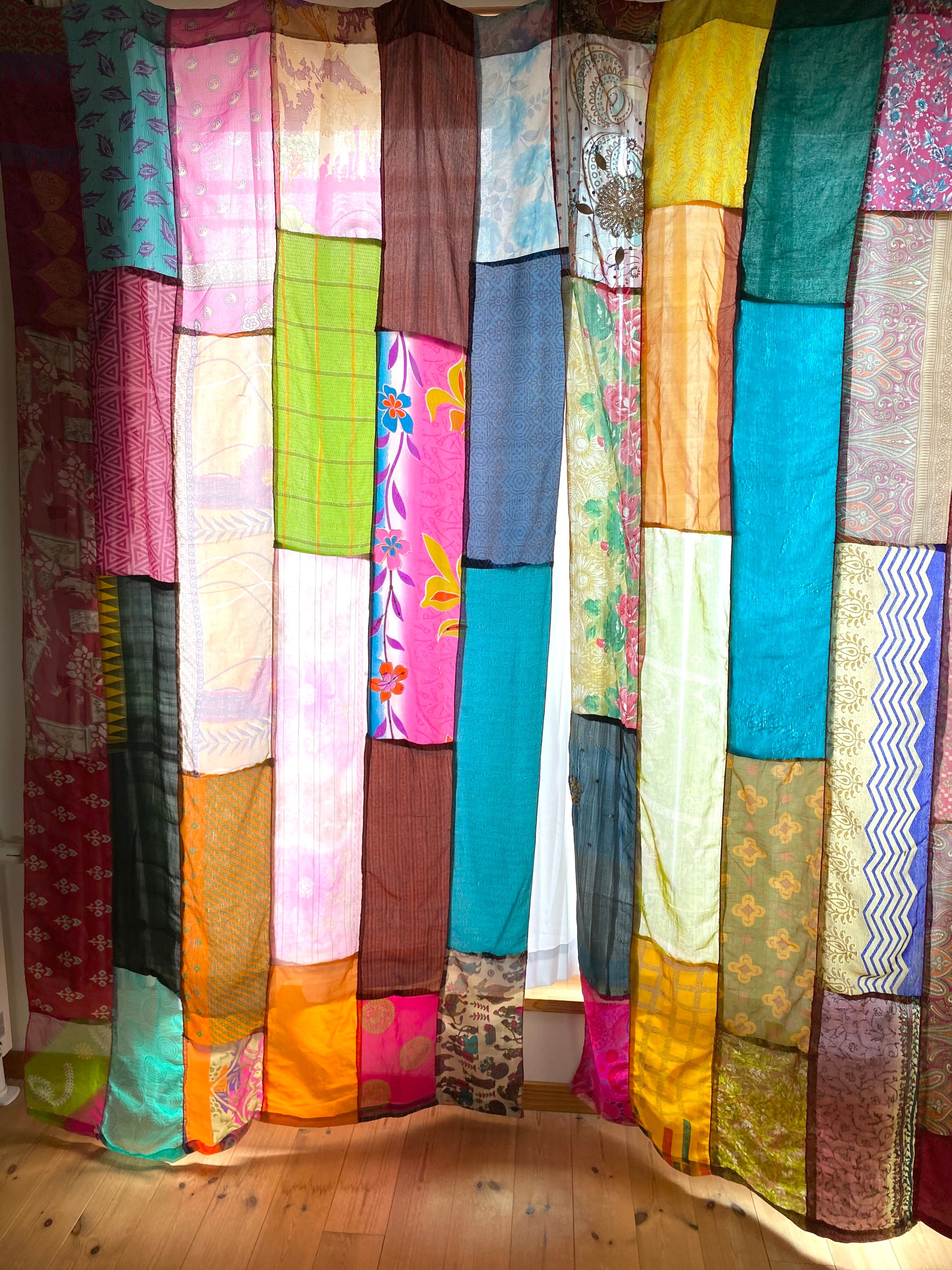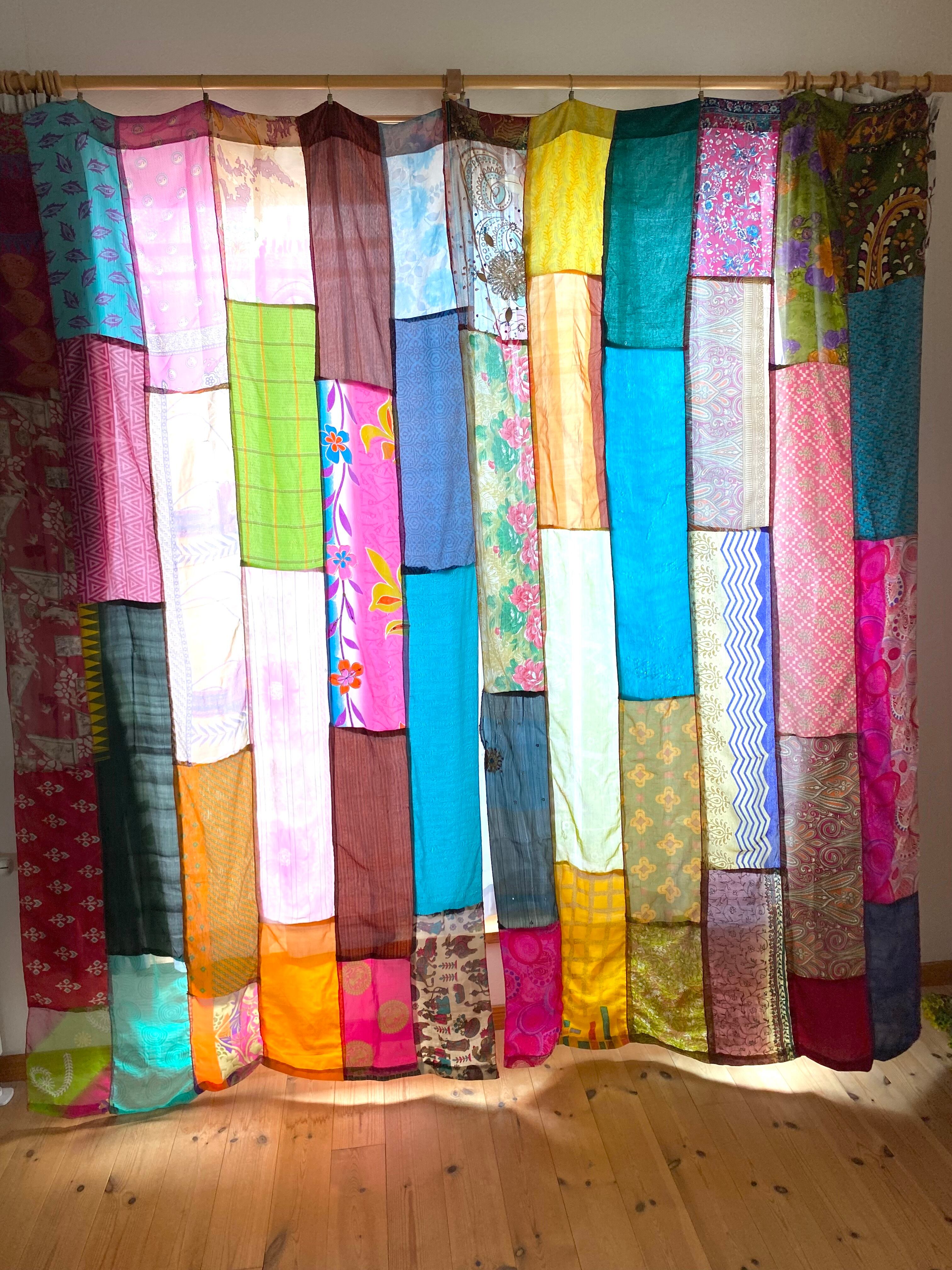 ヴィンテージサリーで出来たパッチワークシルクカーテン