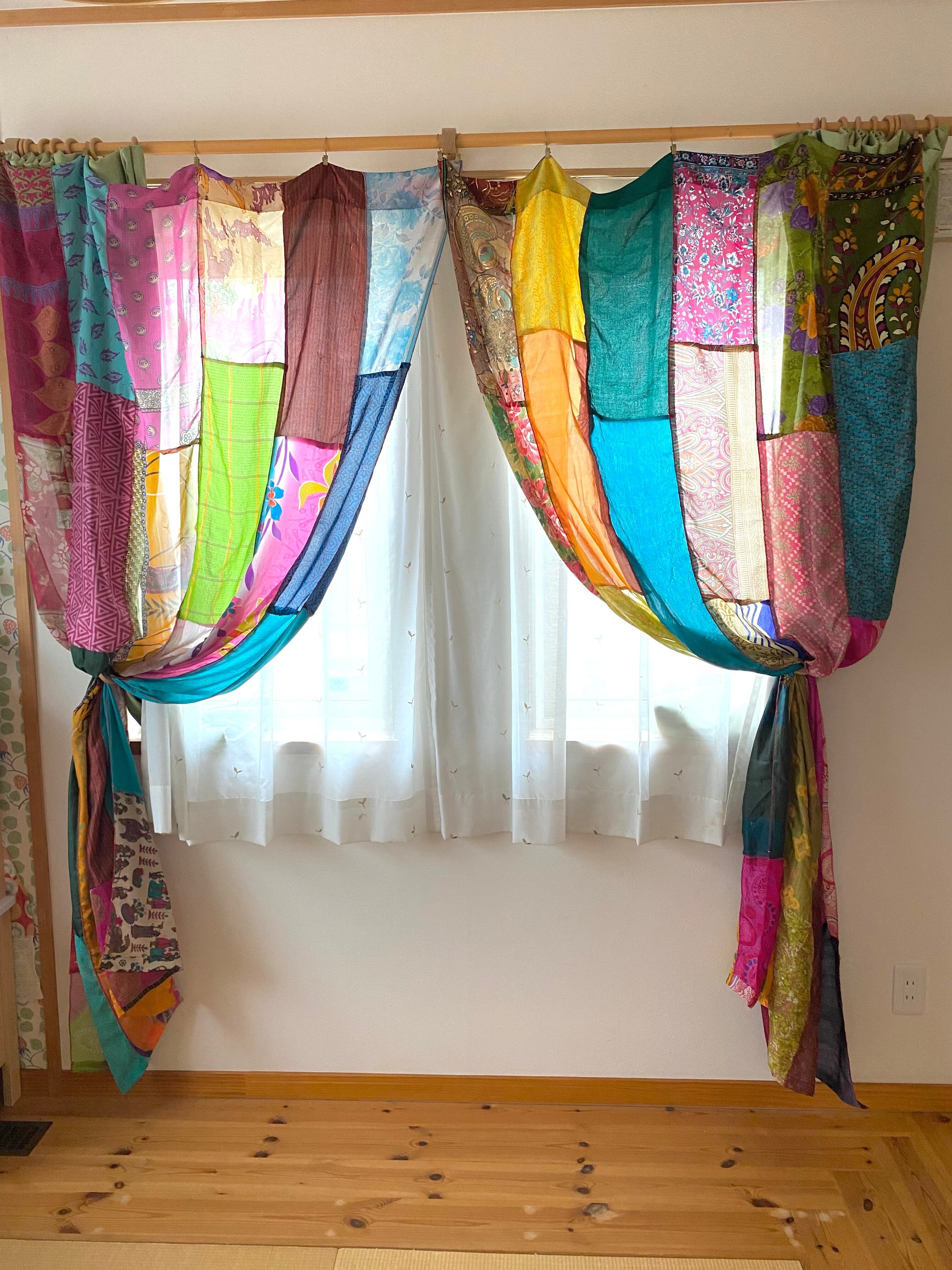 ※カーテンとしては新品未使用ですが、布はヴィンテージサリーを使っております。