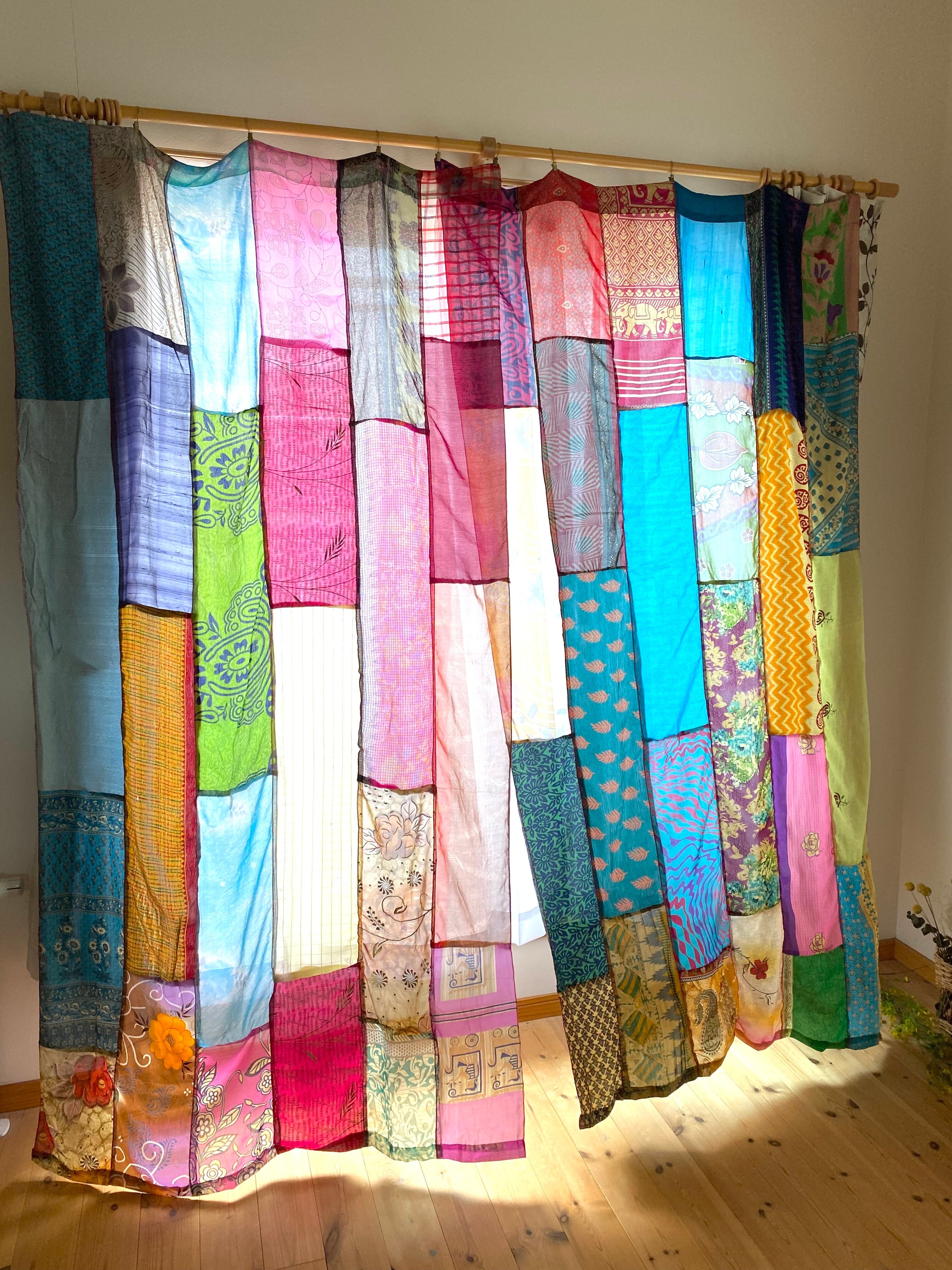 ヴィンテージサリーで出来たパッチワークシルクカーテン