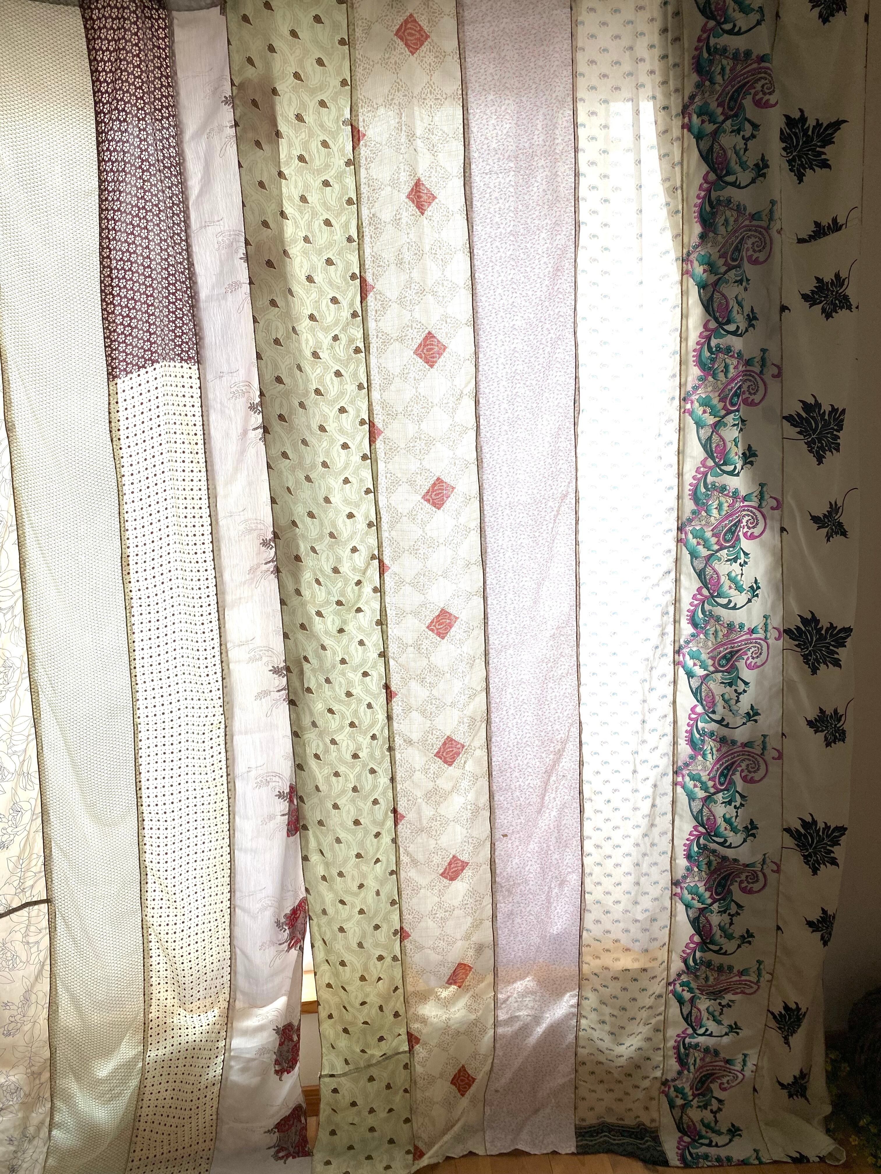 ヴィンテージサリーで出来たパッチワークシルクカーテン