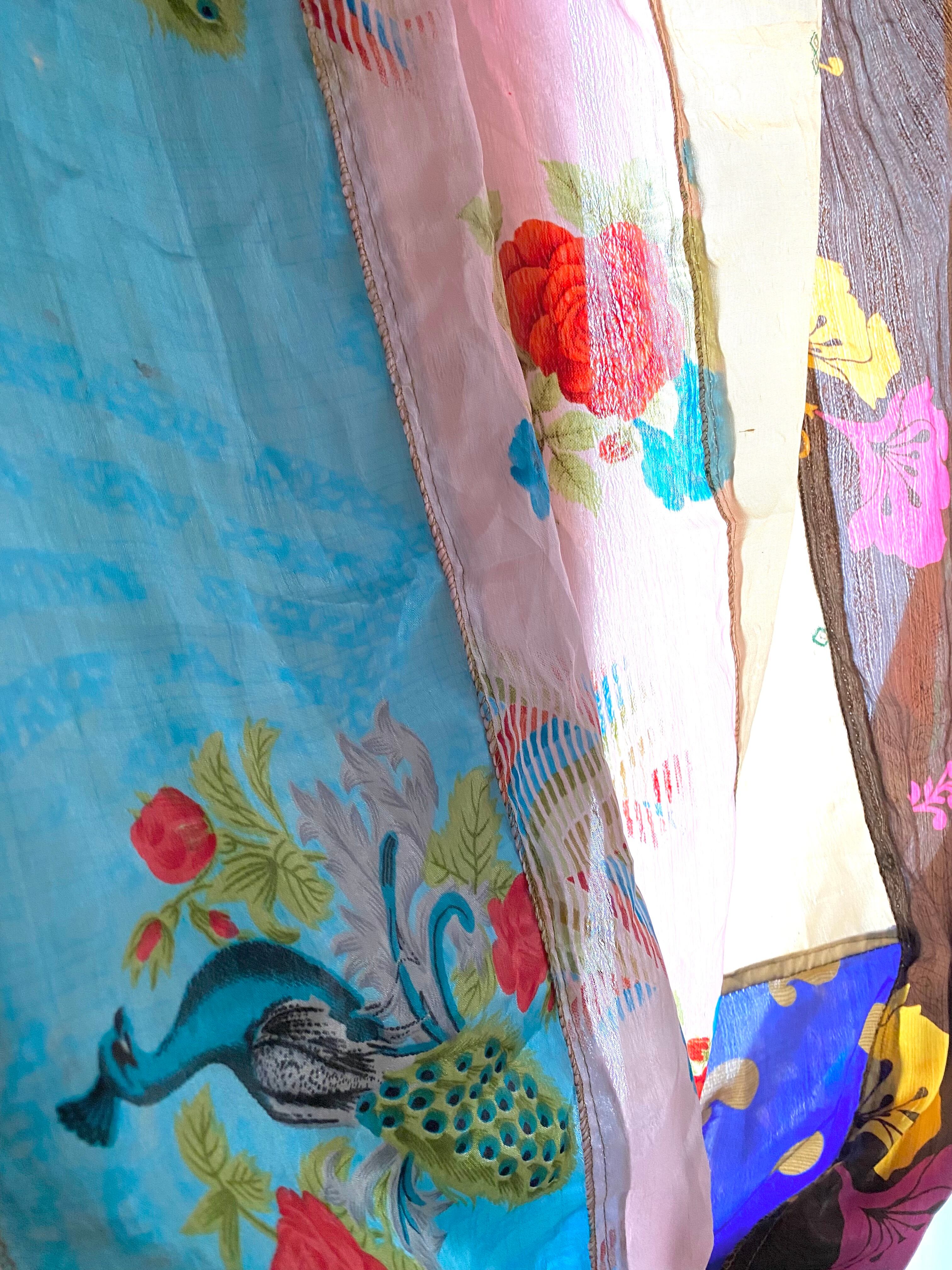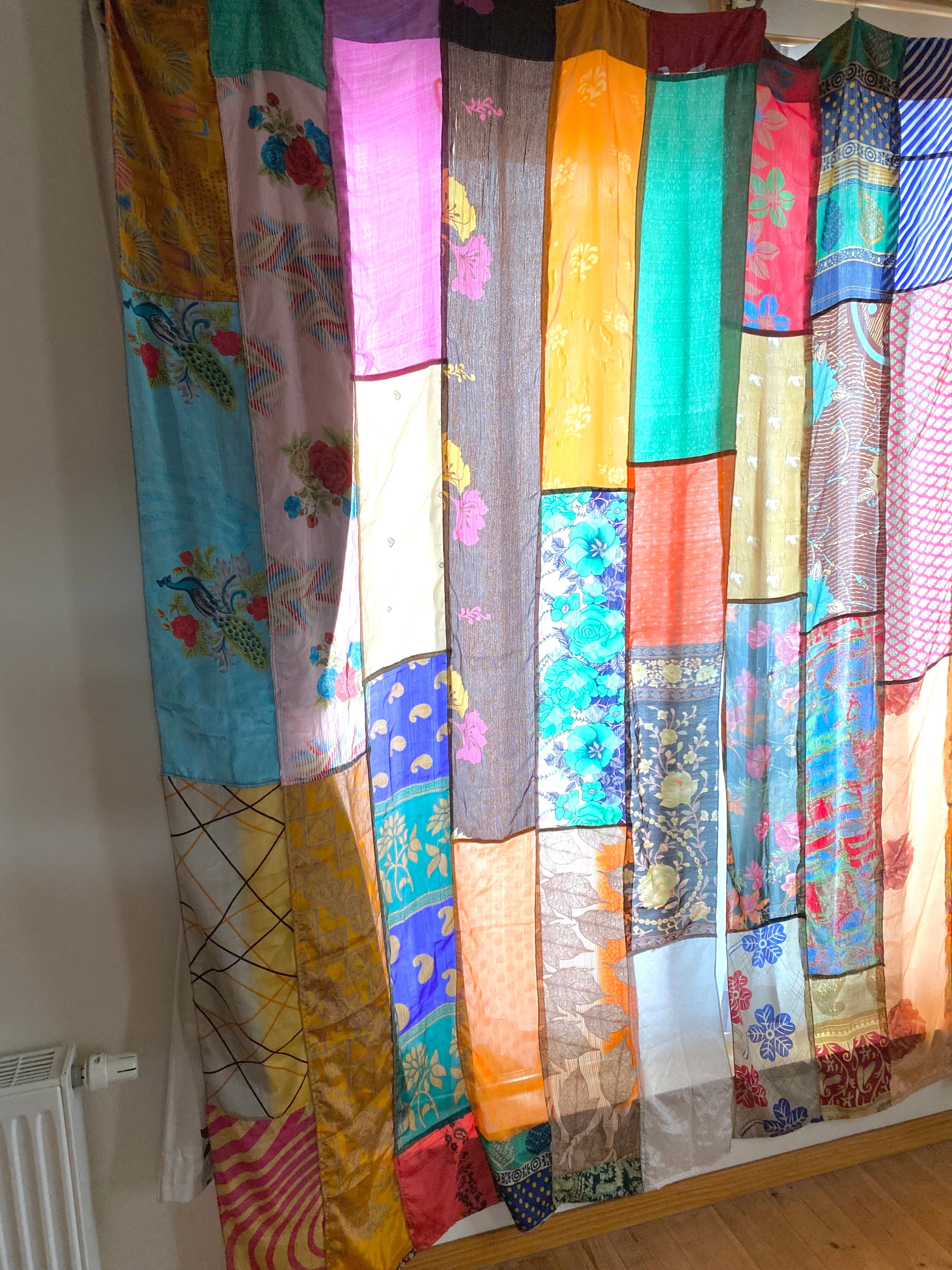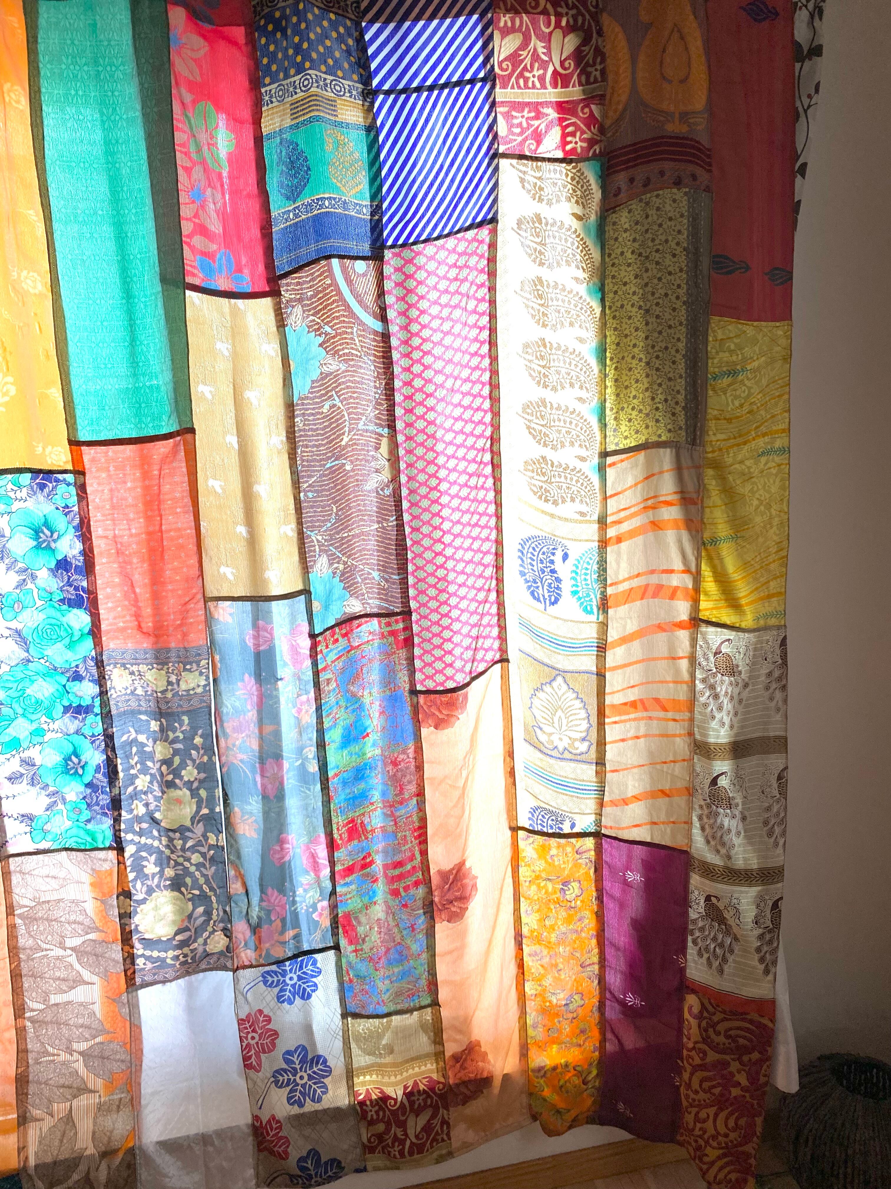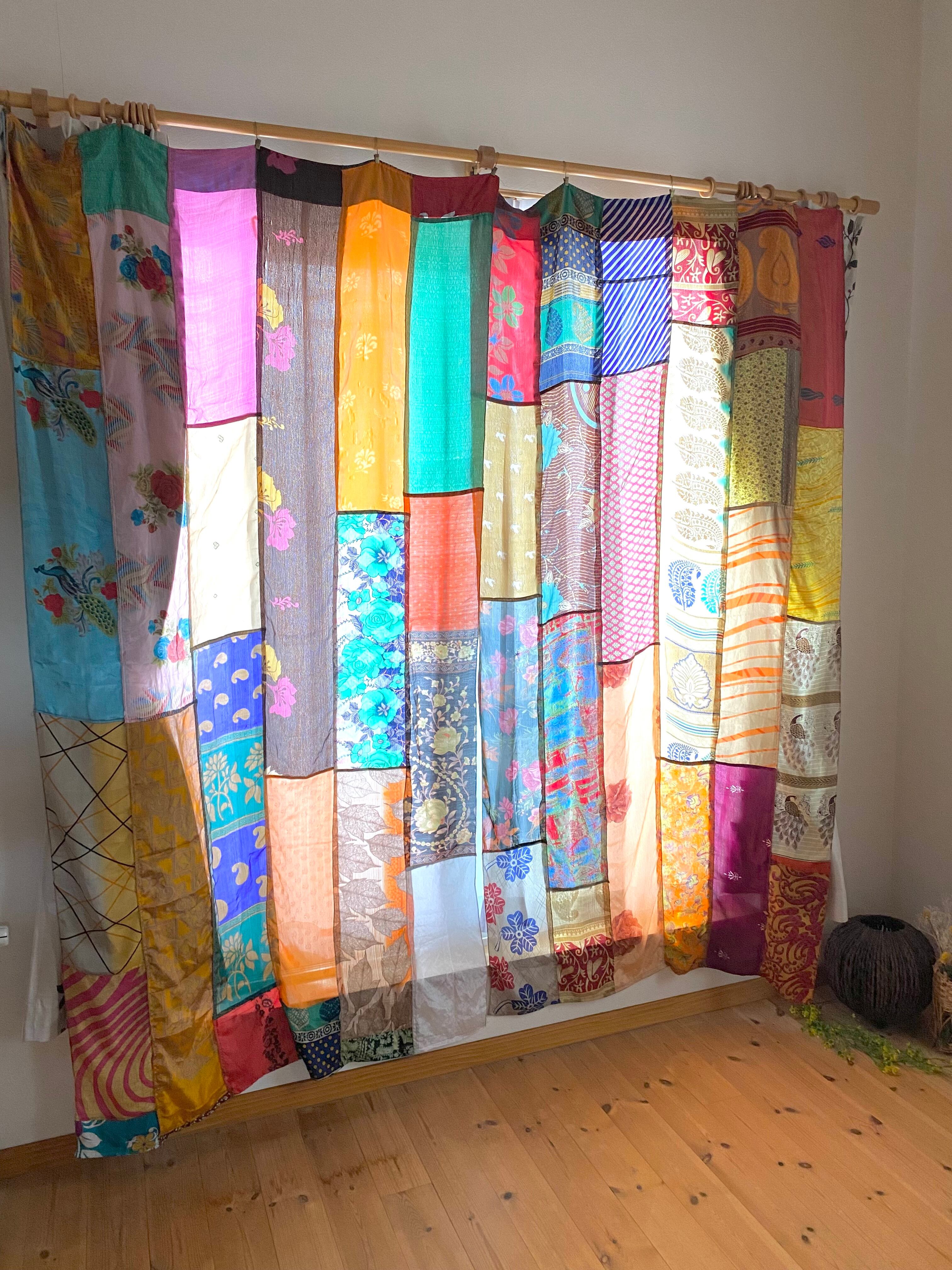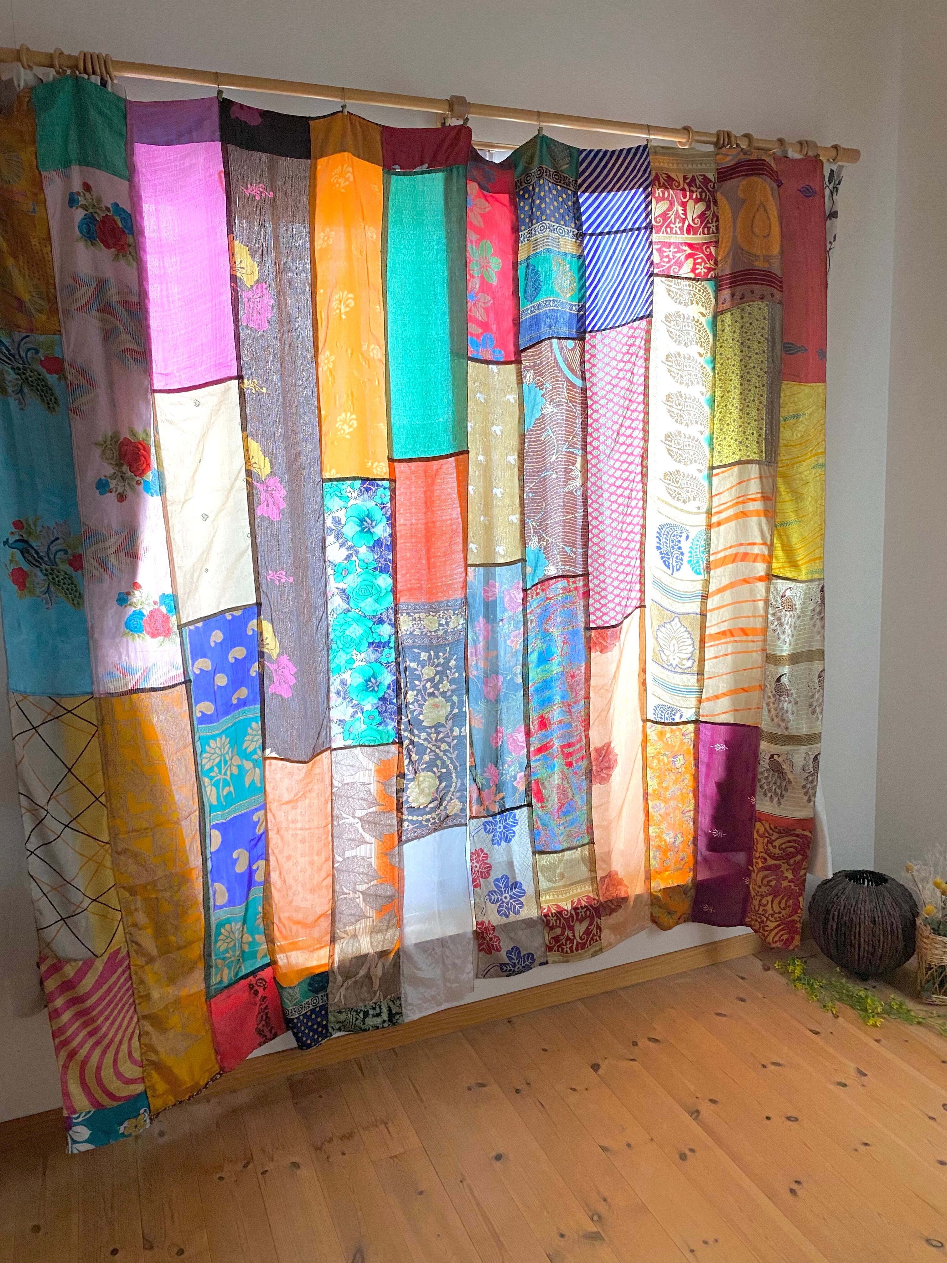 ヴィンテージサリーで出来たパッチワークシルクカーテン