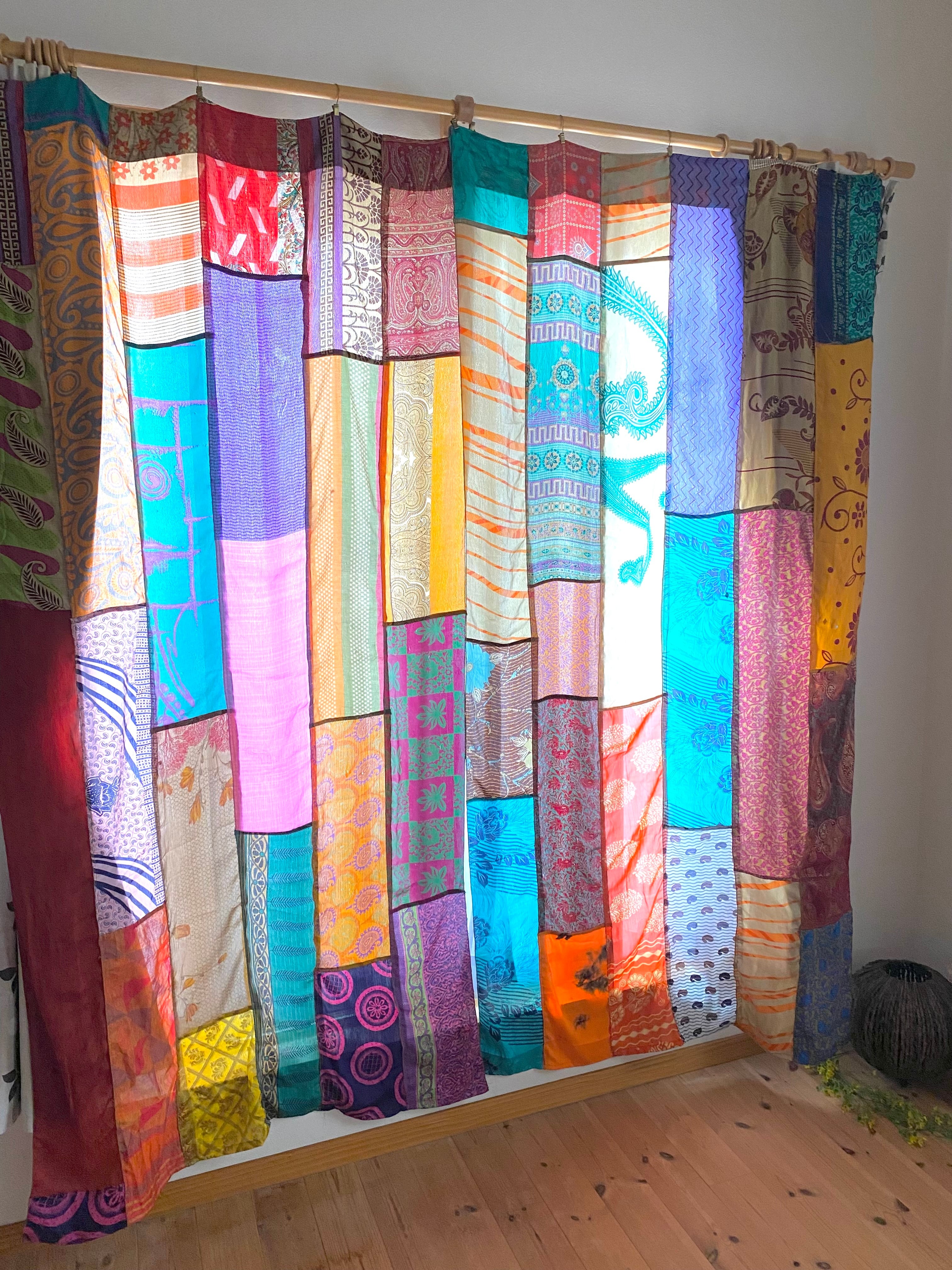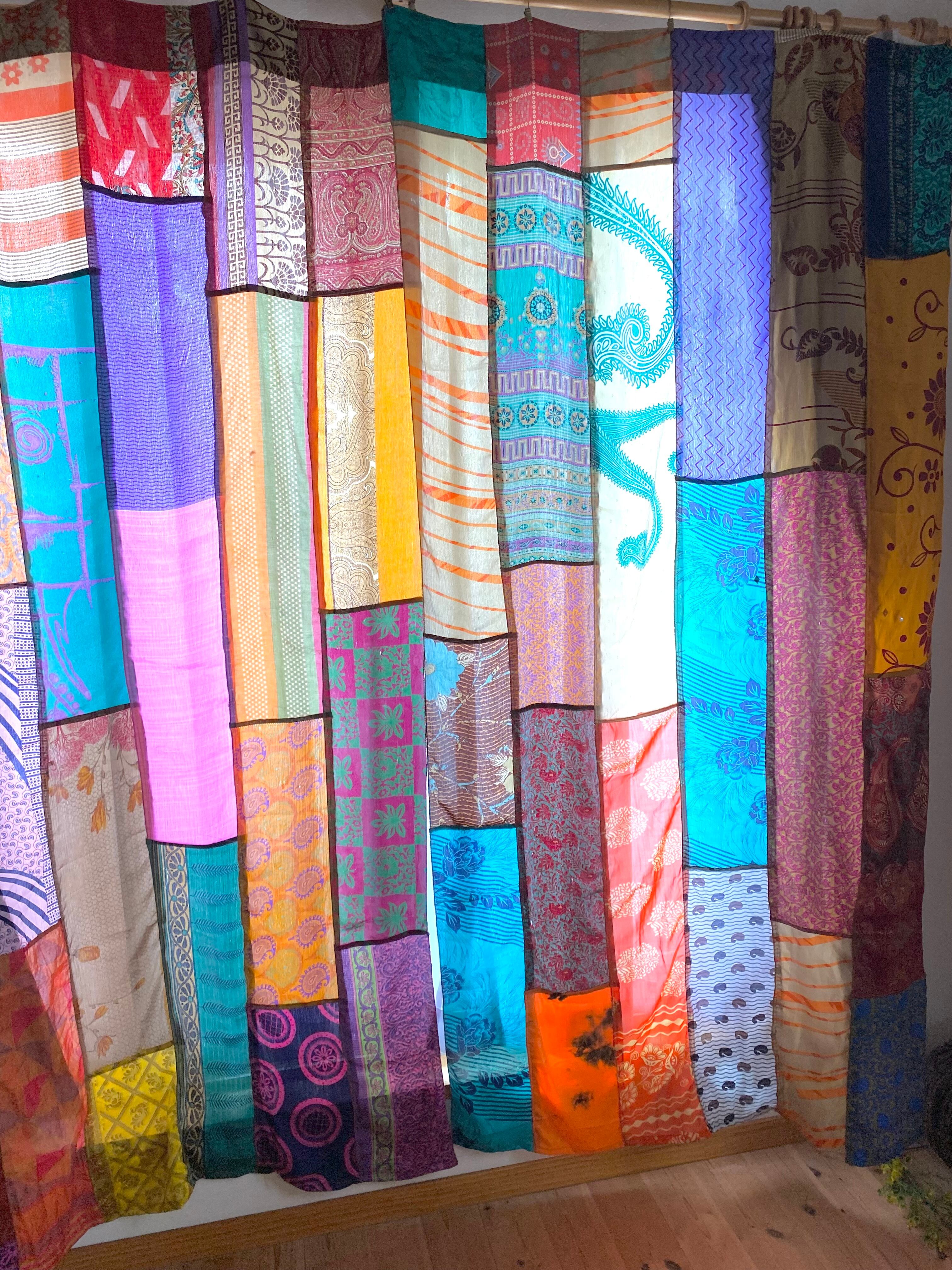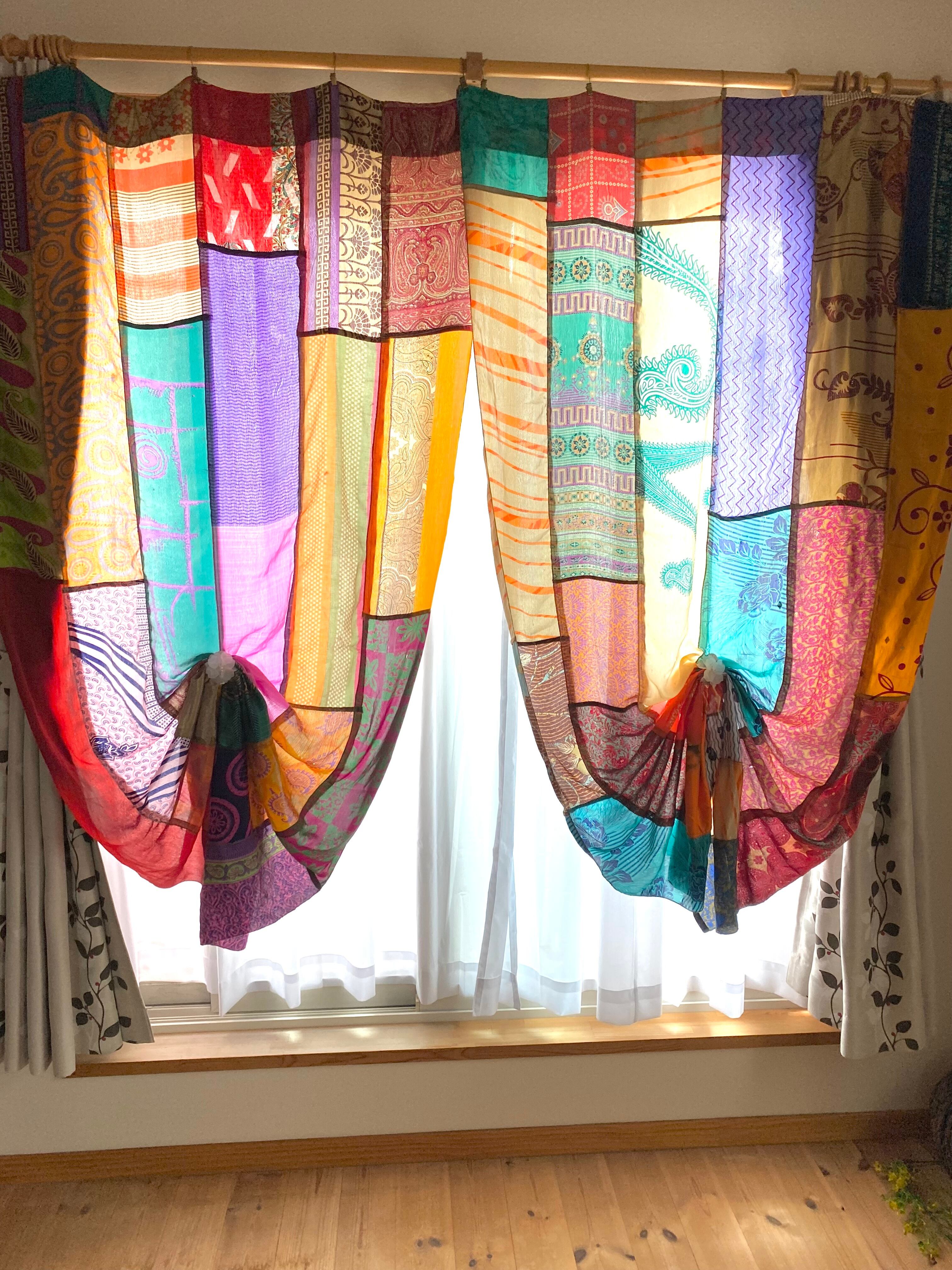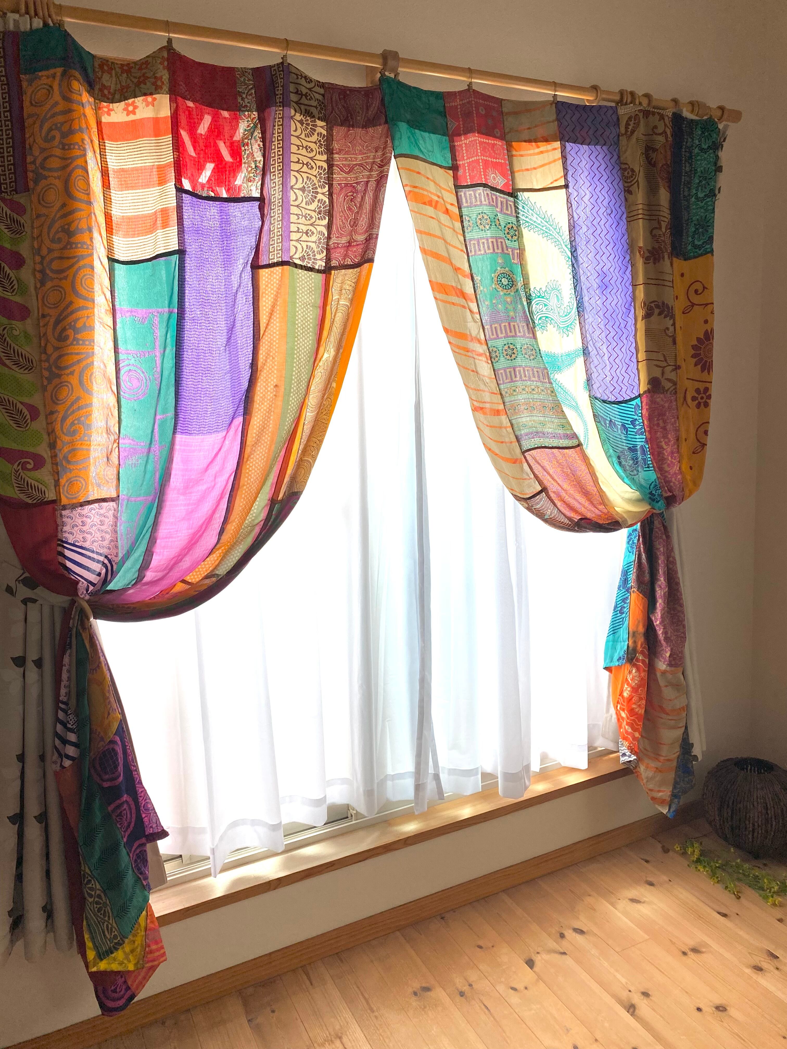 ヴィンテージサリーで出来たパッチワークシルクカーテン
