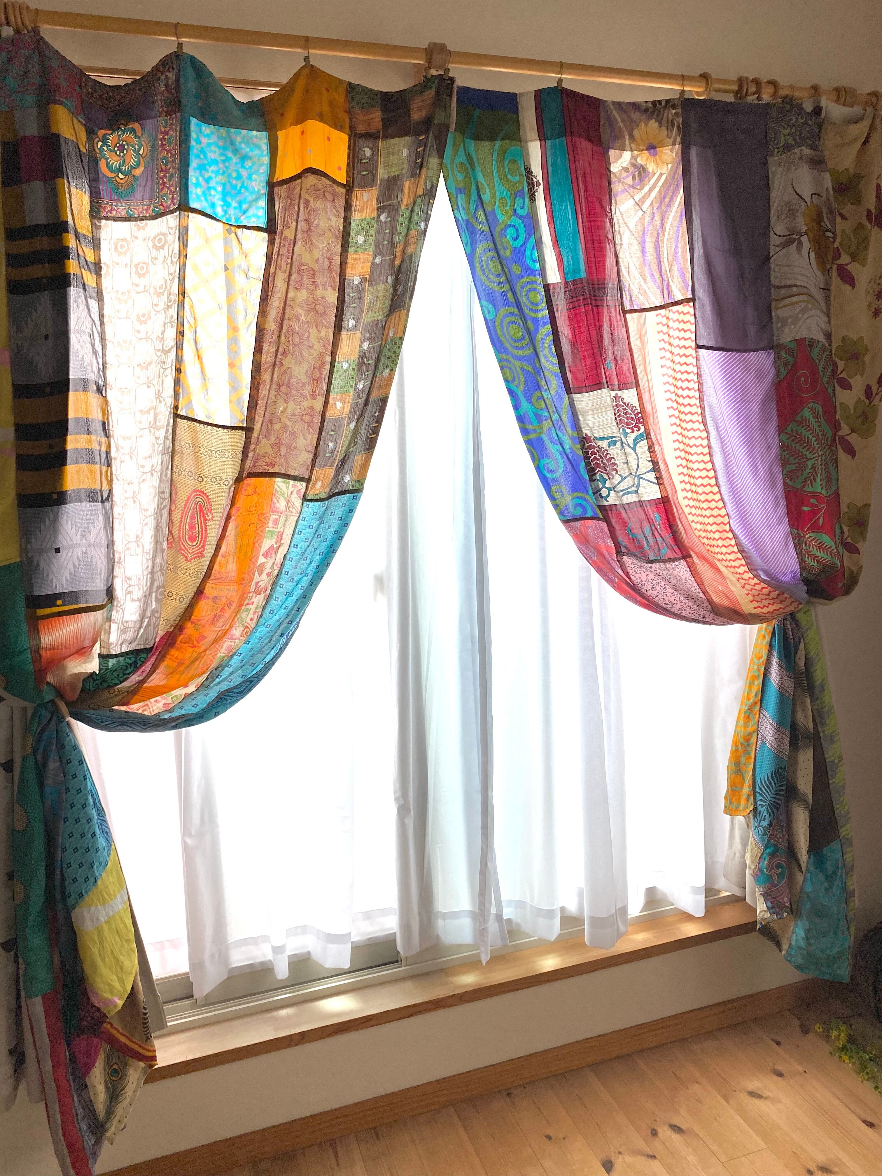 ※カーテンとしては新品未使用ですが、布はヴィンテージサリーを使っております。