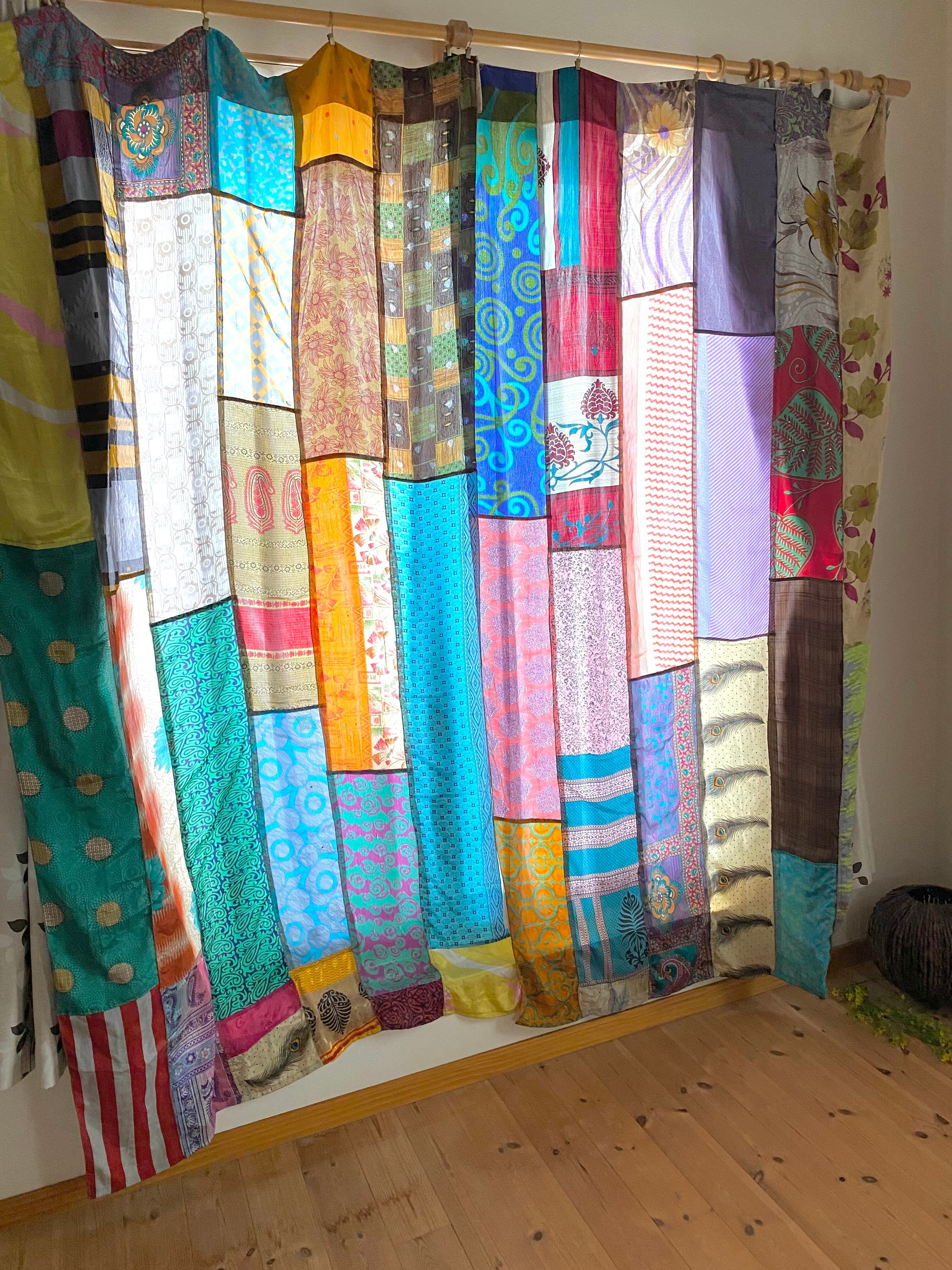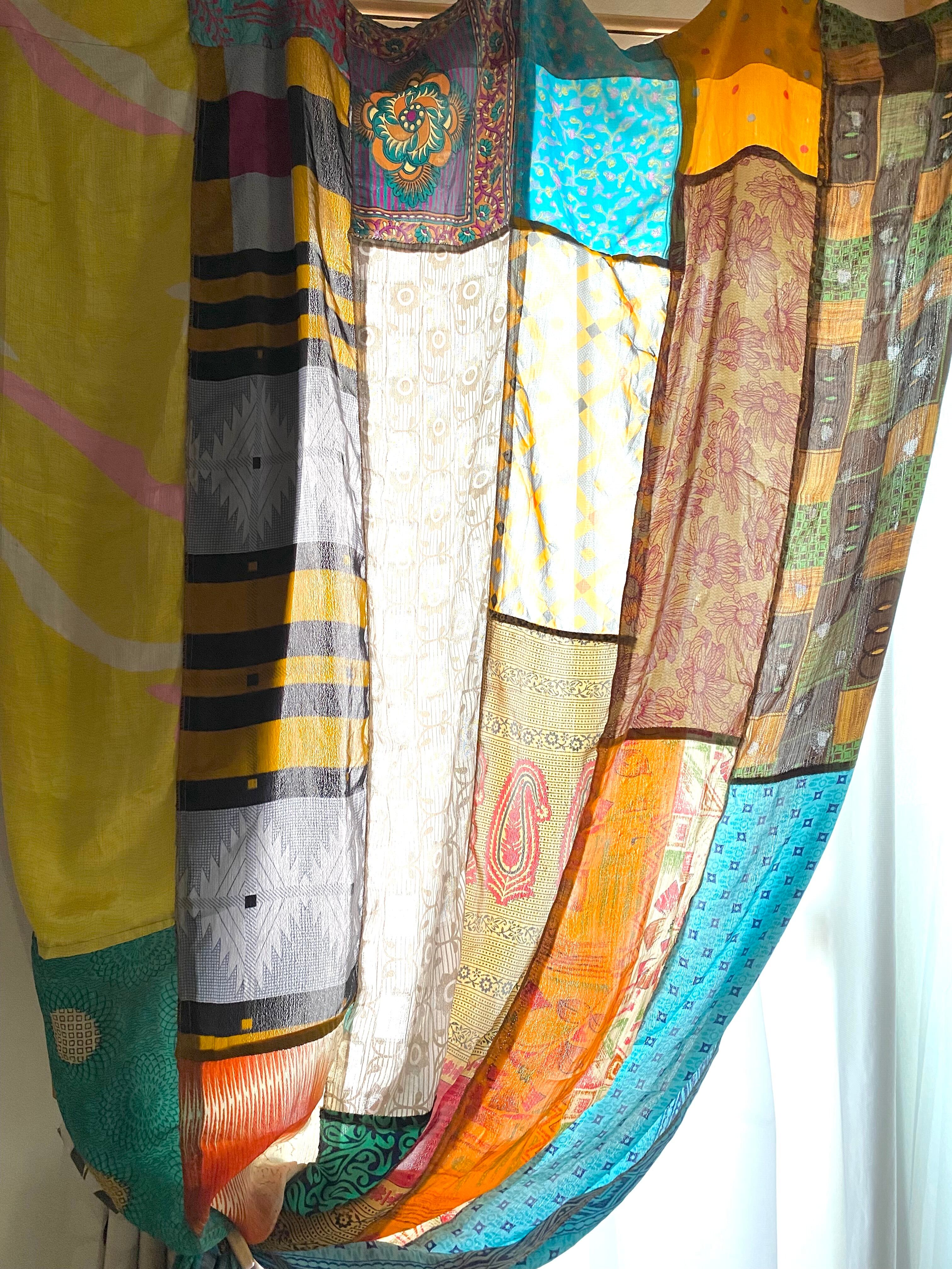 ヴィンテージサリーで出来たパッチワークシルクカーテン