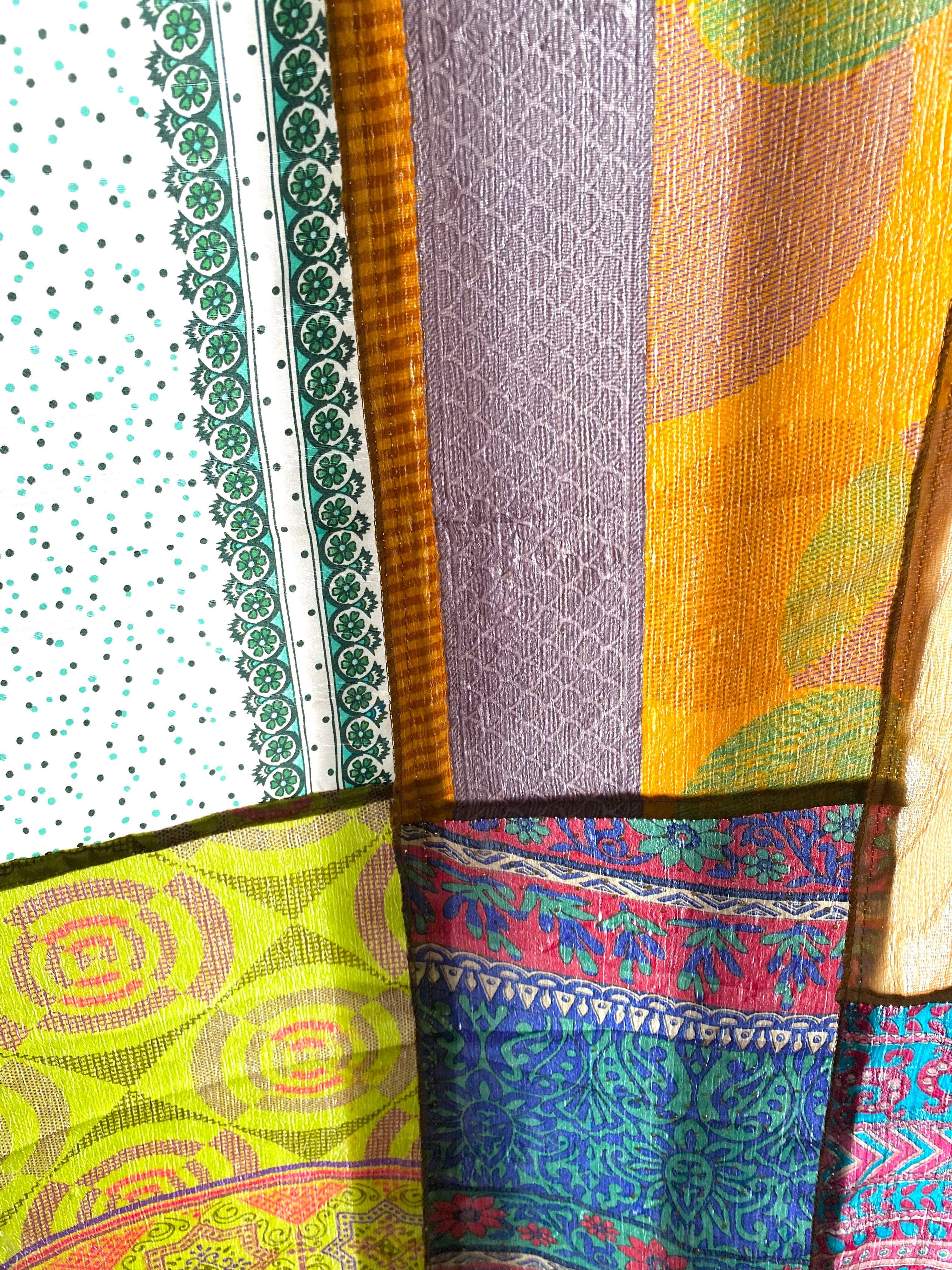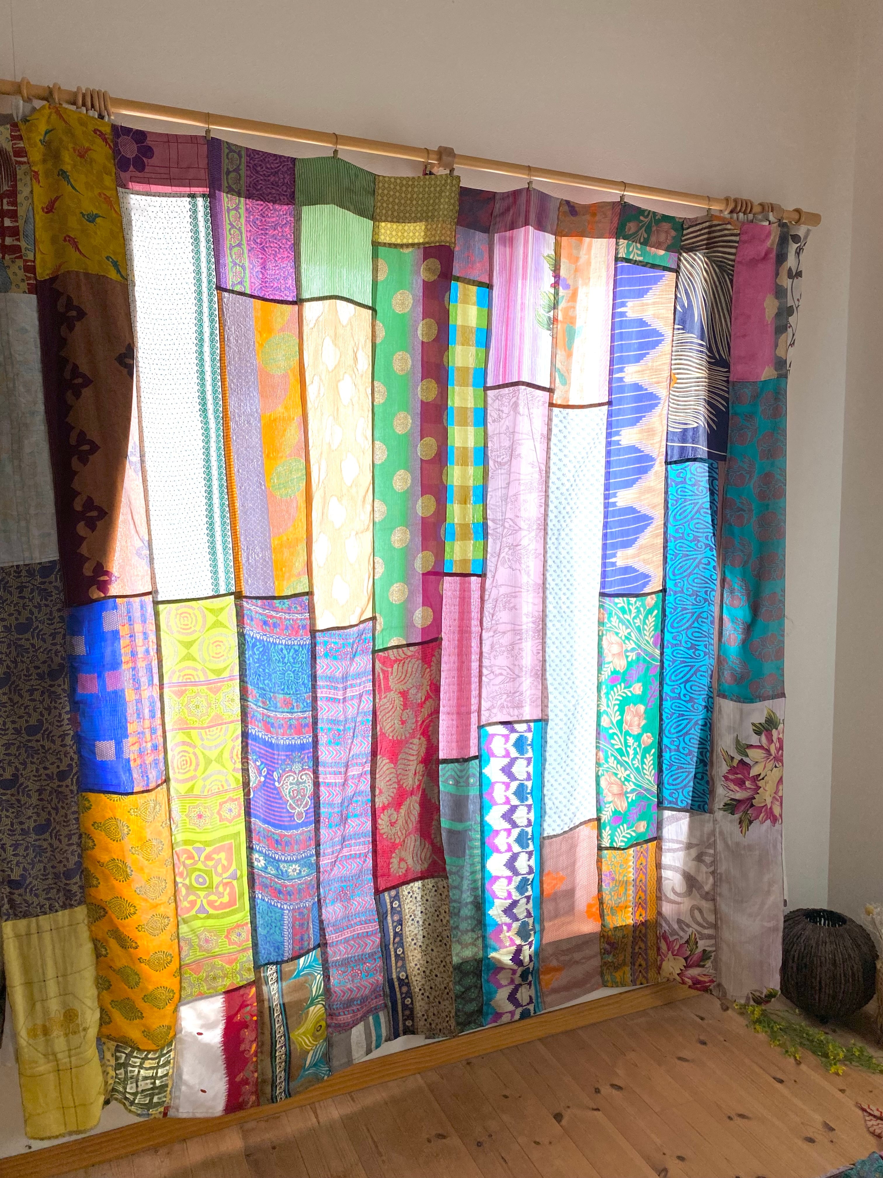 ヴィンテージサリーで出来たパッチワークシルクカーテン