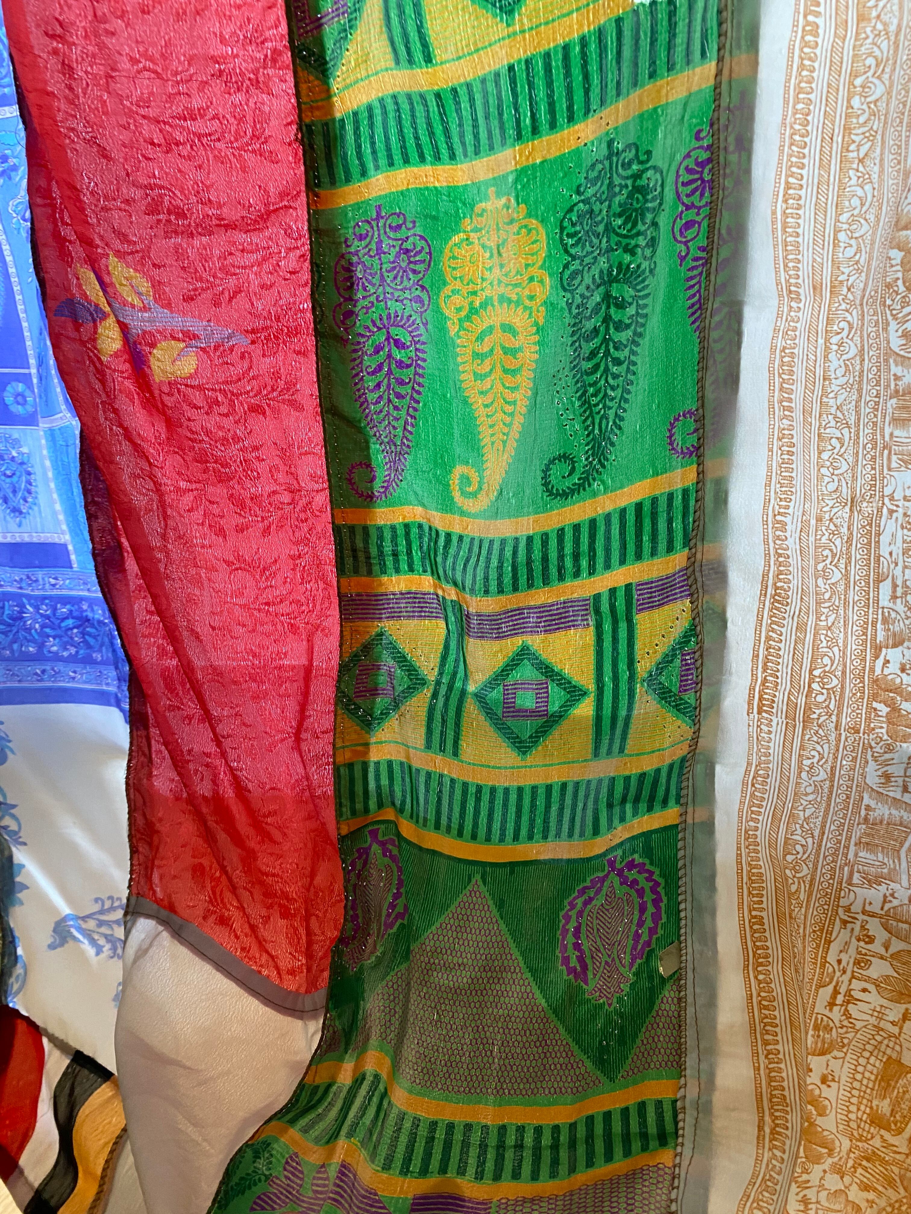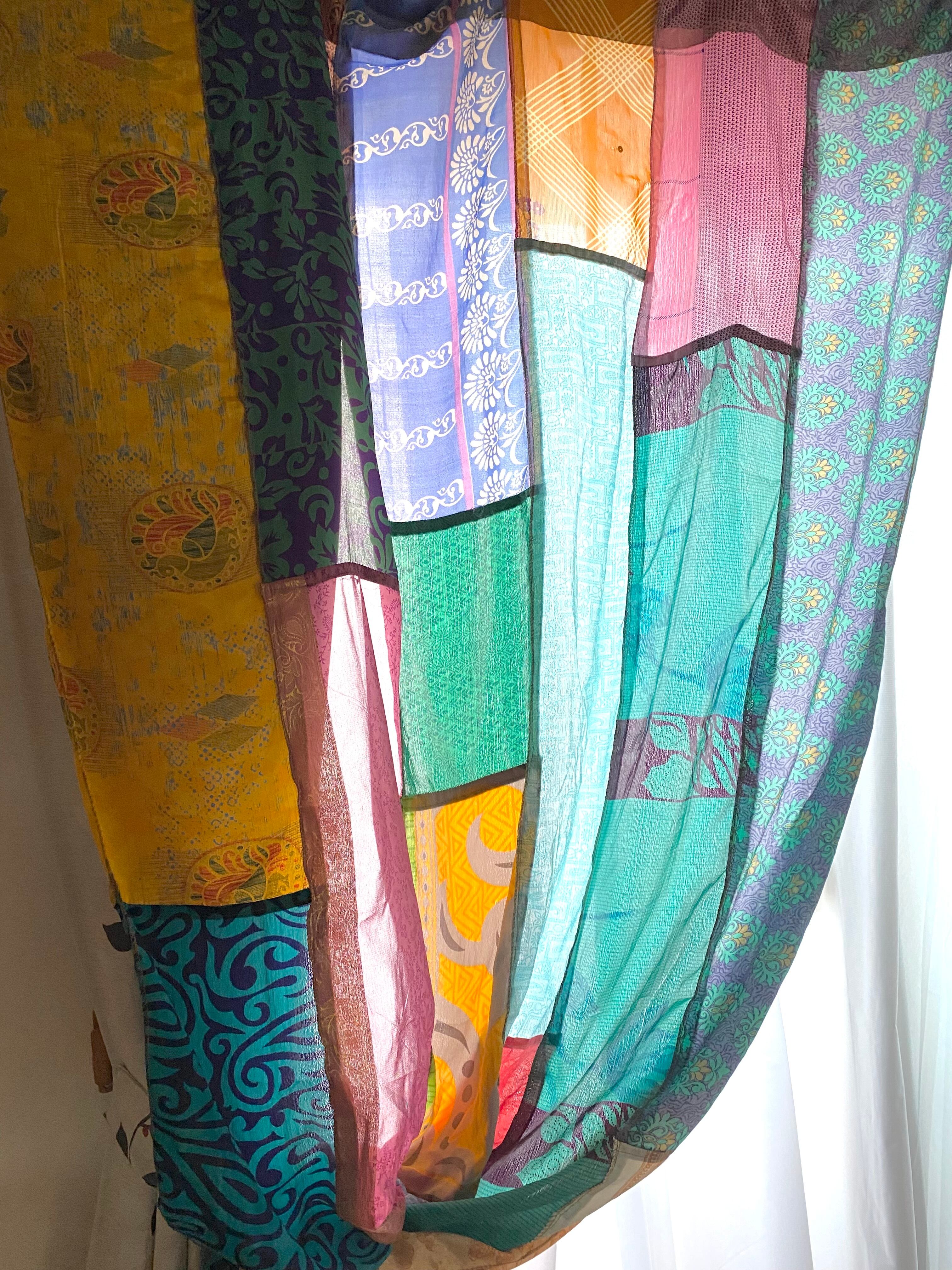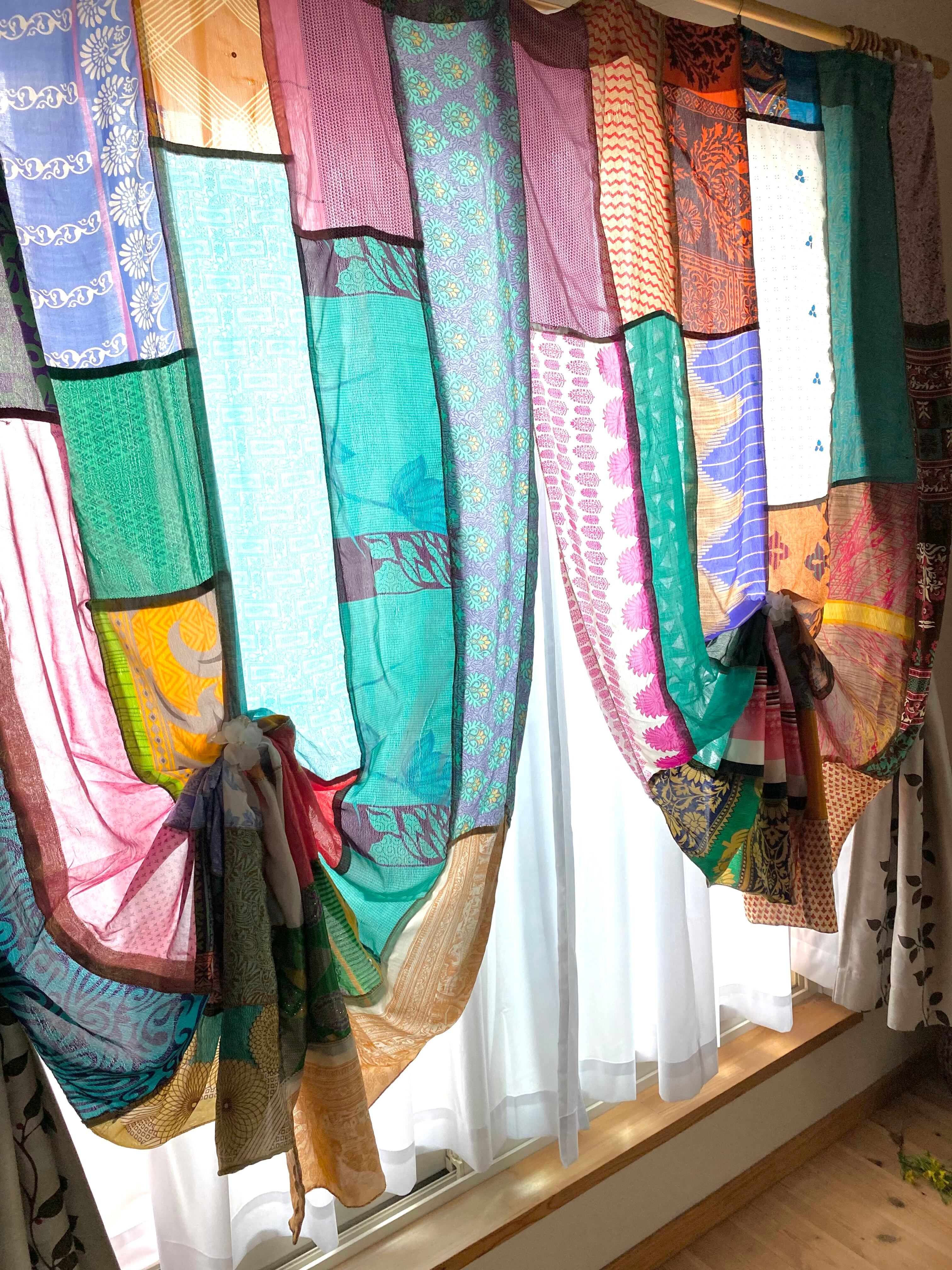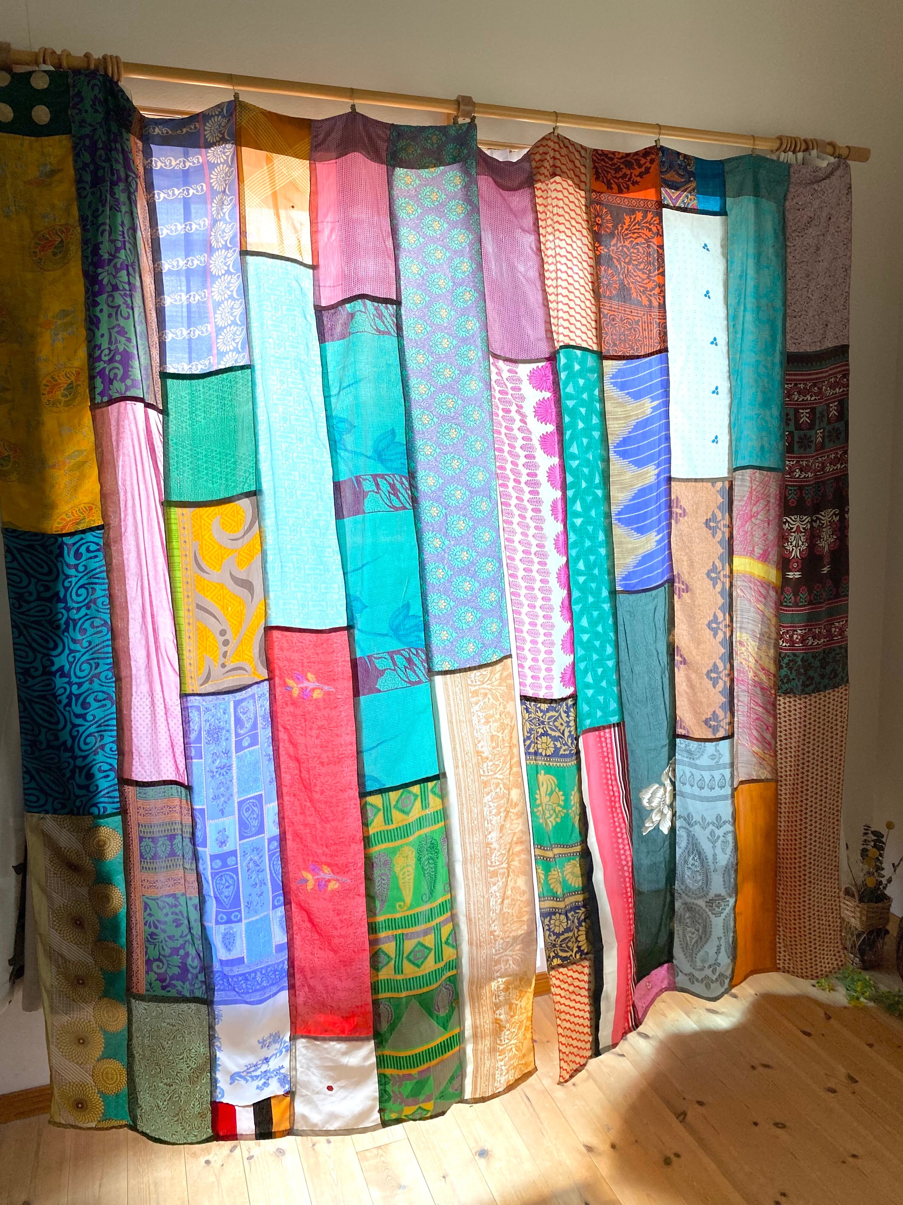 ヴィンテージサリーで出来たパッチワークシルクカーテン