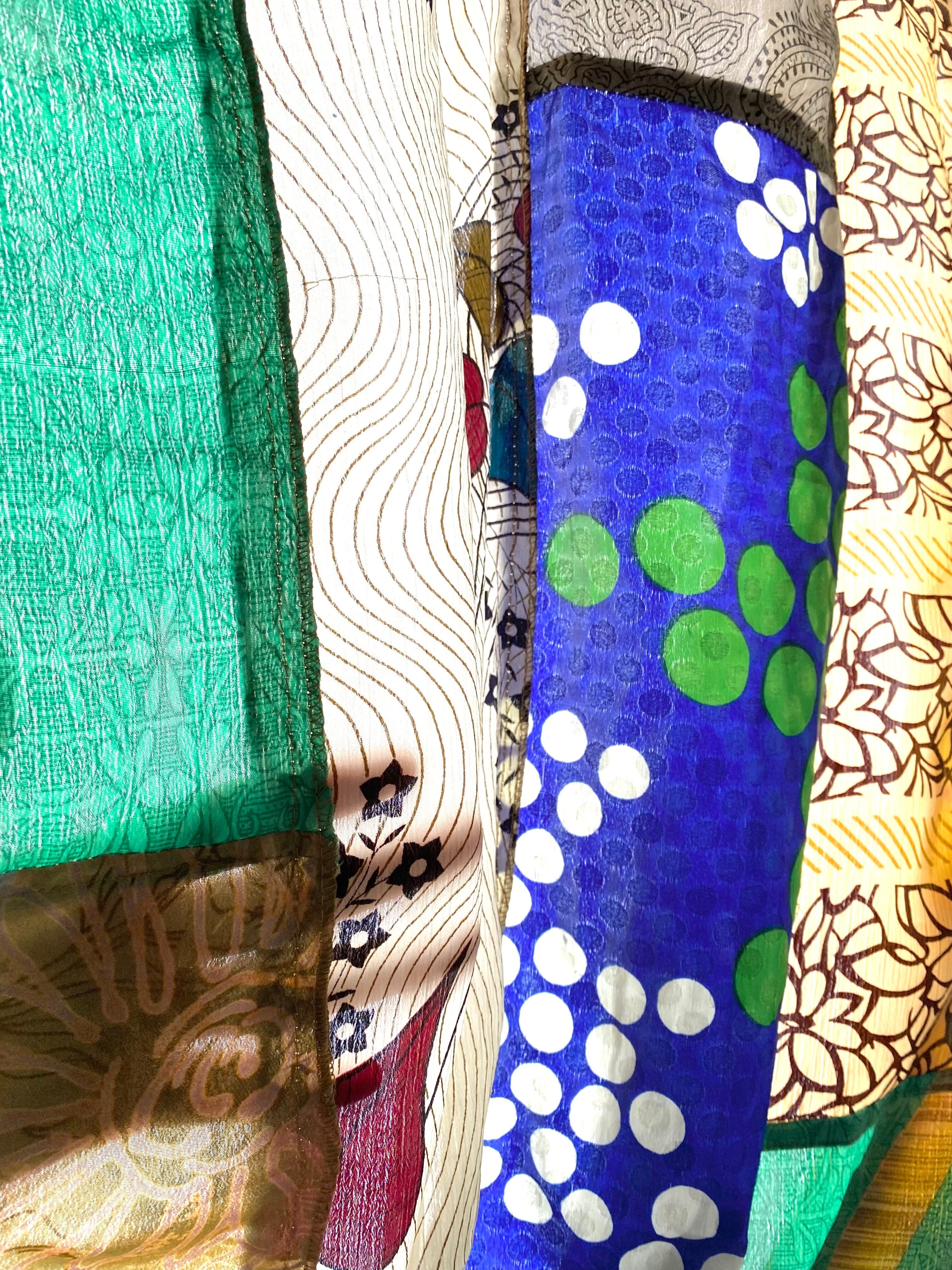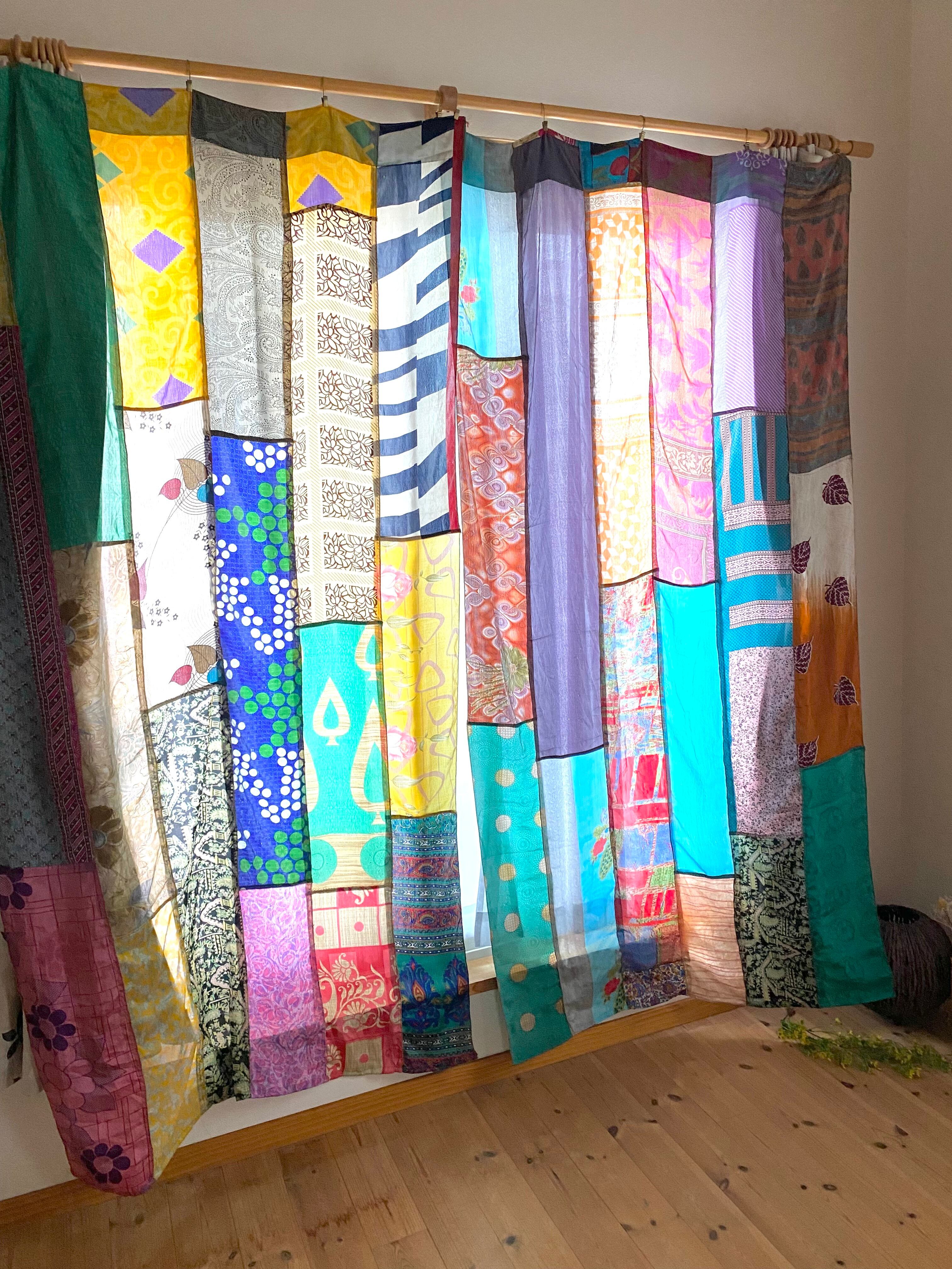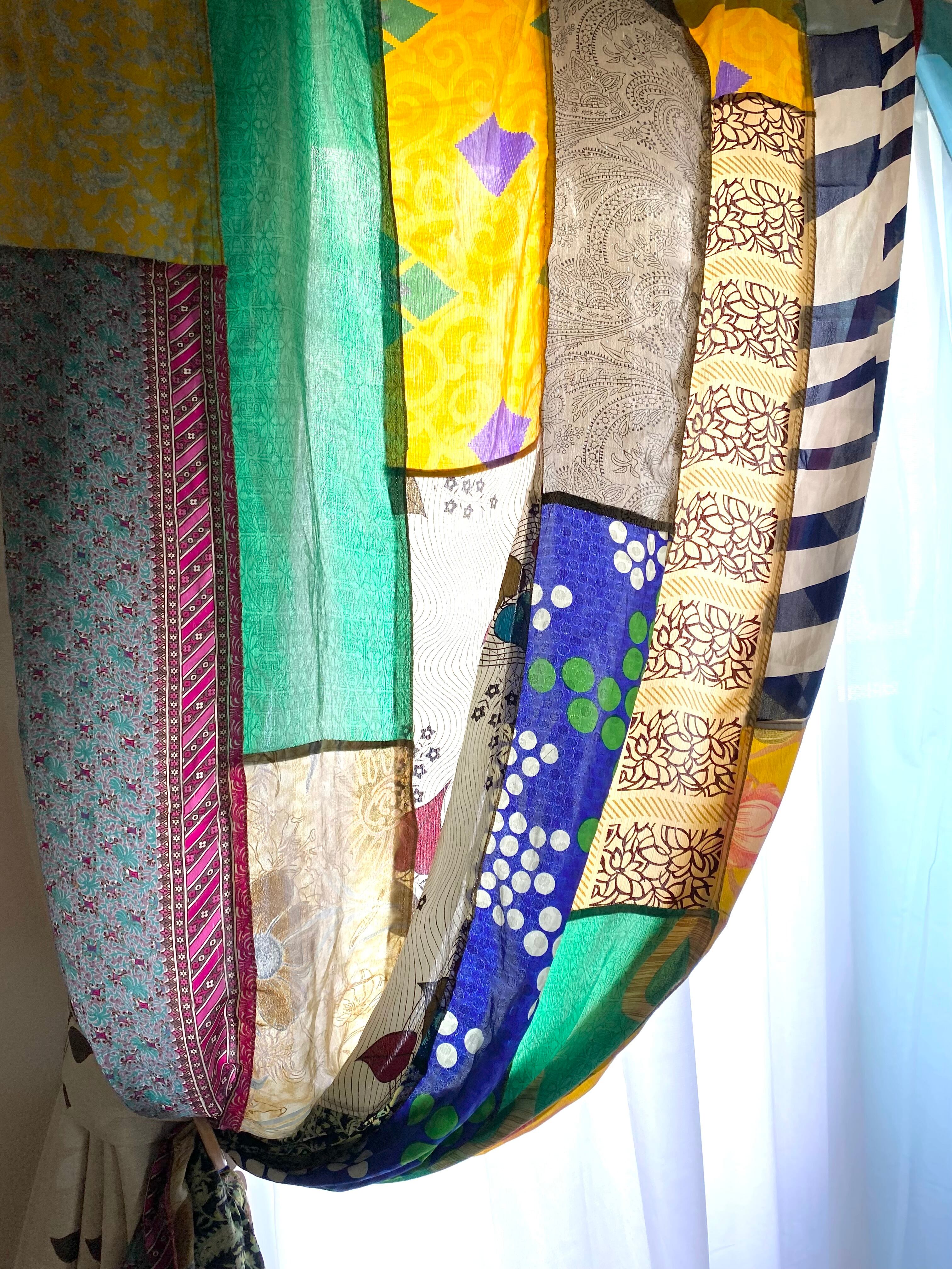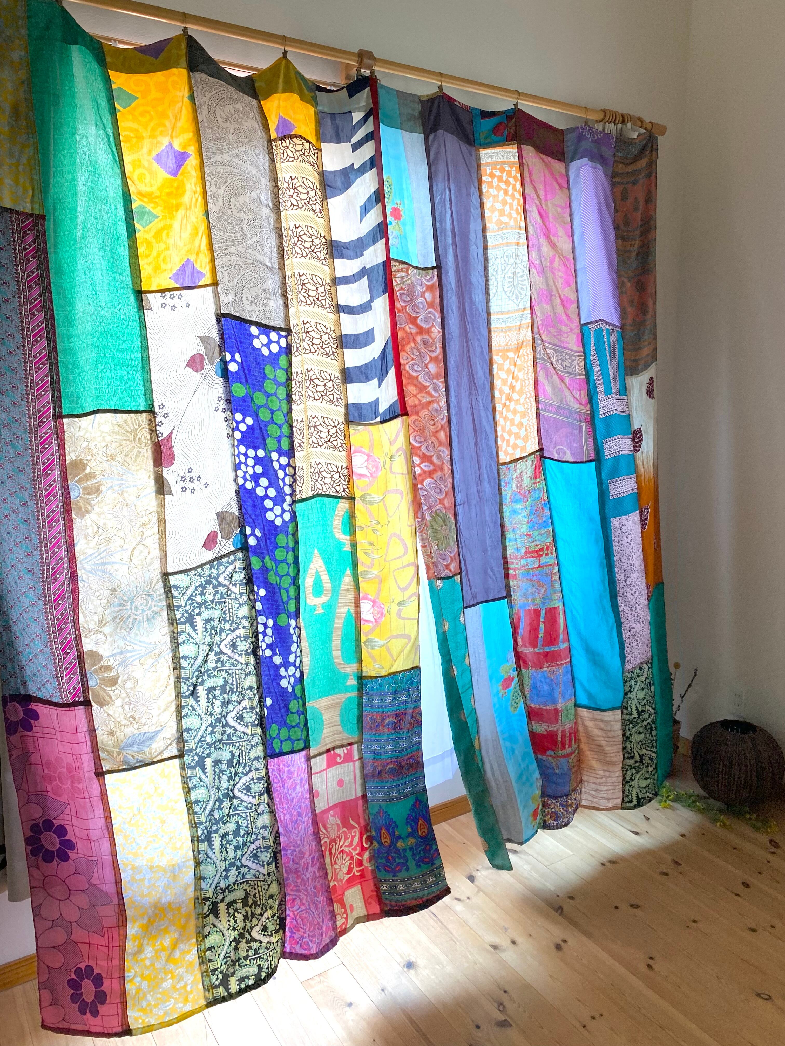 ヴィンテージサリーで出来たパッチワークシルクカーテン