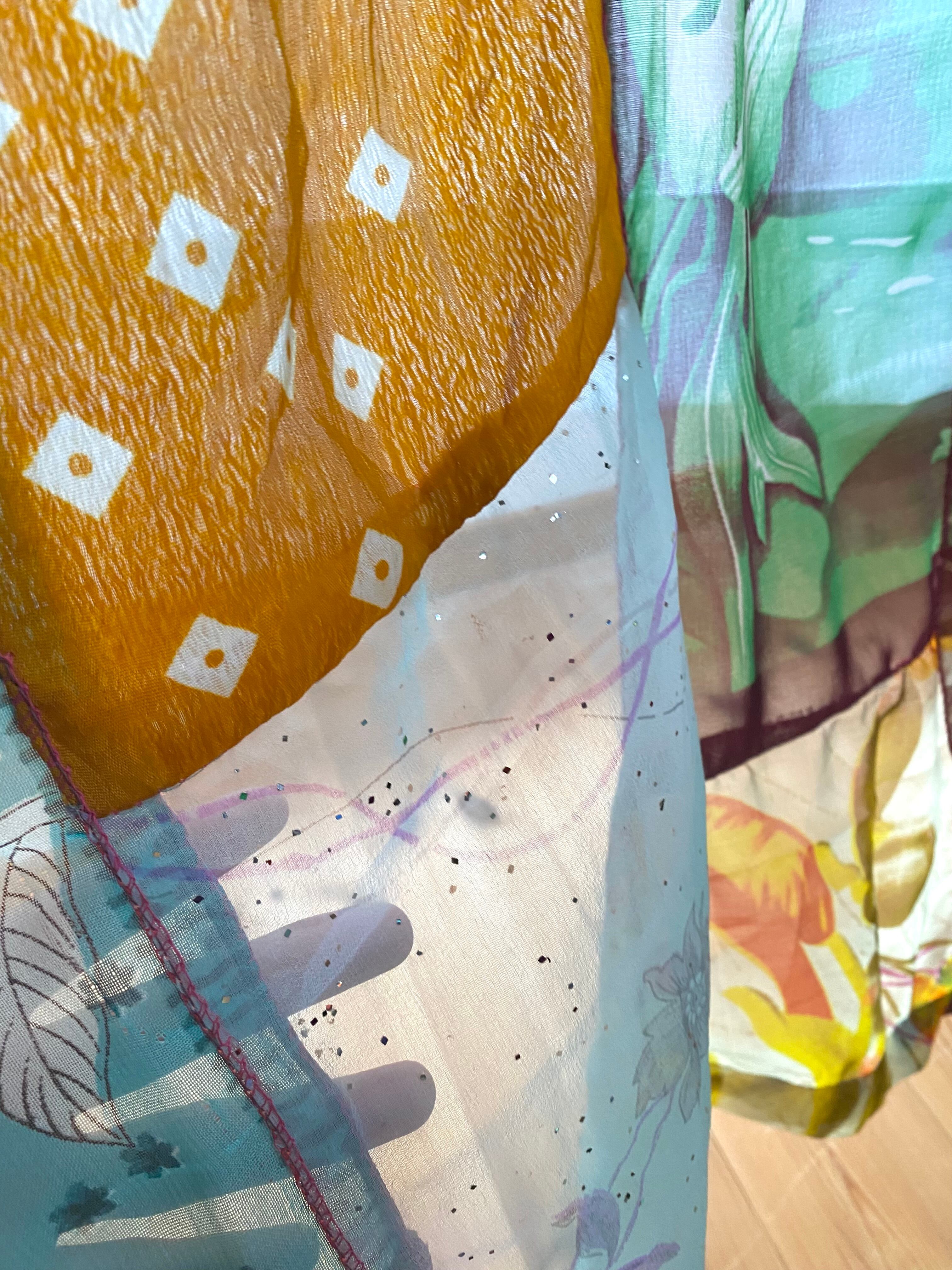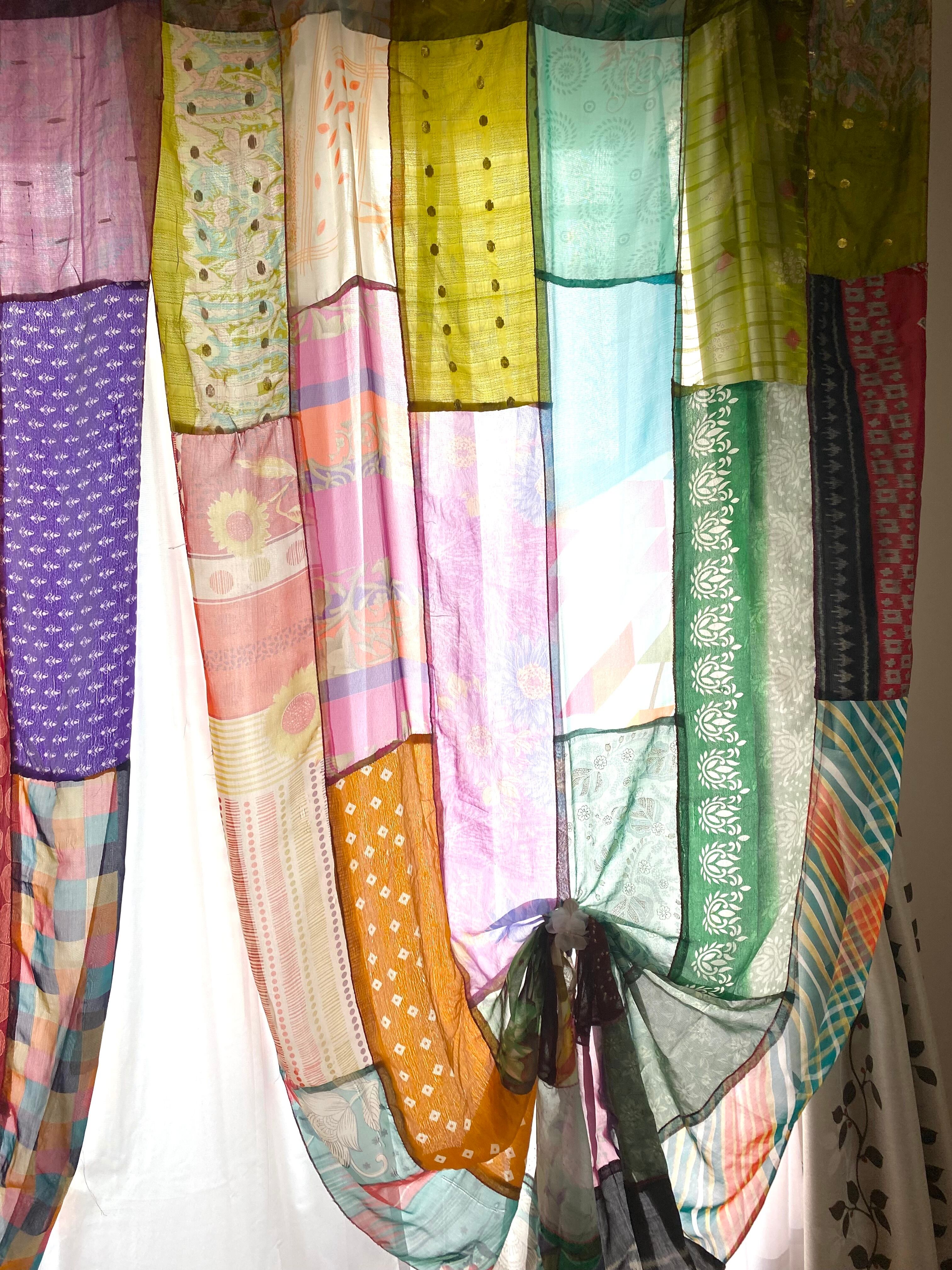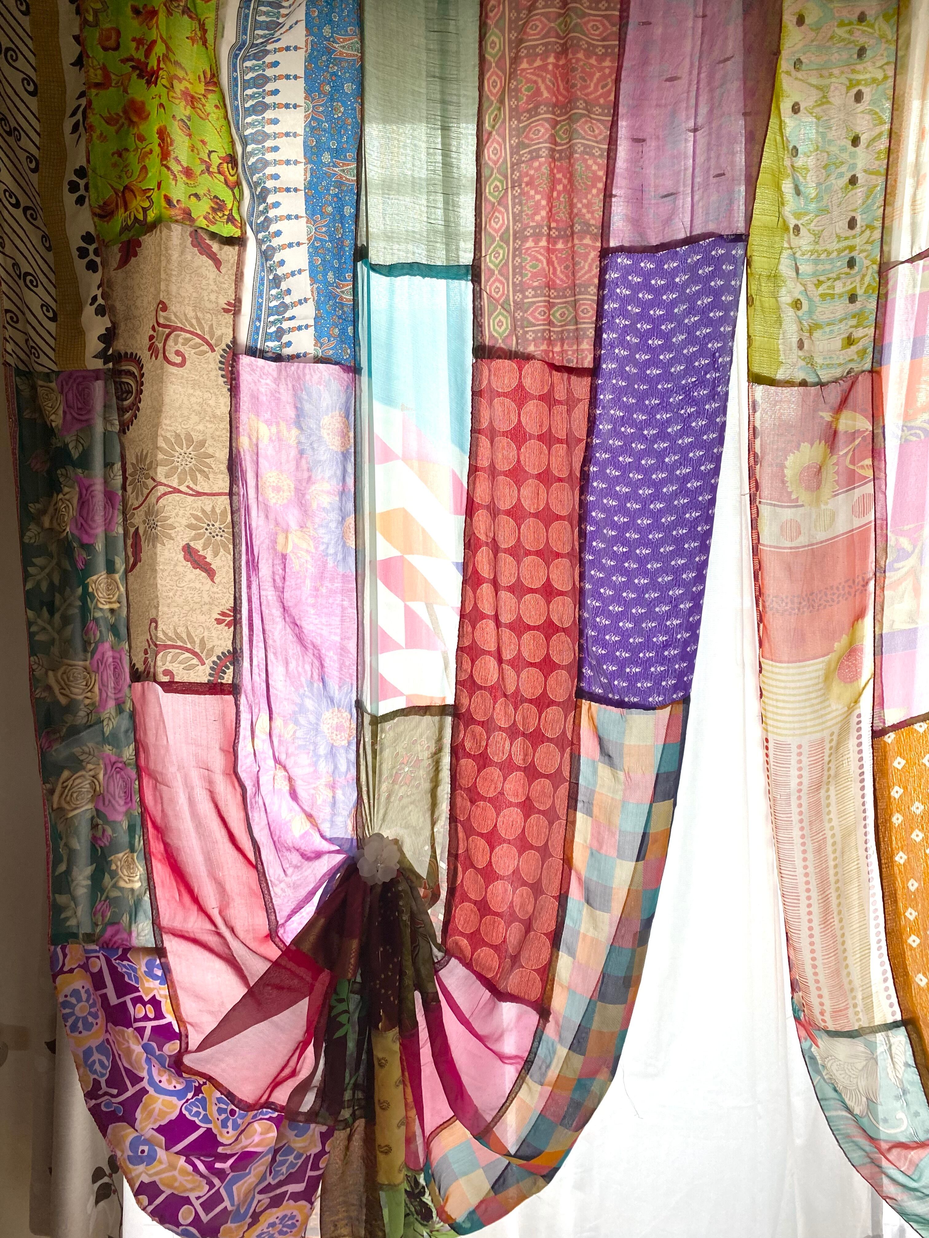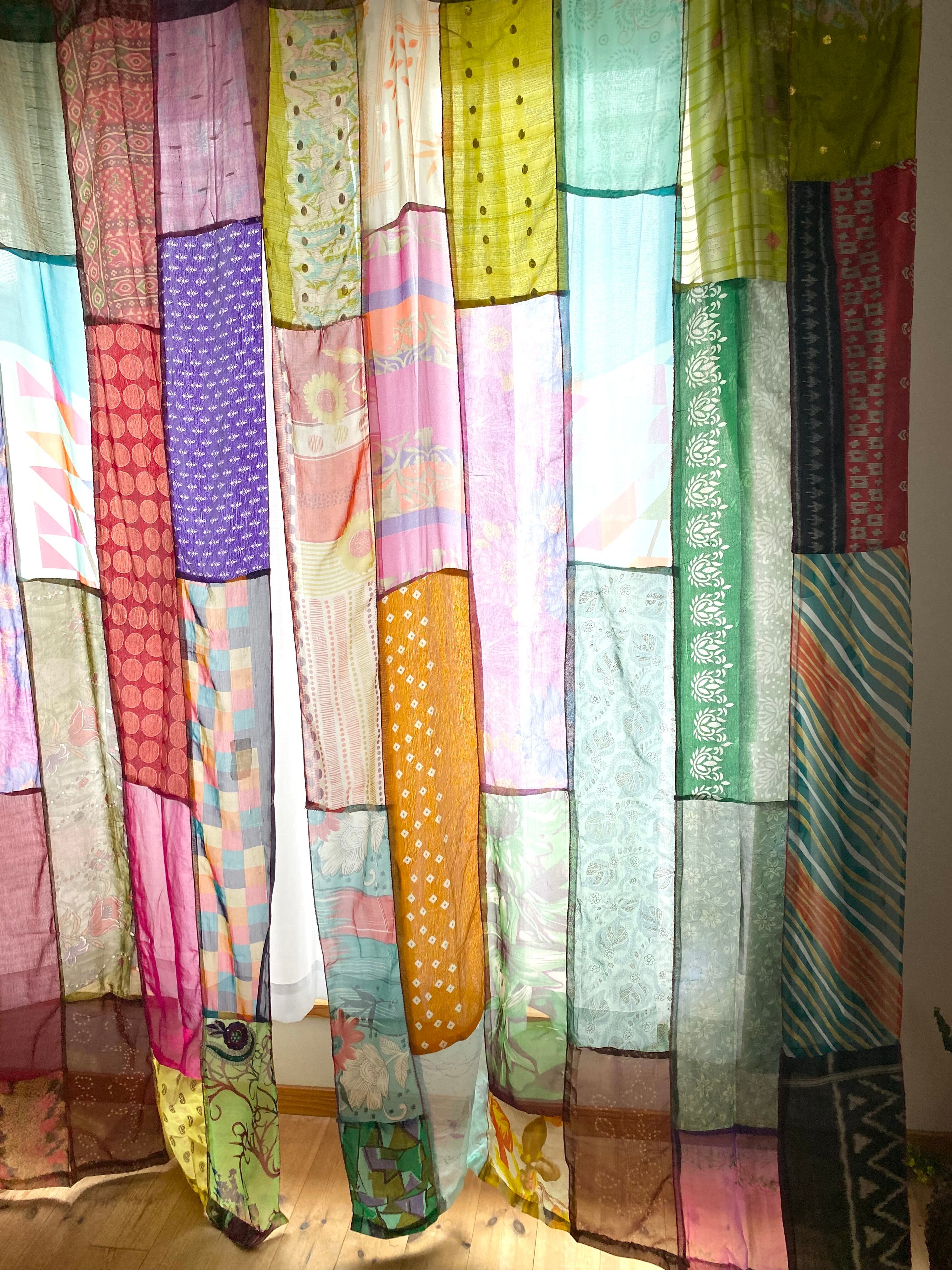 ヴィンテージサリーで出来たパッチワークシルクカーテン