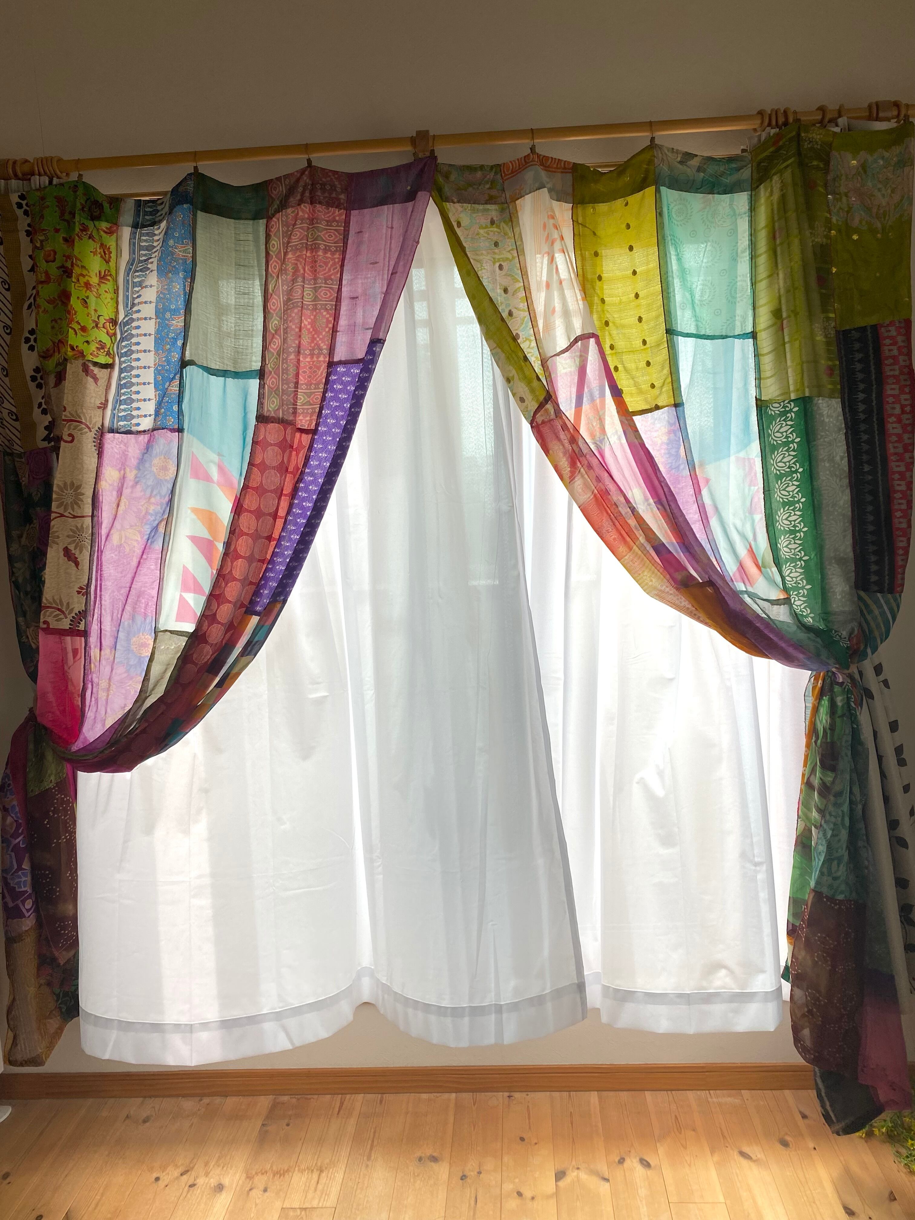 ※カーテンとしては新品未使用ですが、布はヴィンテージサリーを使っております。
