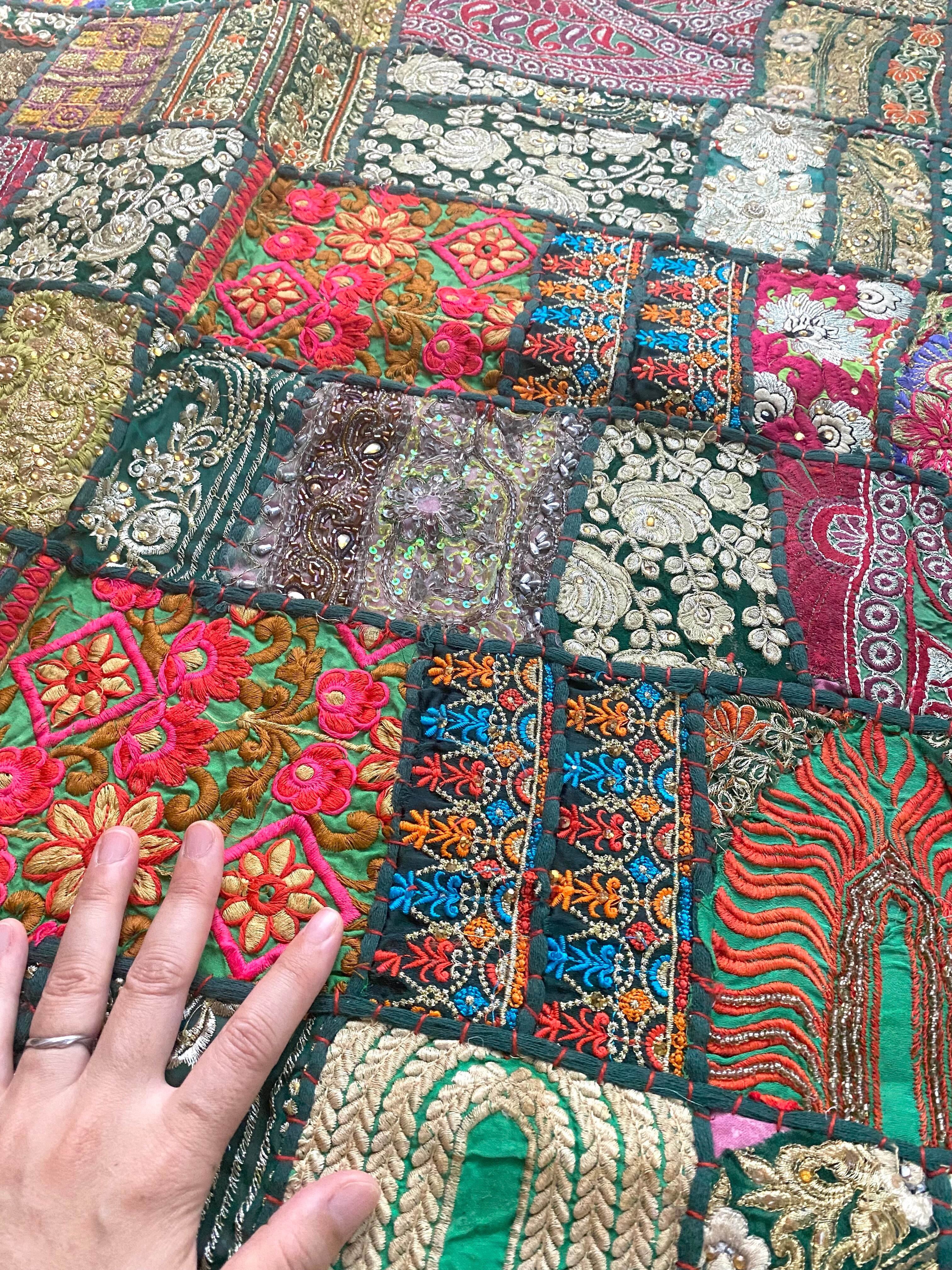 【ザリ刺繍タペストリーパッチワークラグ】