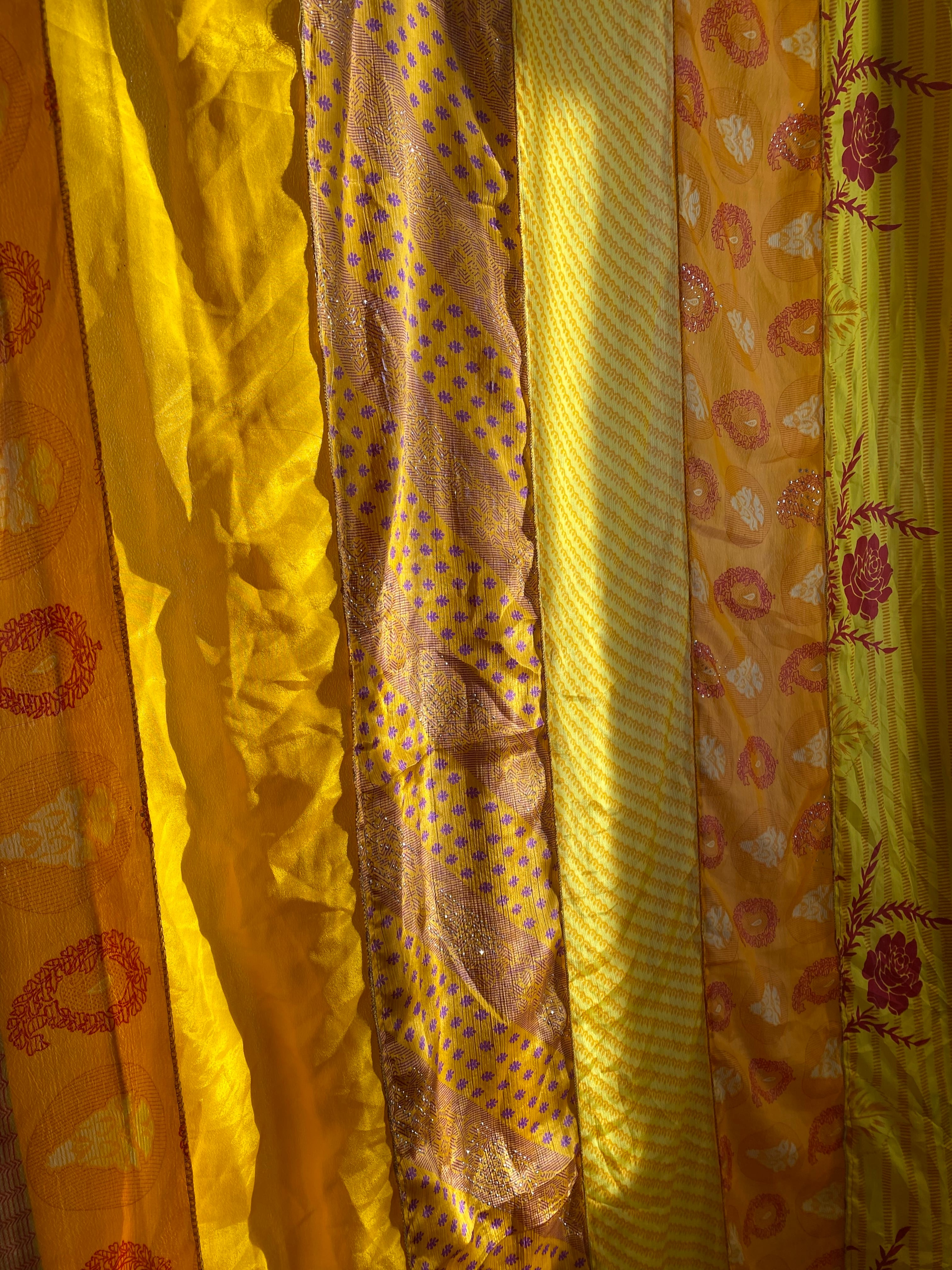 ヴィンテージサリーで出来たパッチワークシルクカーテン