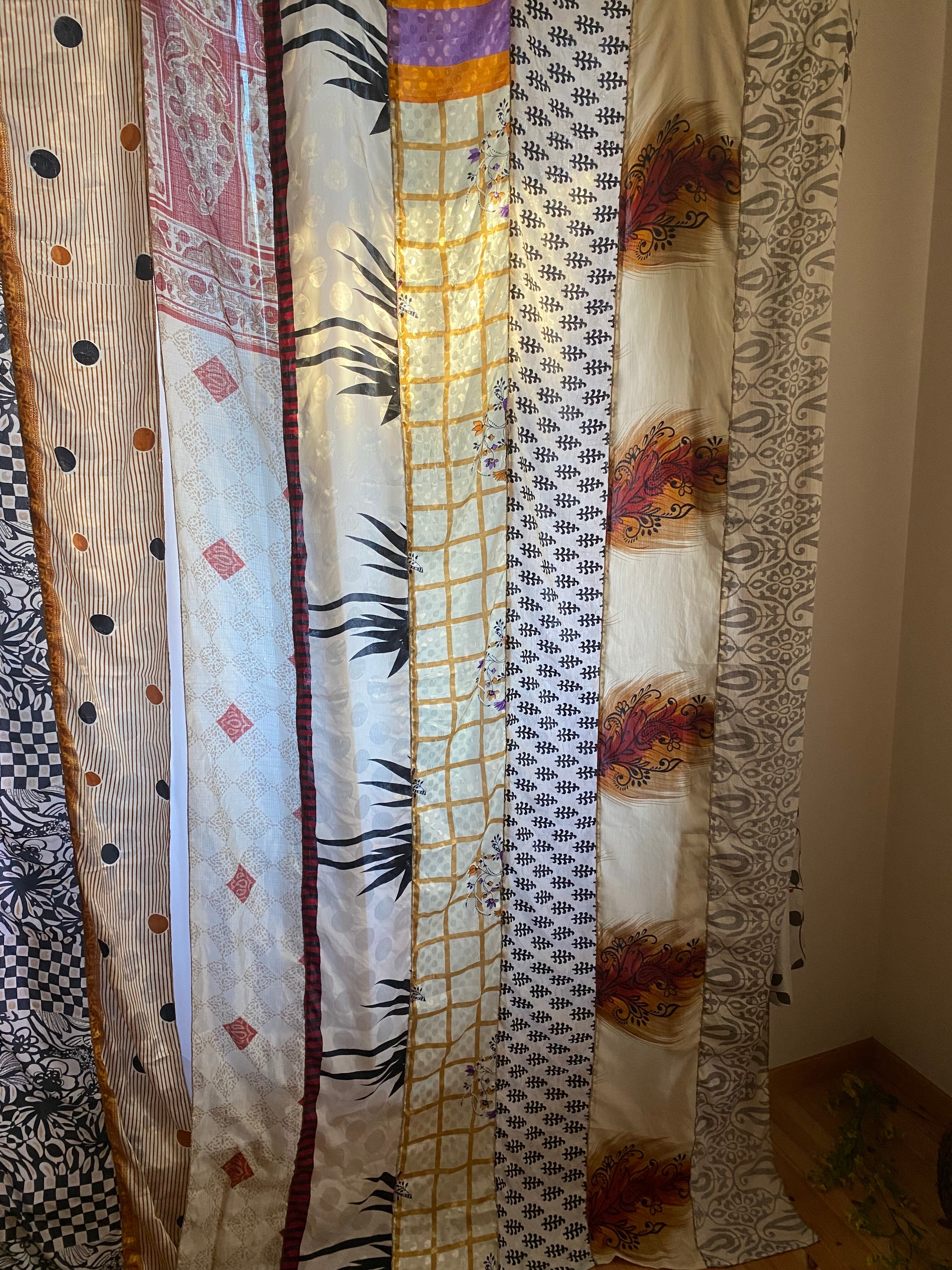 ヴィンテージサリーで出来たパッチワークシルクカーテン