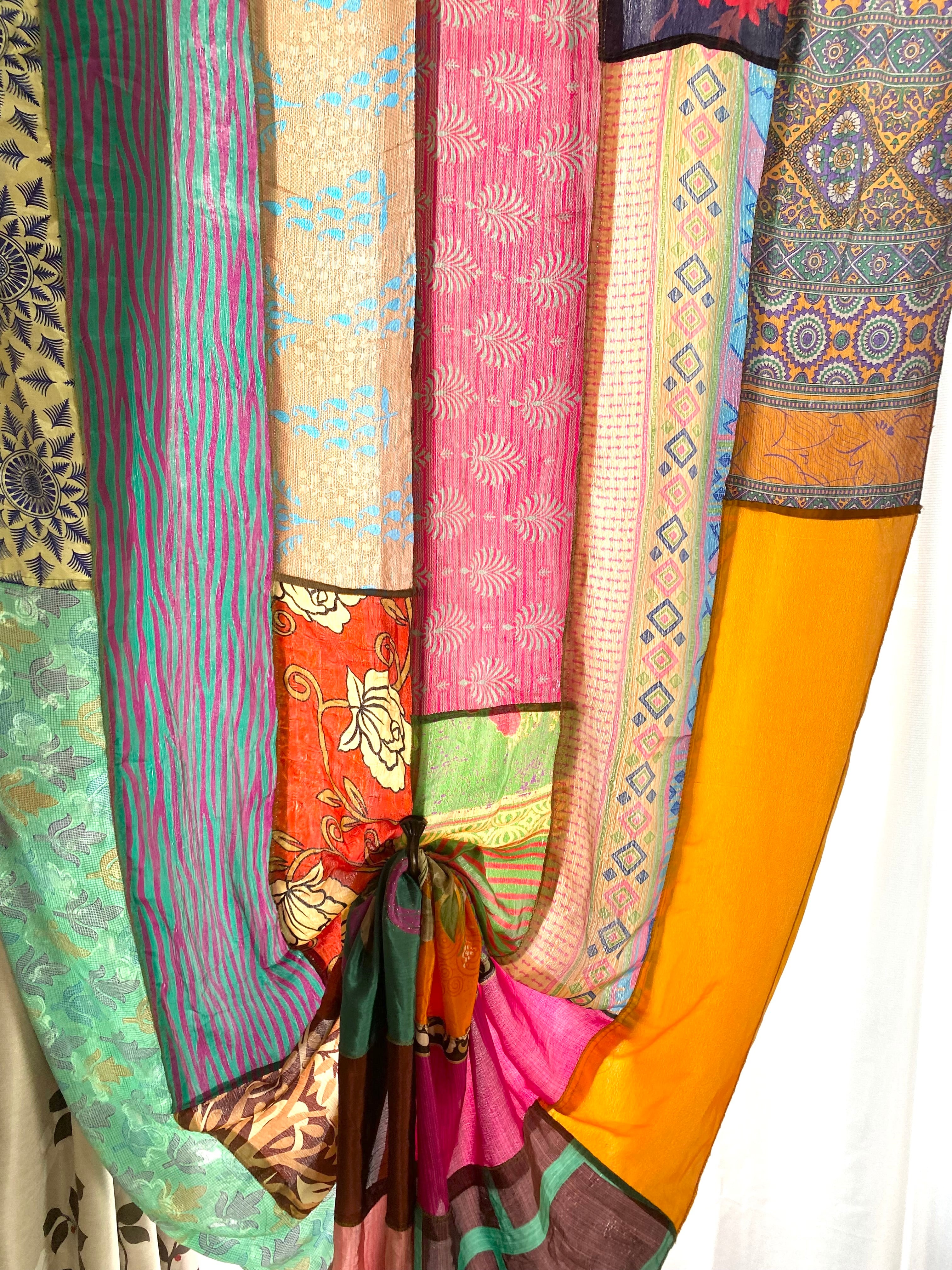 ヴィンテージサリーで出来たパッチワークシルクカーテン
