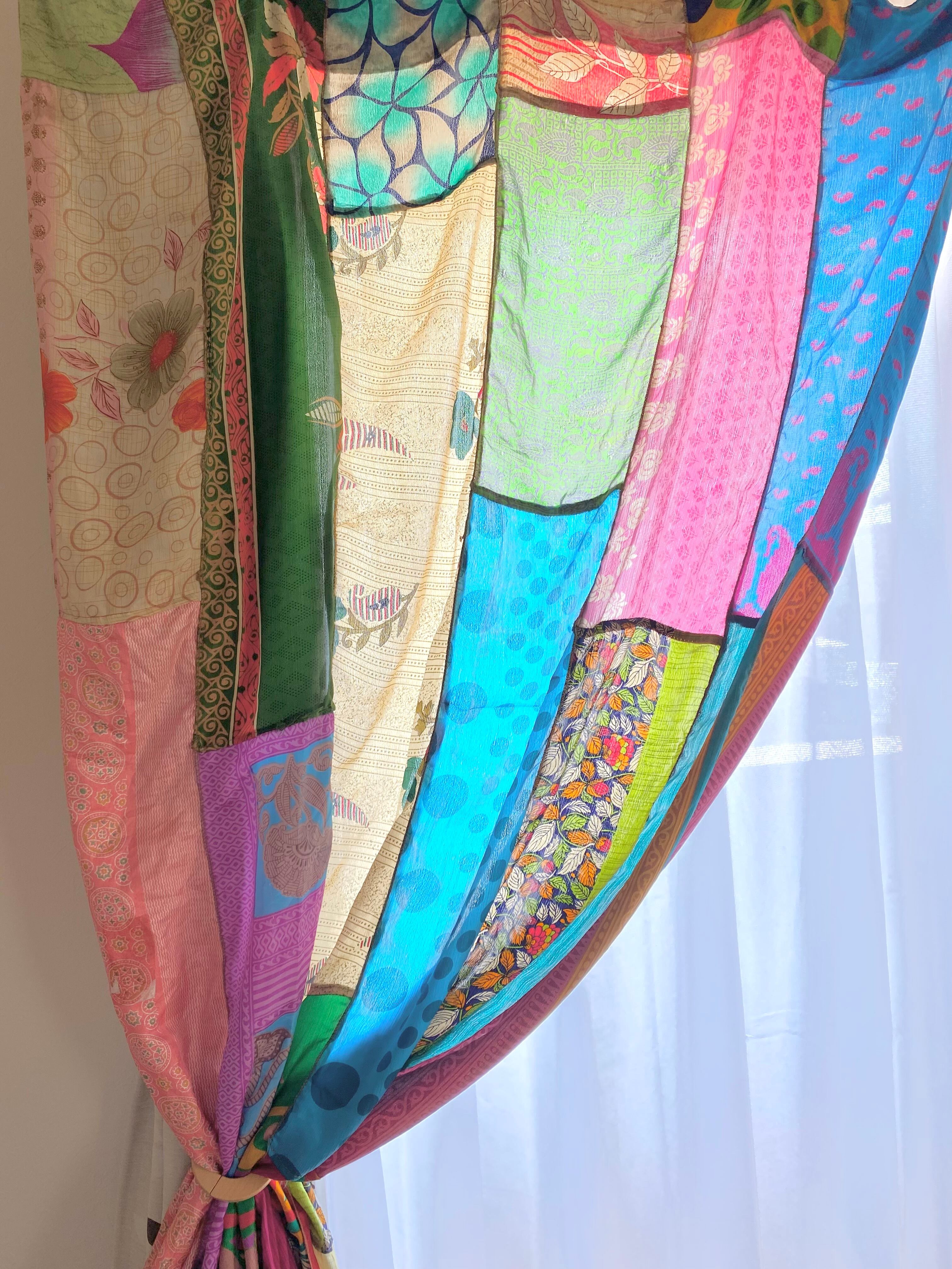ヴィンテージサリーで出来たパッチワークシルクカーテン