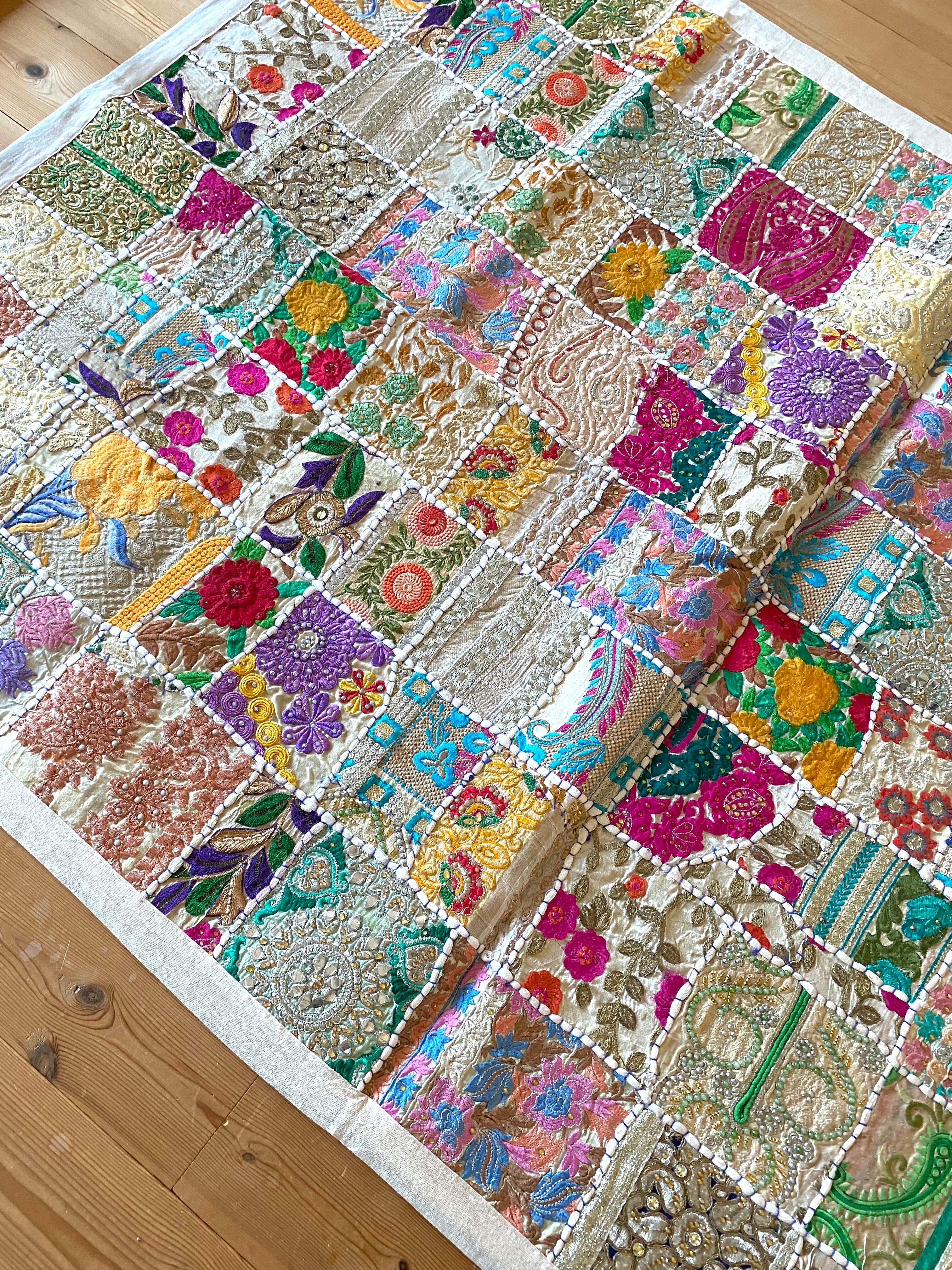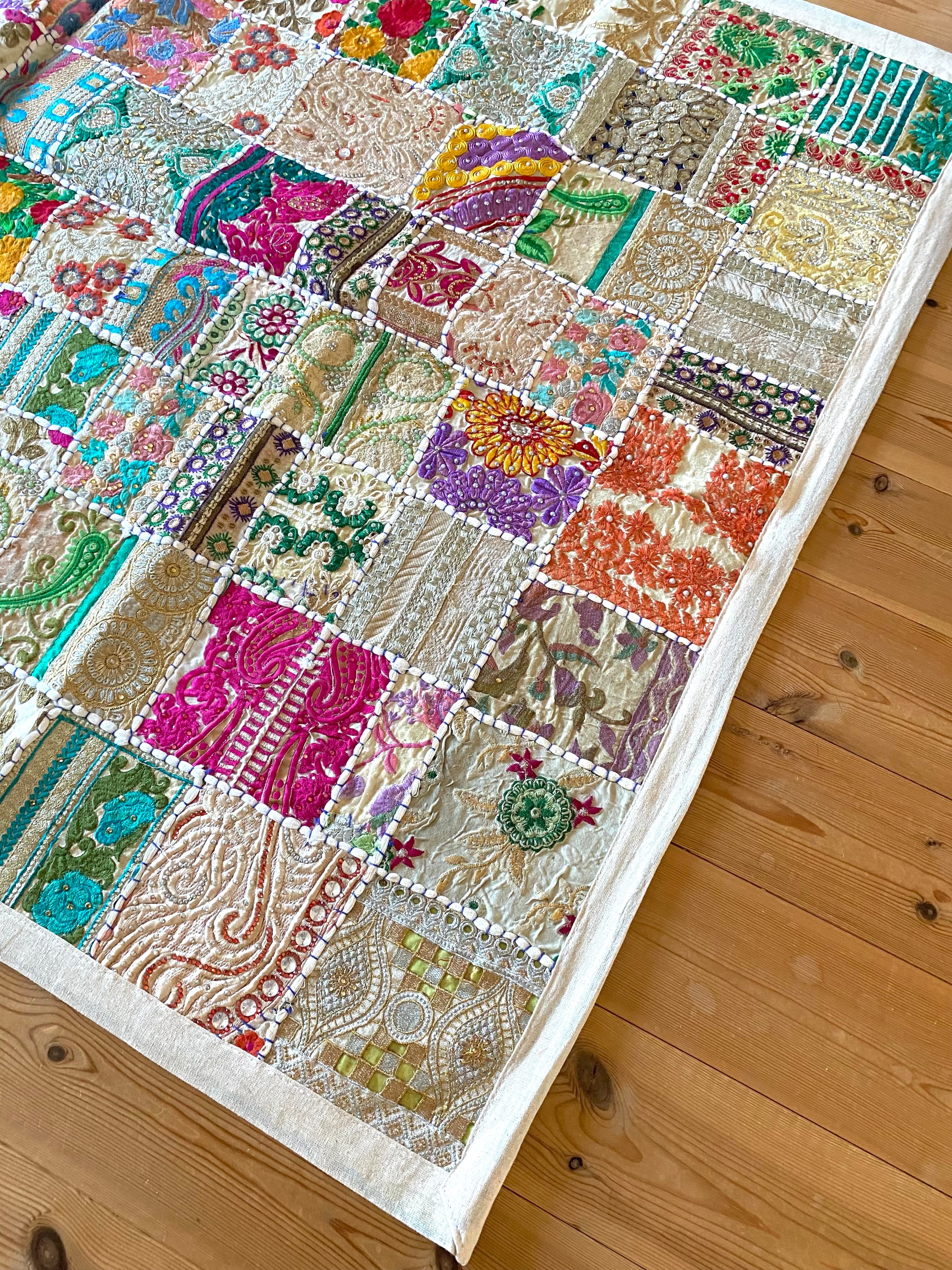 ホワイトさん/ザリ刺繍タペストリーラグ
