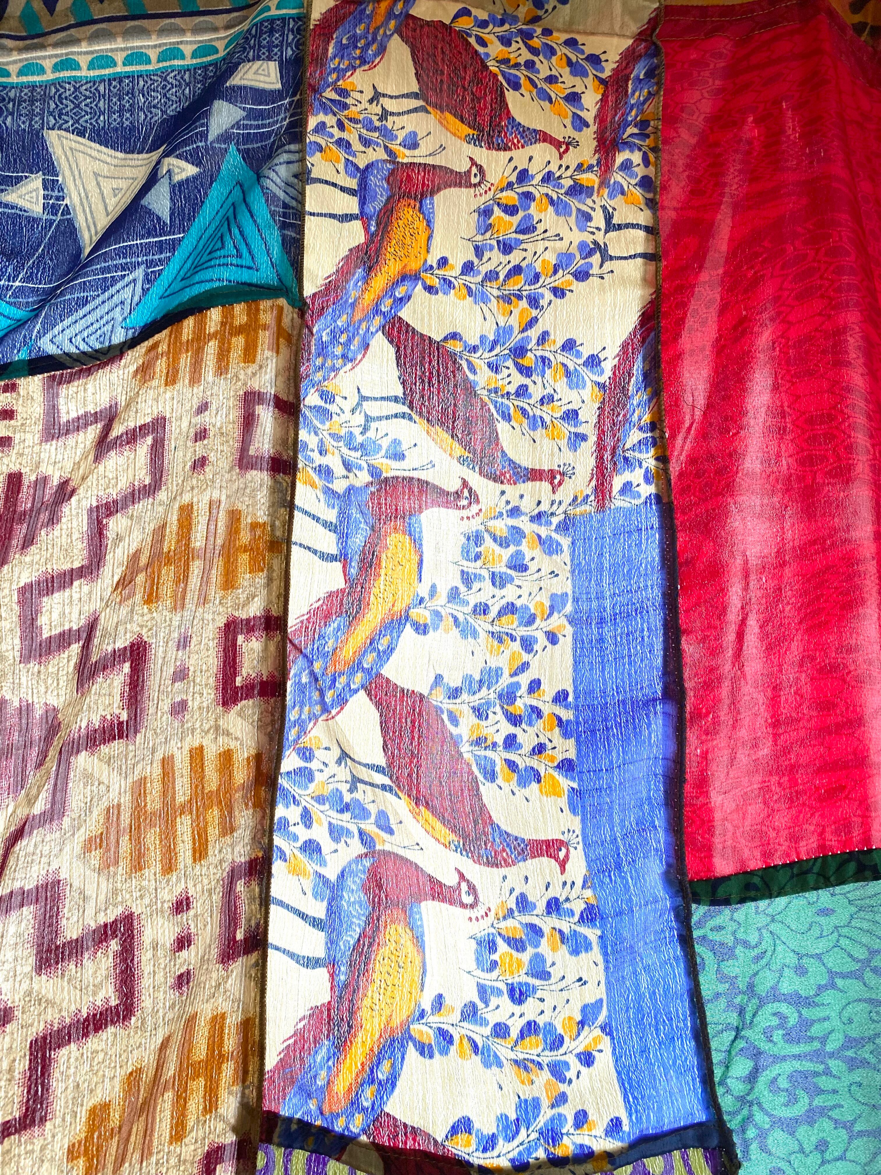 ヴィンテージサリーで出来たパッチワークシルクカーテン