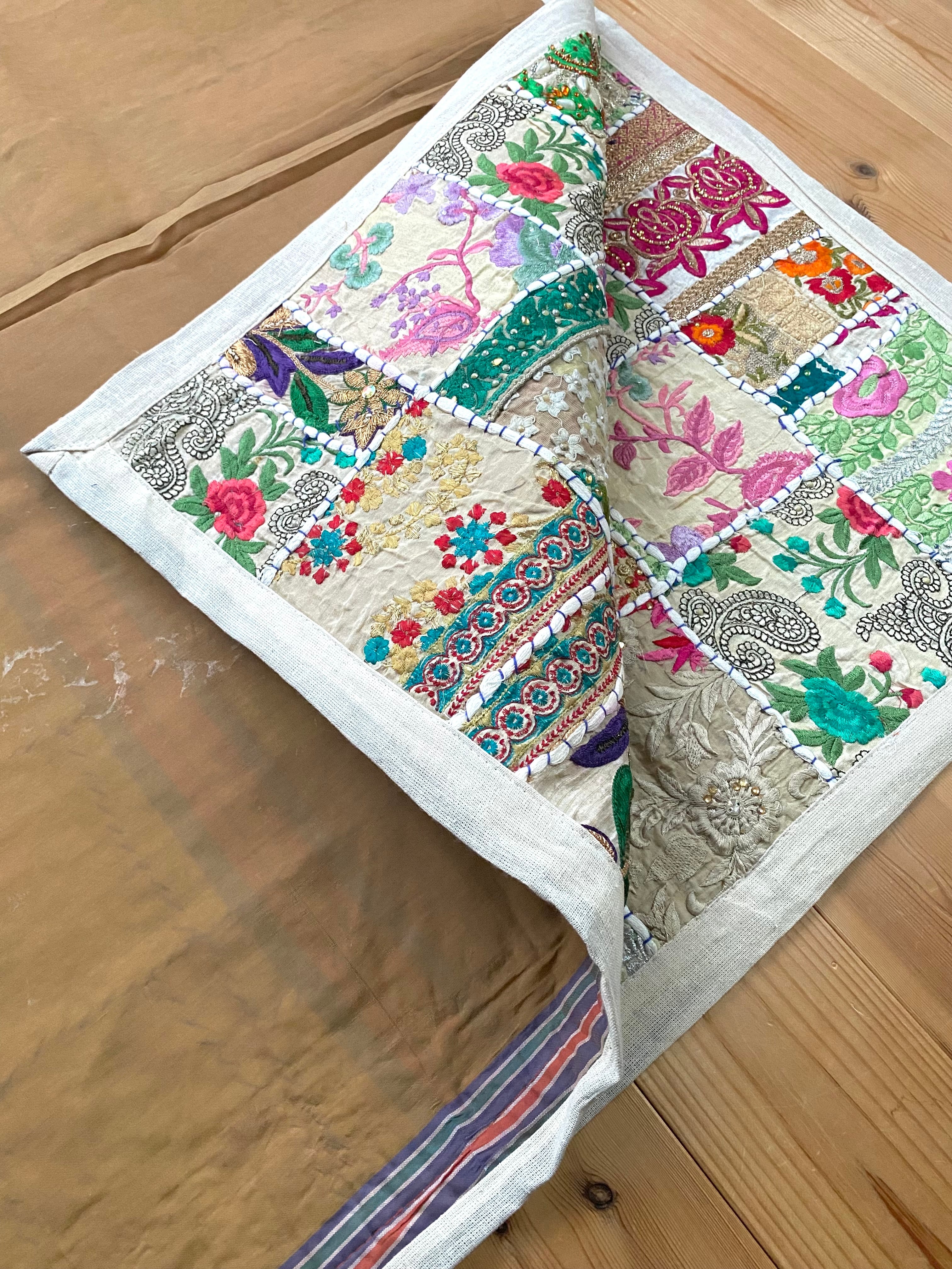 モカホワイトさん/ザリ刺繍タペストリーラグ