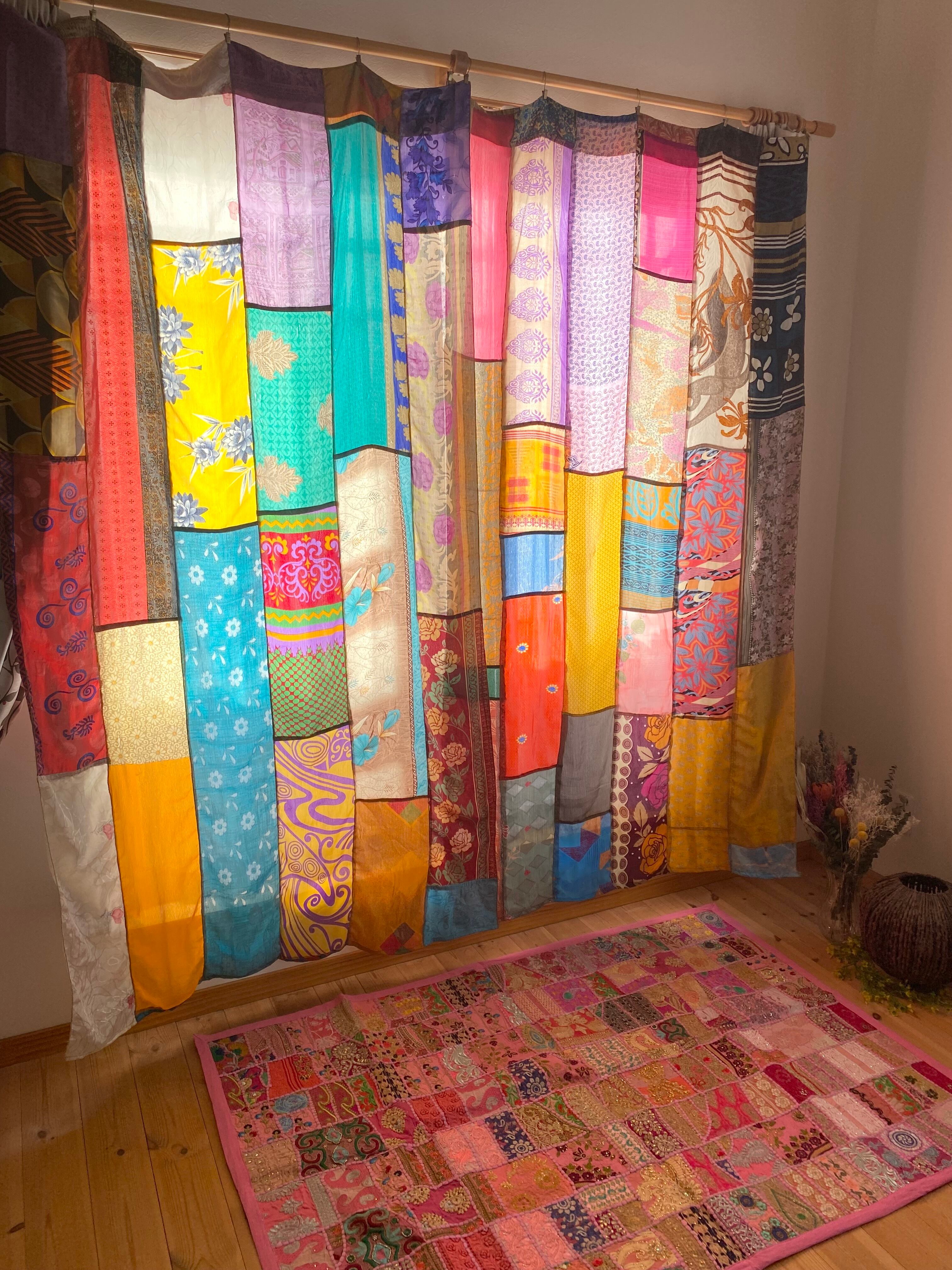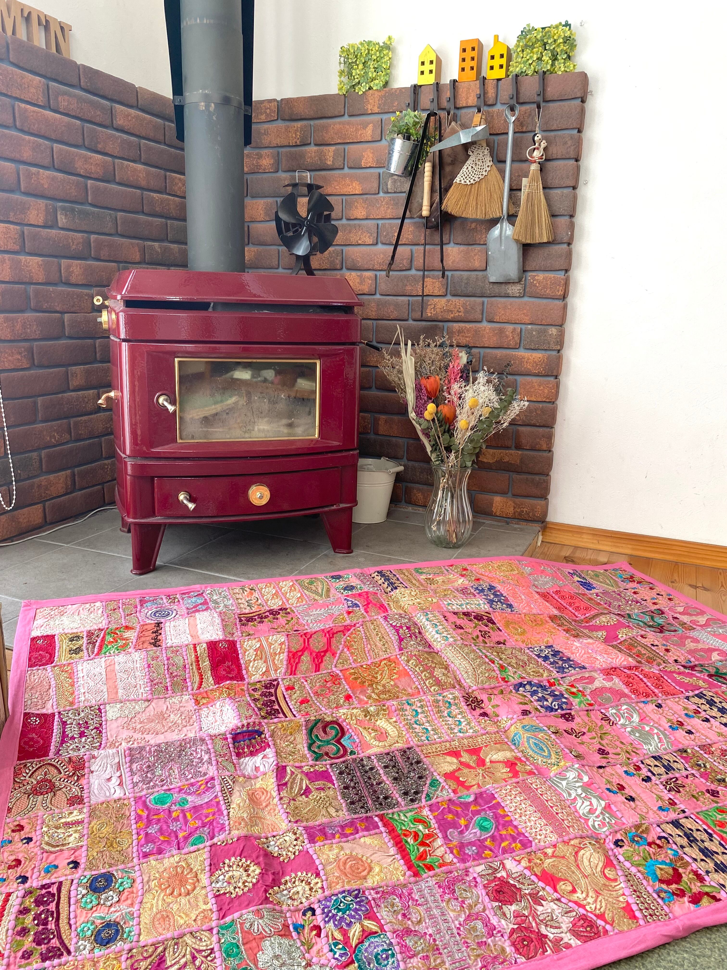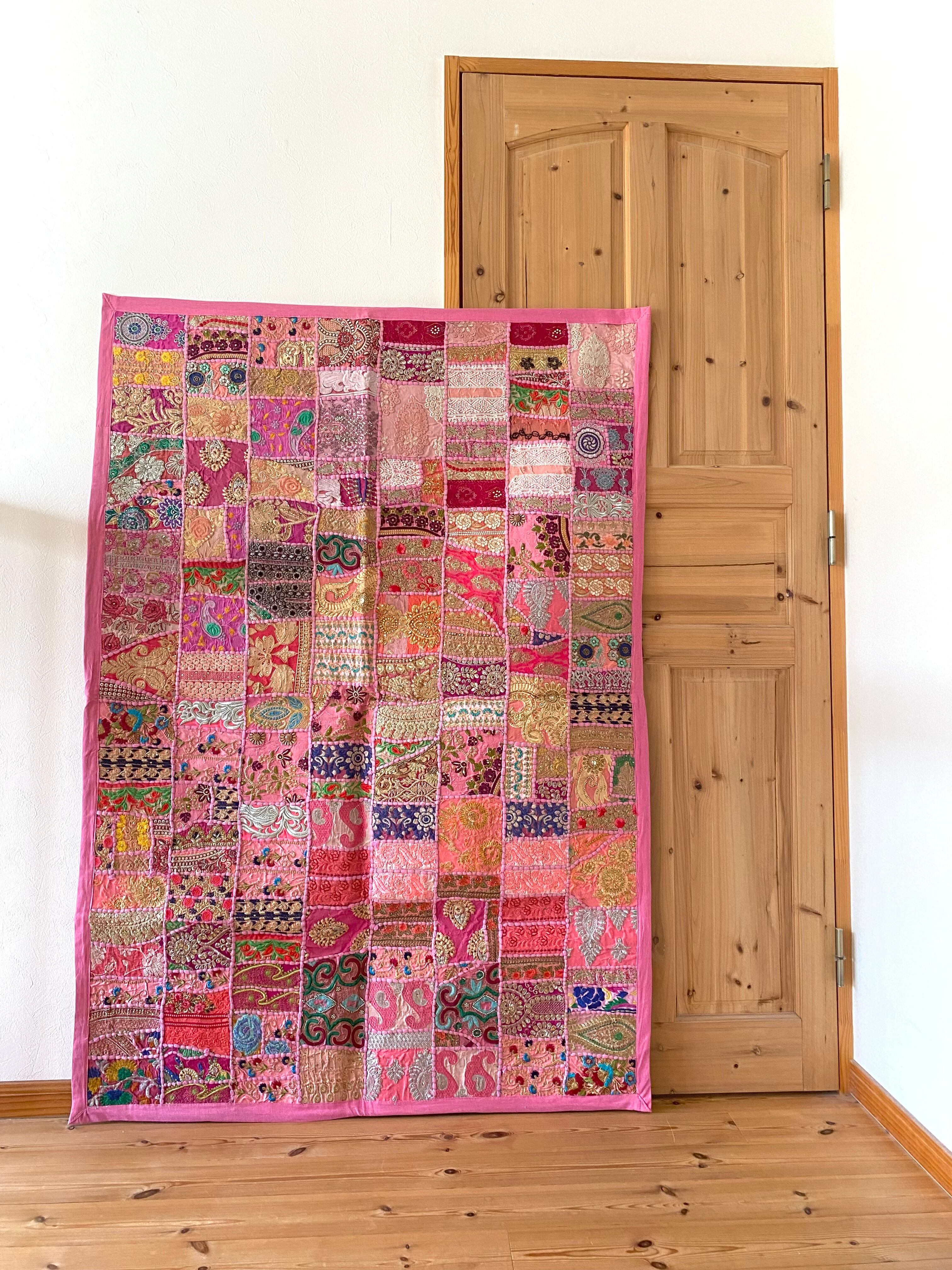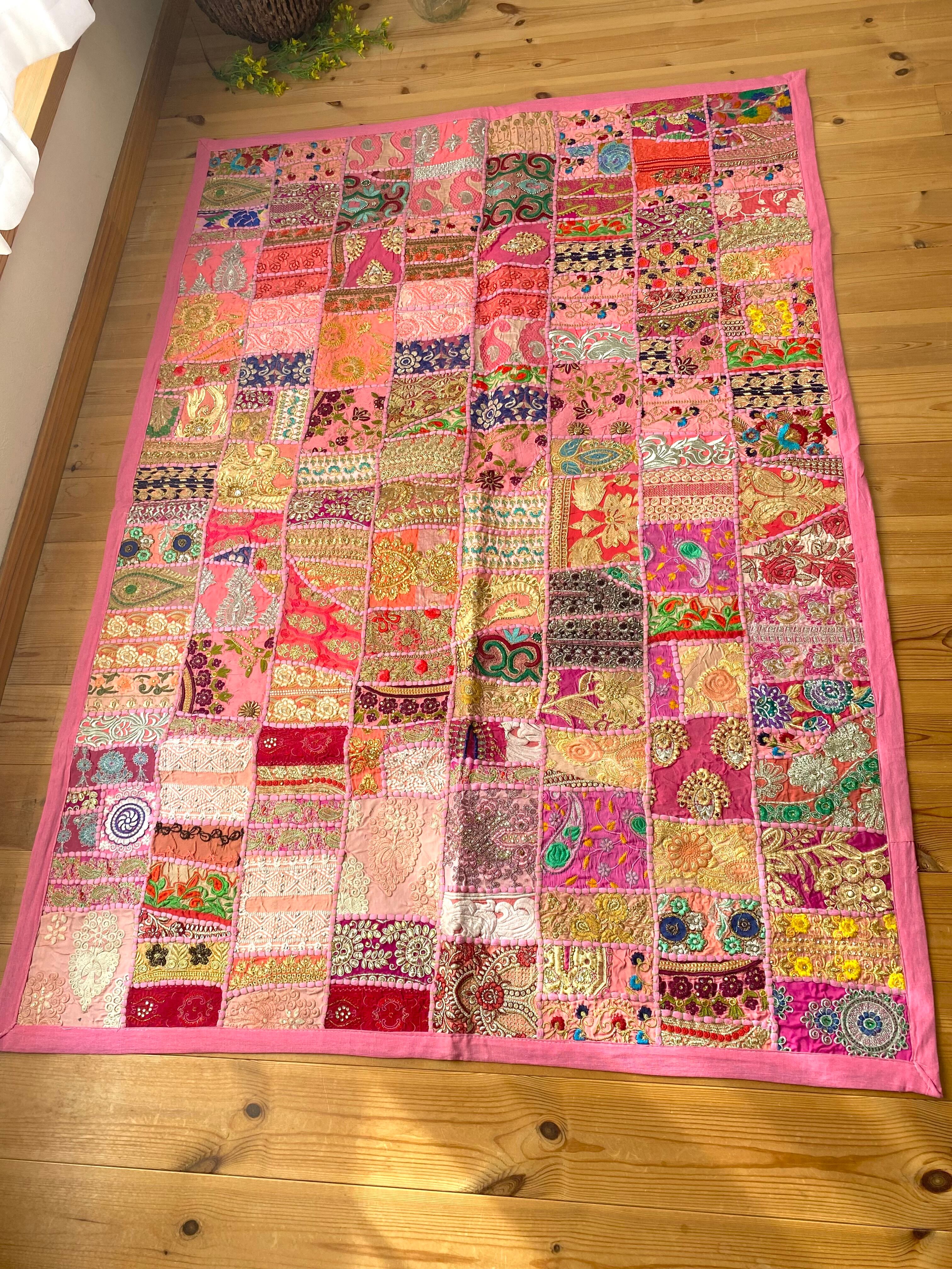 ピンクトルマリン・柄ピンクさん/ザリ刺繍タペストリーラグ