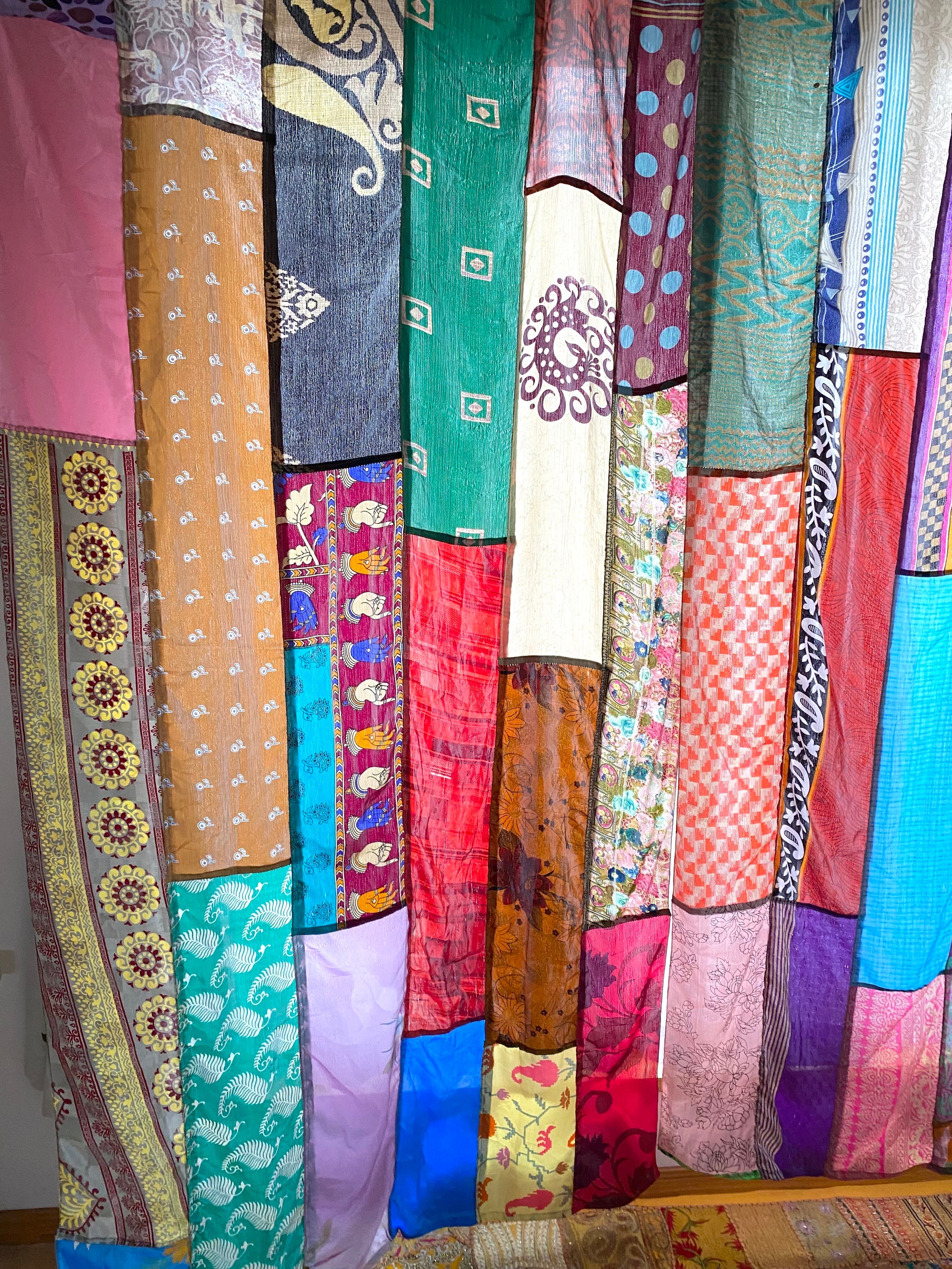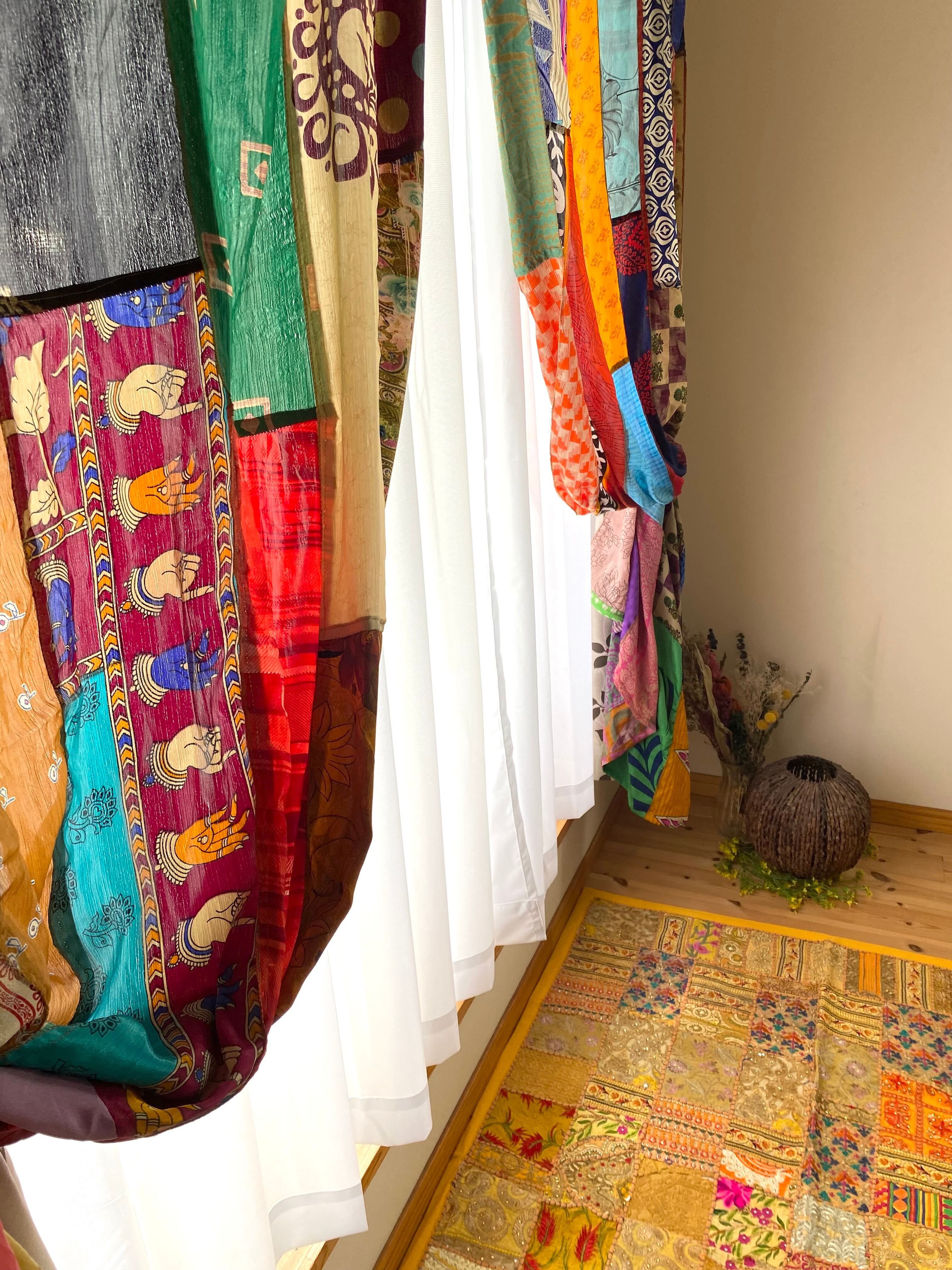 ヴィンテージサリーで出来たパッチワークシルクカーテン