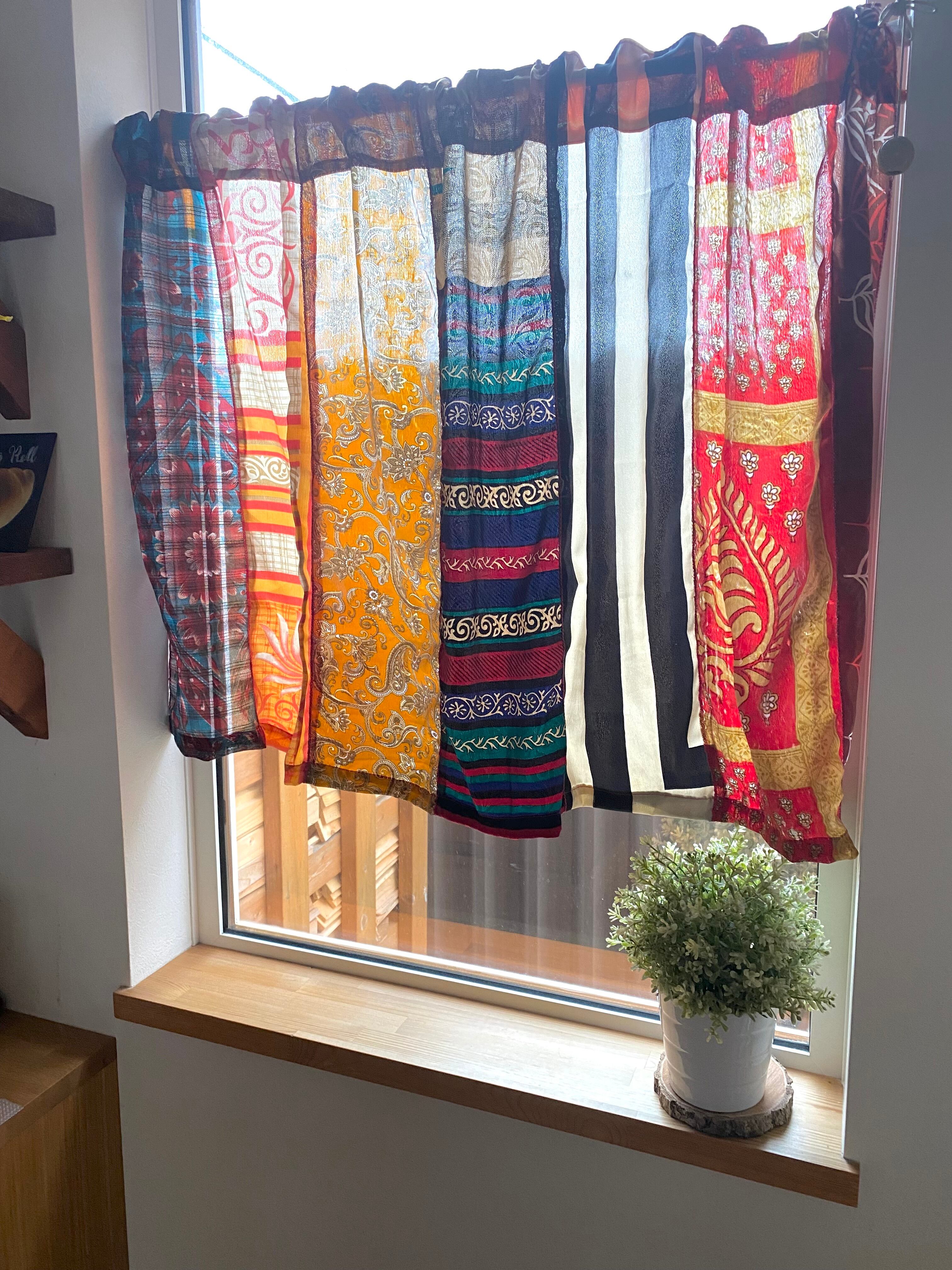 ヴィンテージサリーで出来たパッチワークシルクカーテン