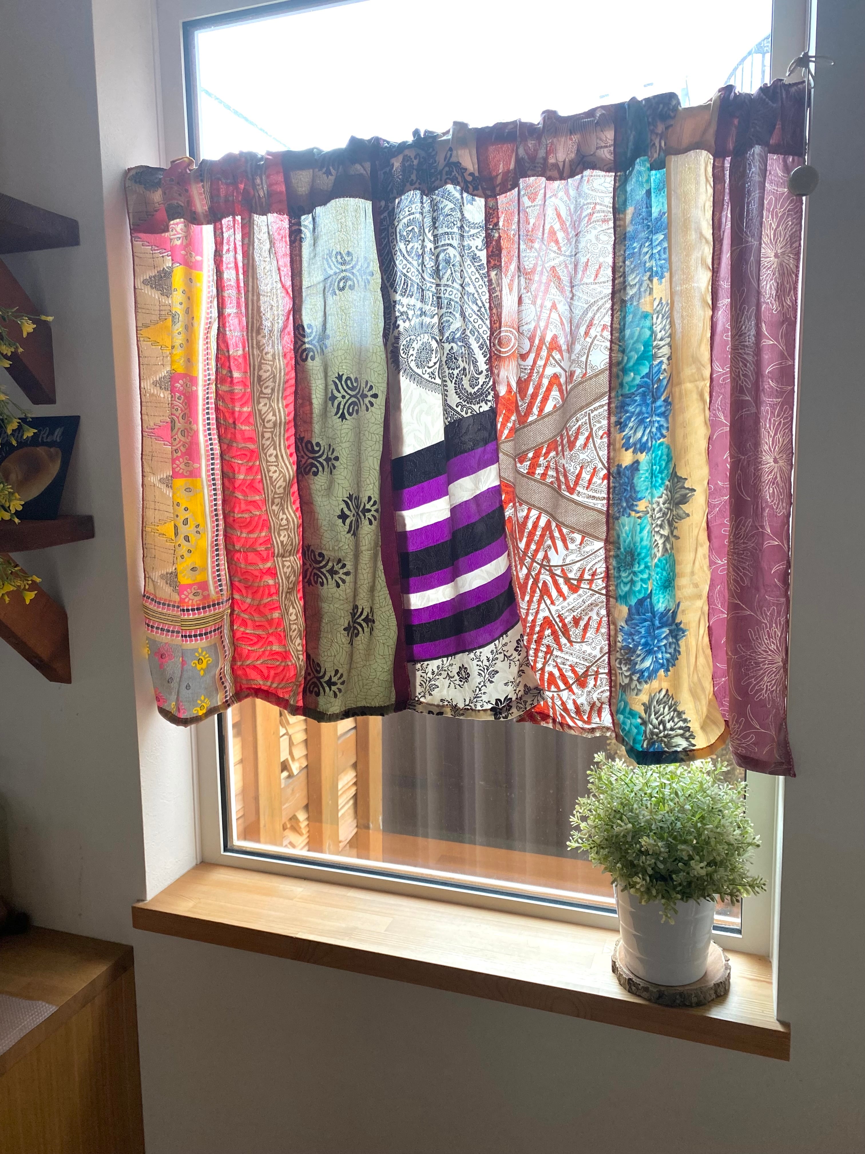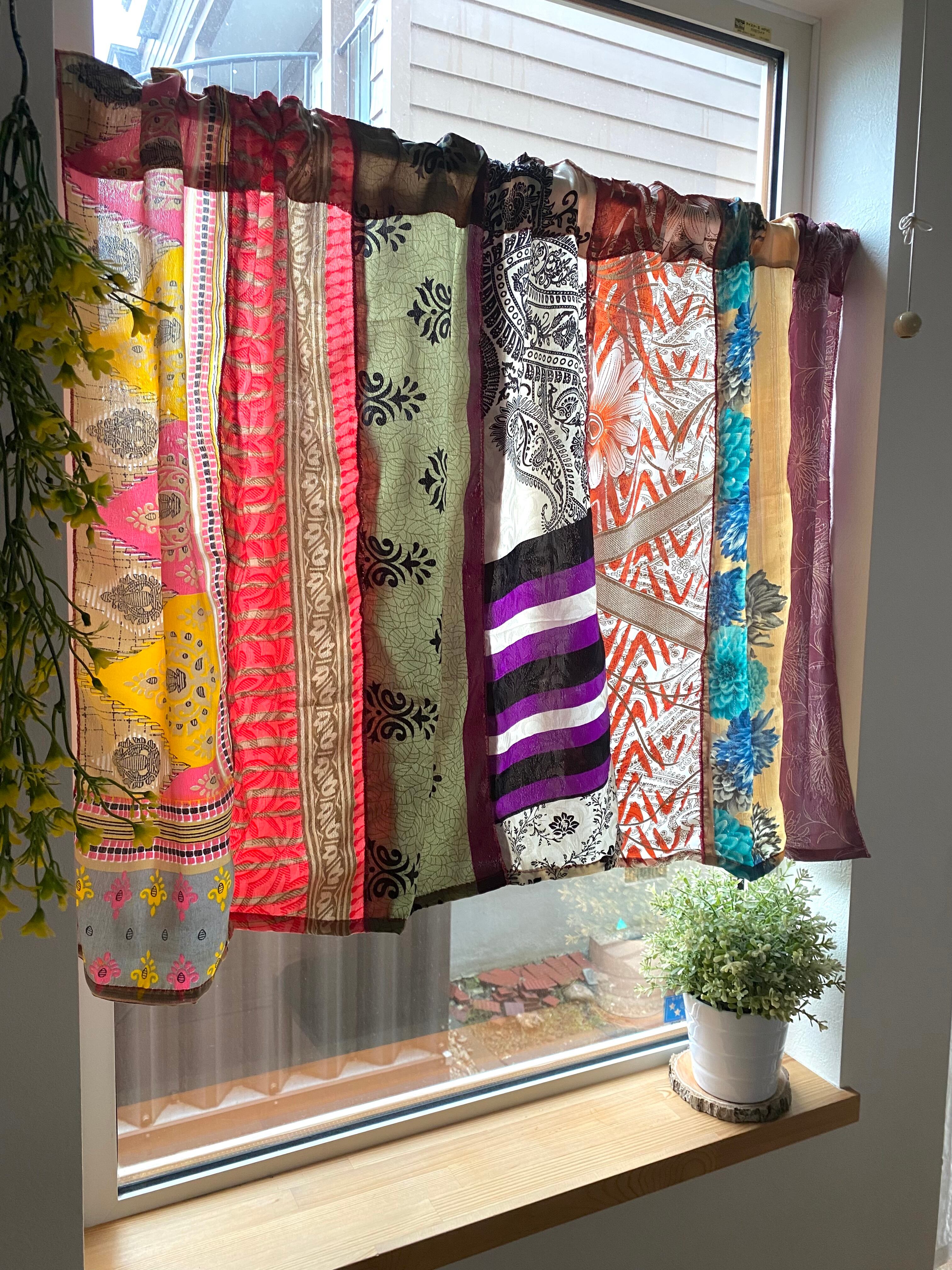 ヴィンテージサリーで出来たパッチワークシルクカーテン