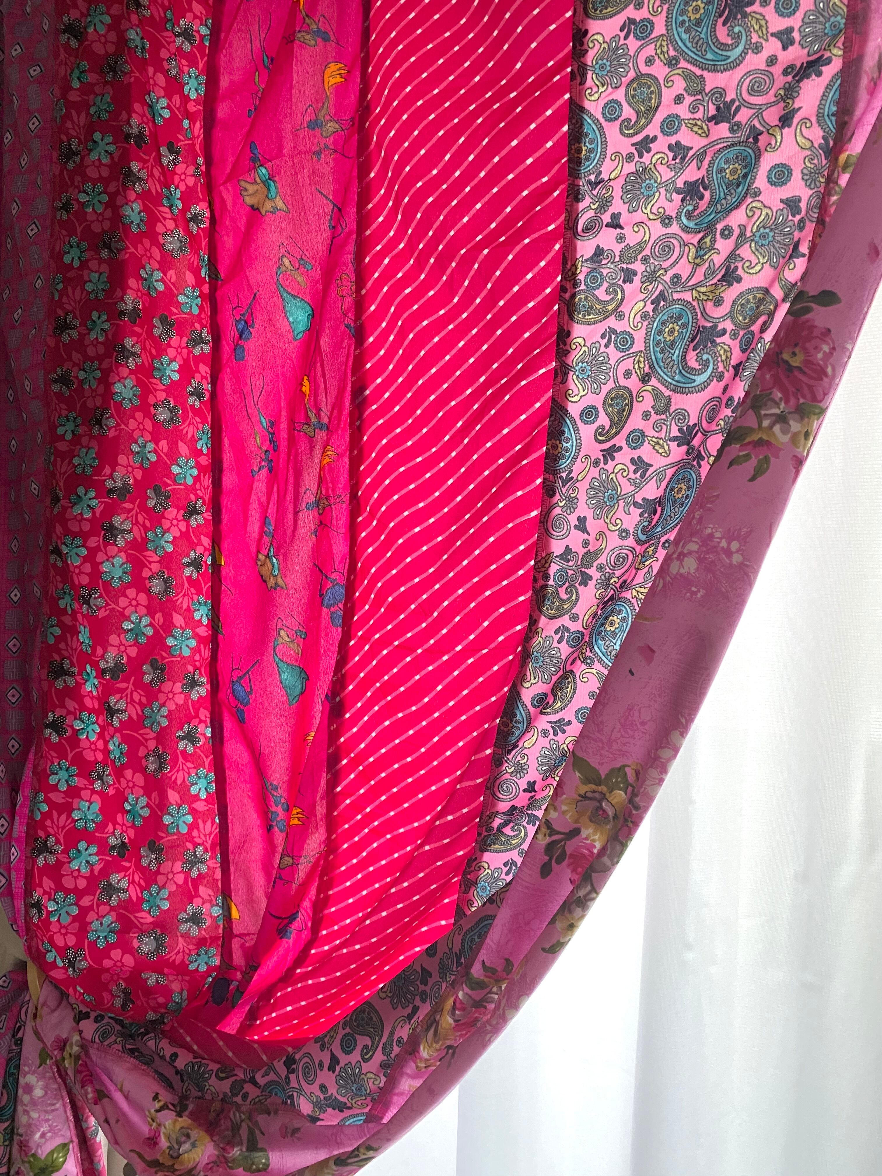 ヴィンテージサリーで出来たパッチワークシルクカーテン