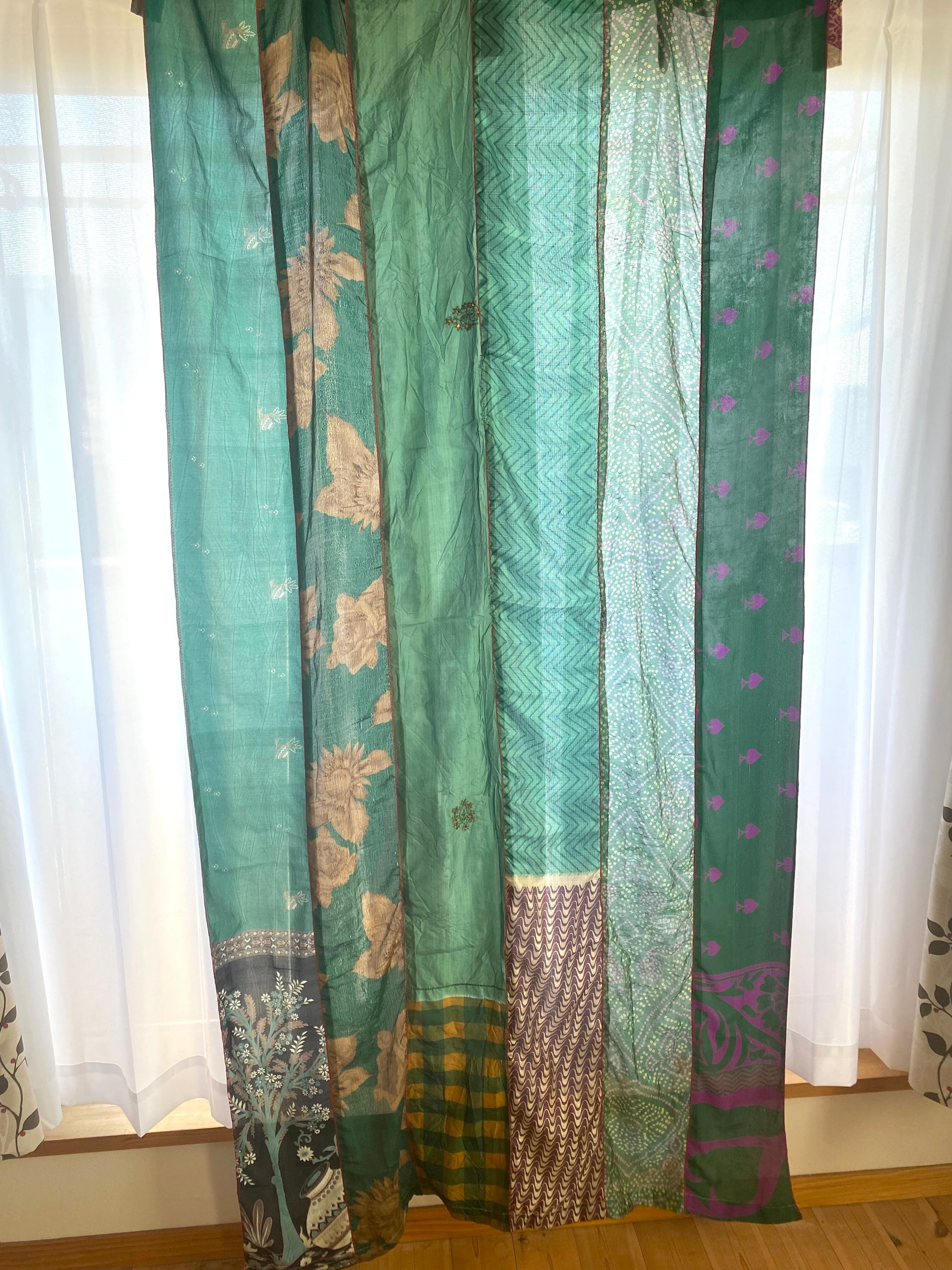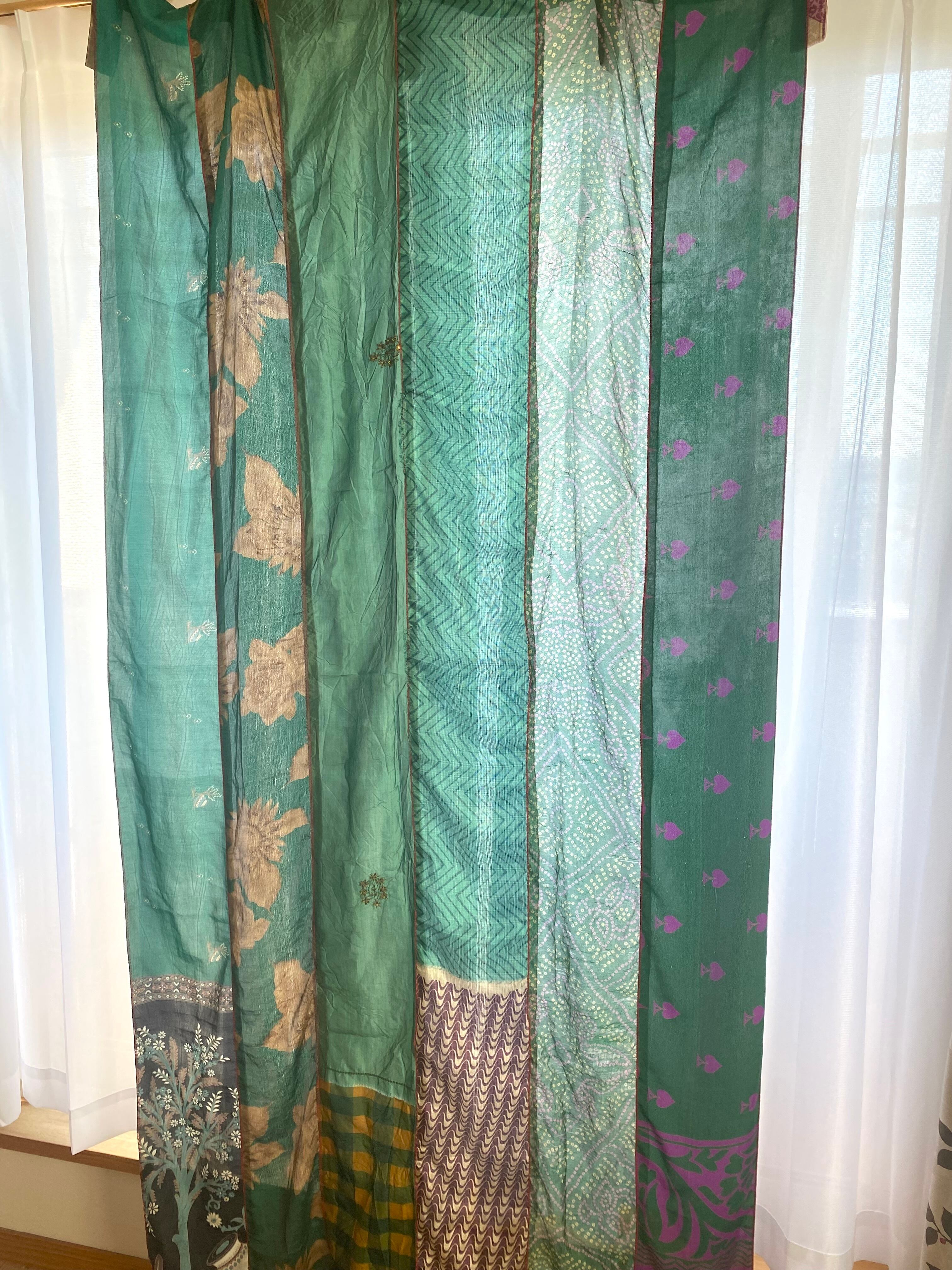 ヴィンテージサリーで出来たパッチワークシルクカーテン