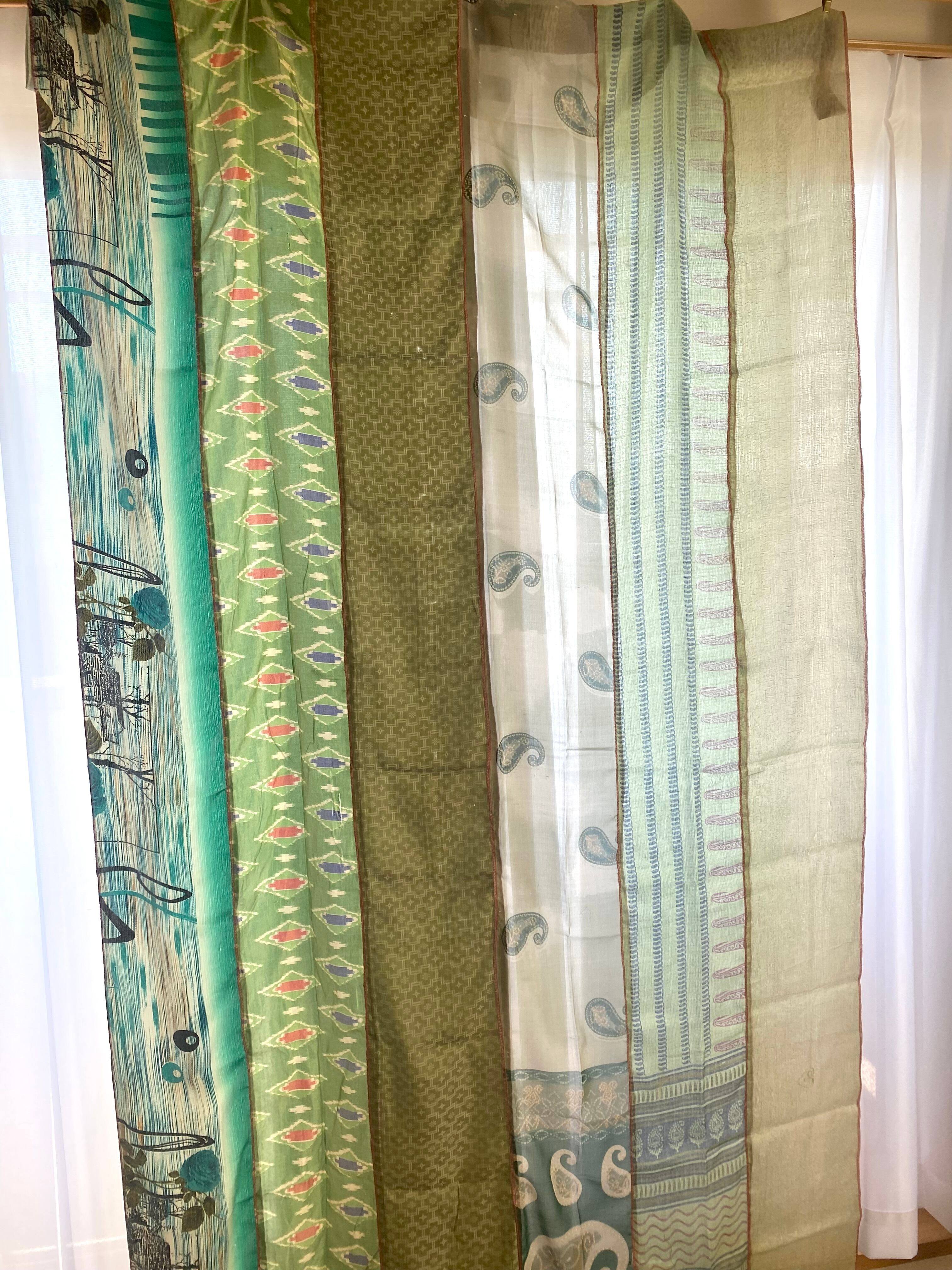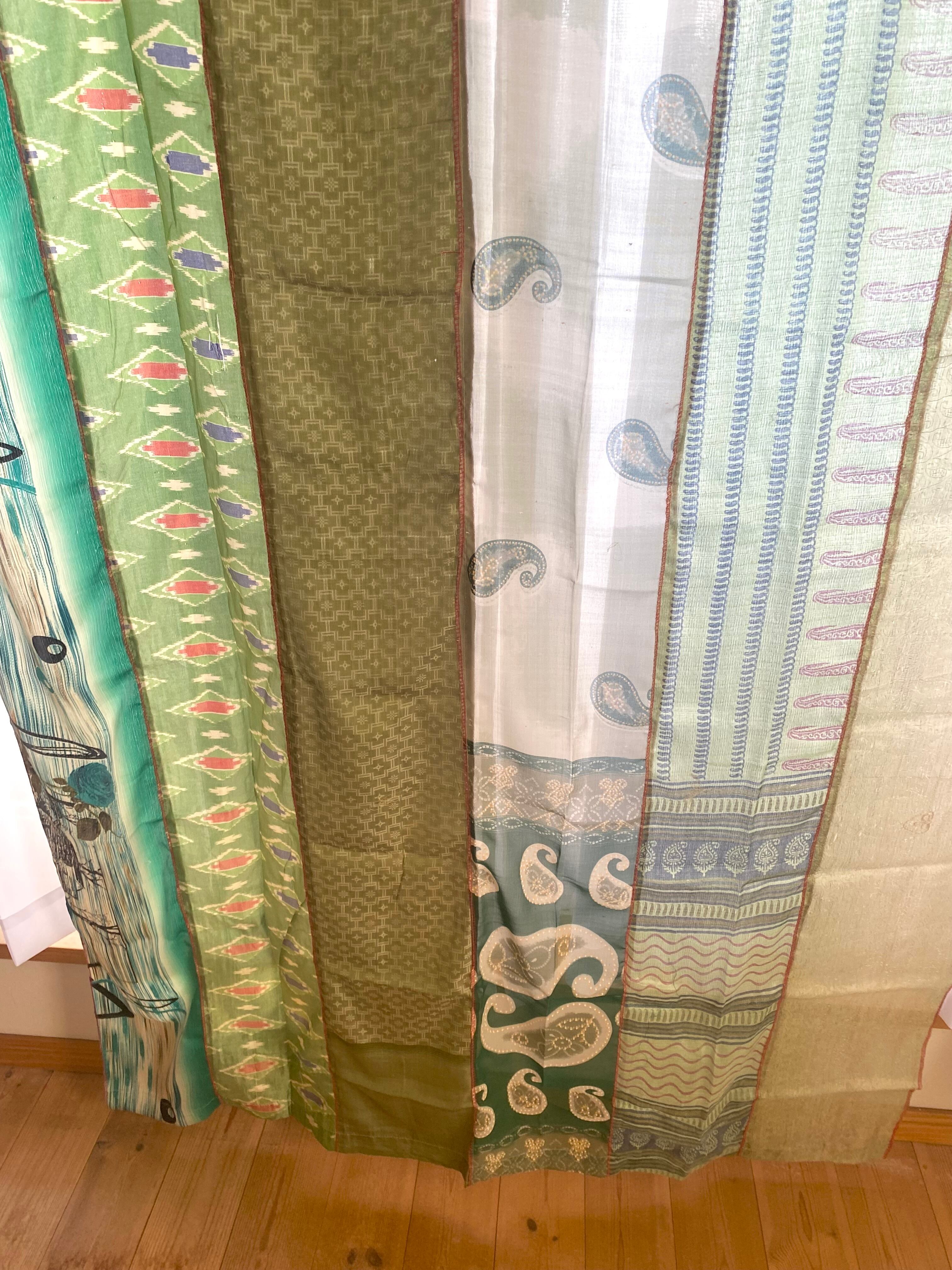 ヴィンテージサリーで出来たパッチワークシルクカーテン