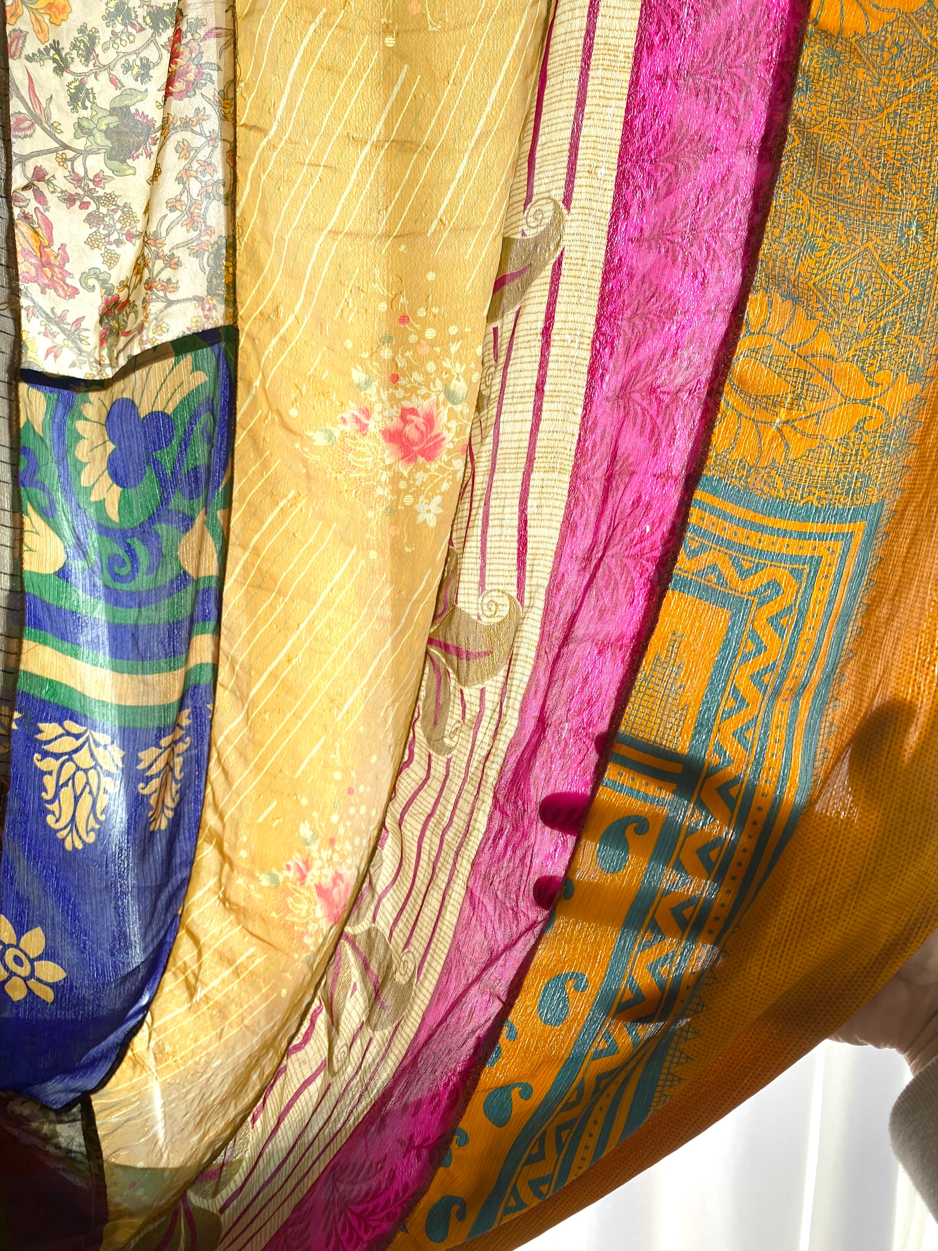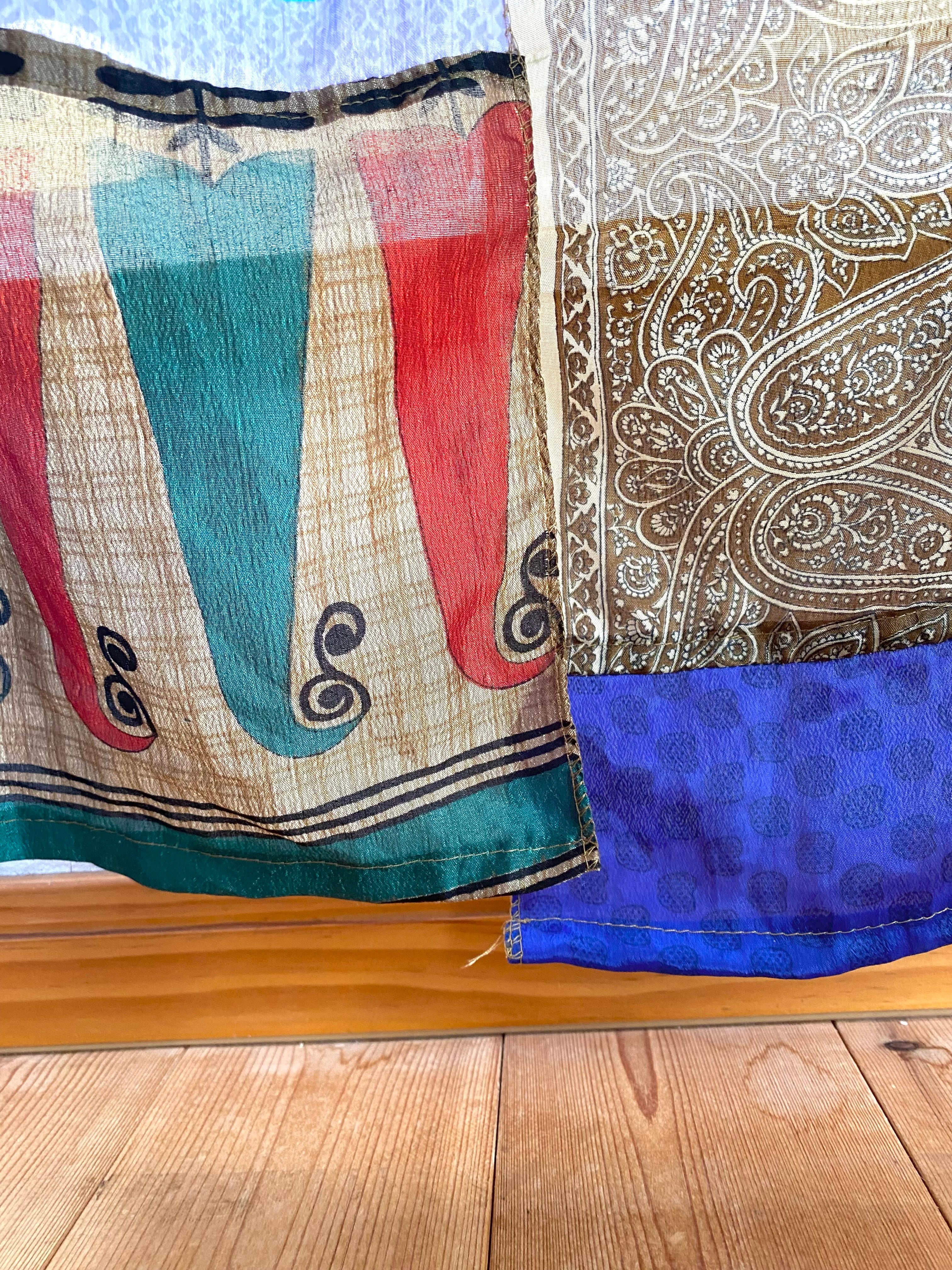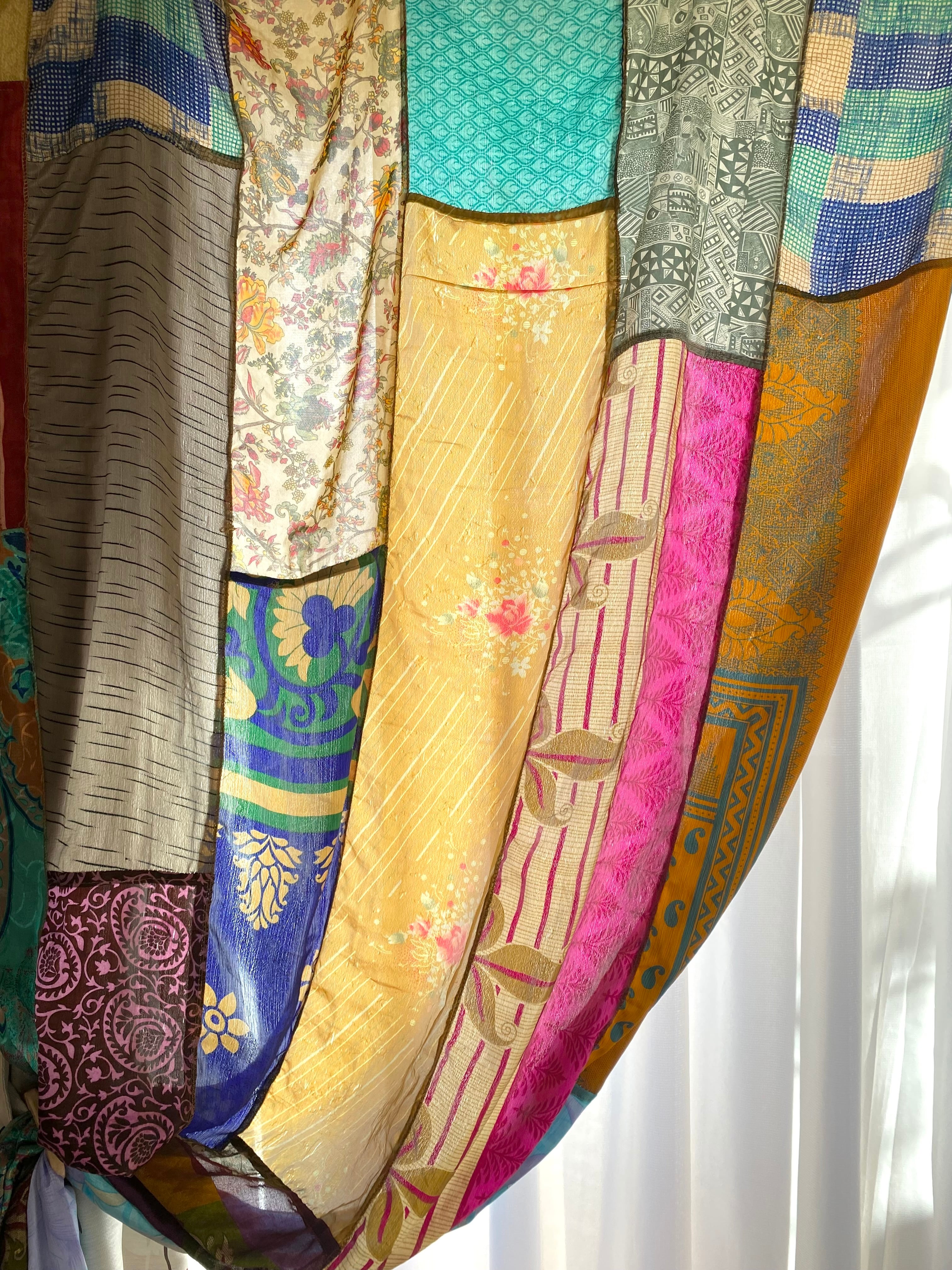 ヴィンテージサリーで出来たパッチワークシルクカーテン
