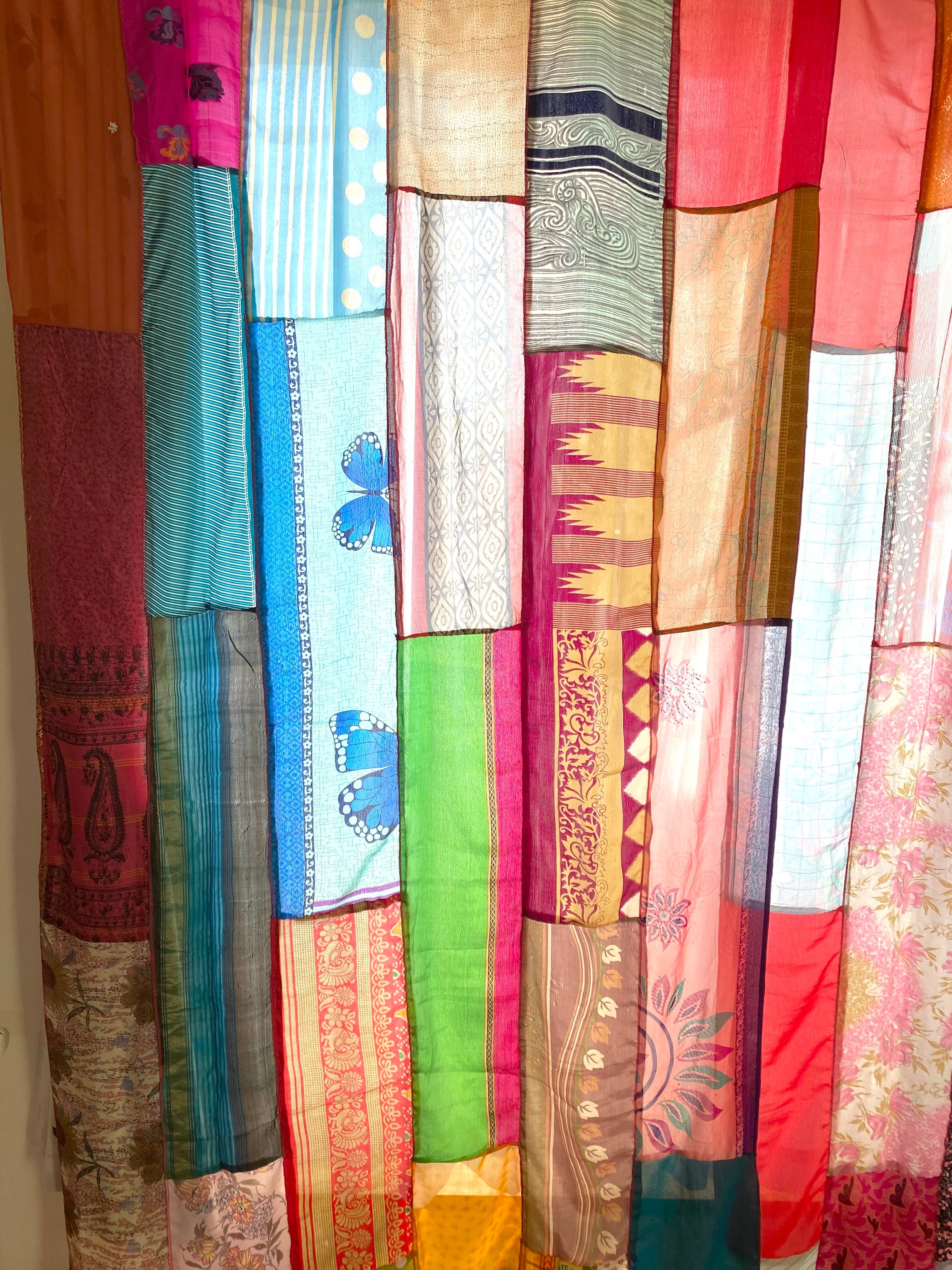 ヴィンテージサリーで出来たパッチワークシルクカーテン