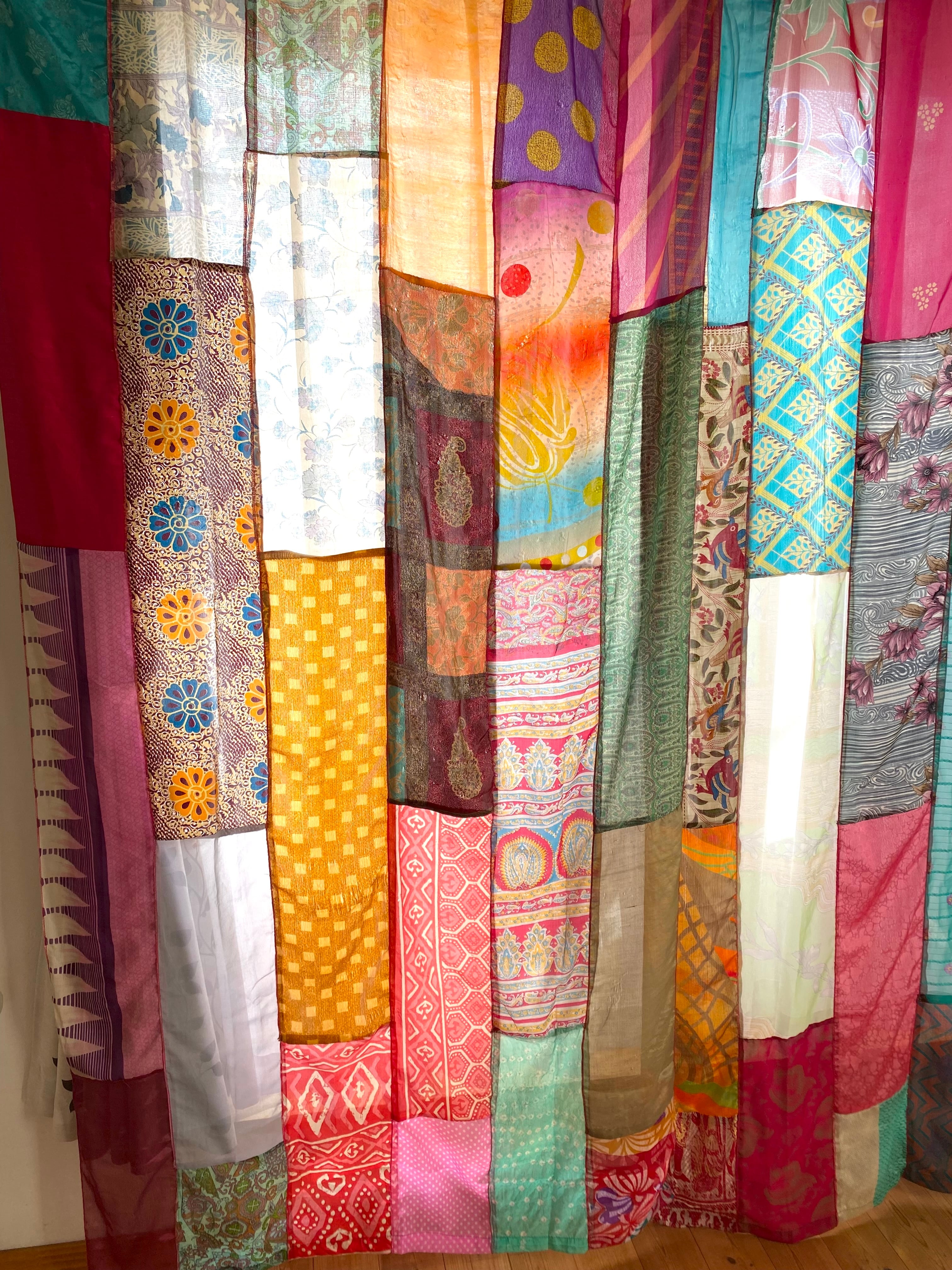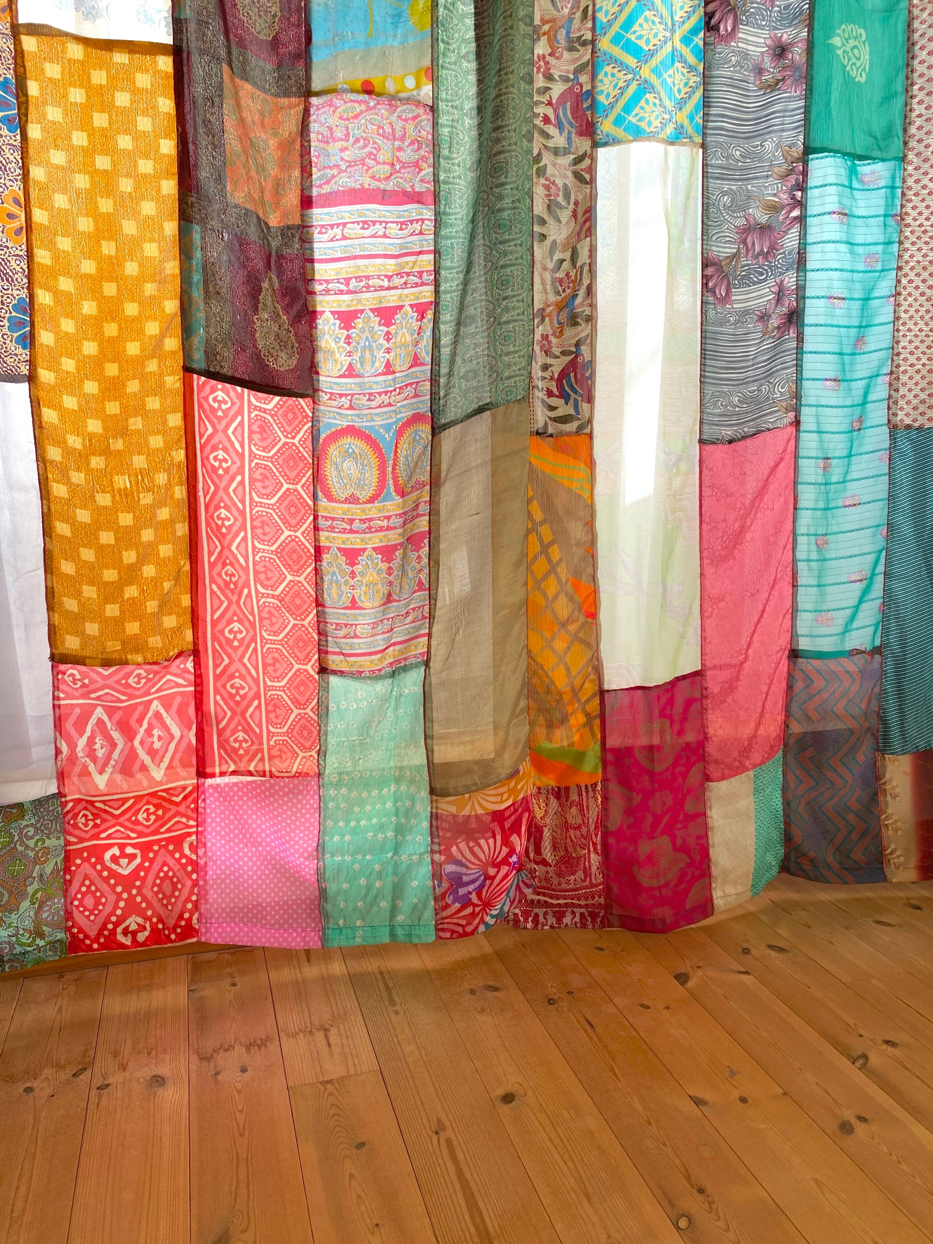 ヴィンテージサリーで出来たパッチワークシルクカーテン