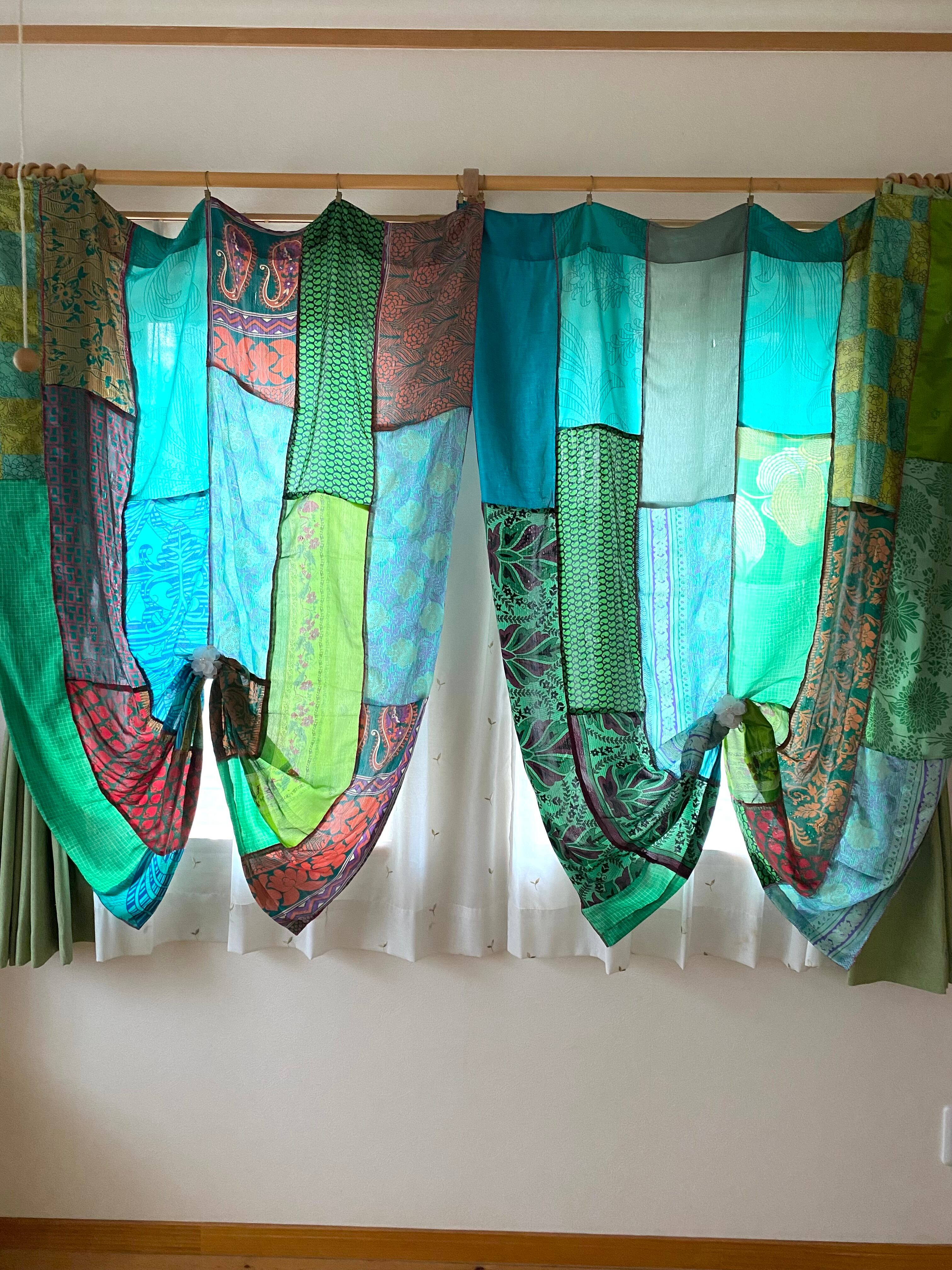 ※カーテンとしては新品未使用ですが、布はヴィンテージサリーを使っております。