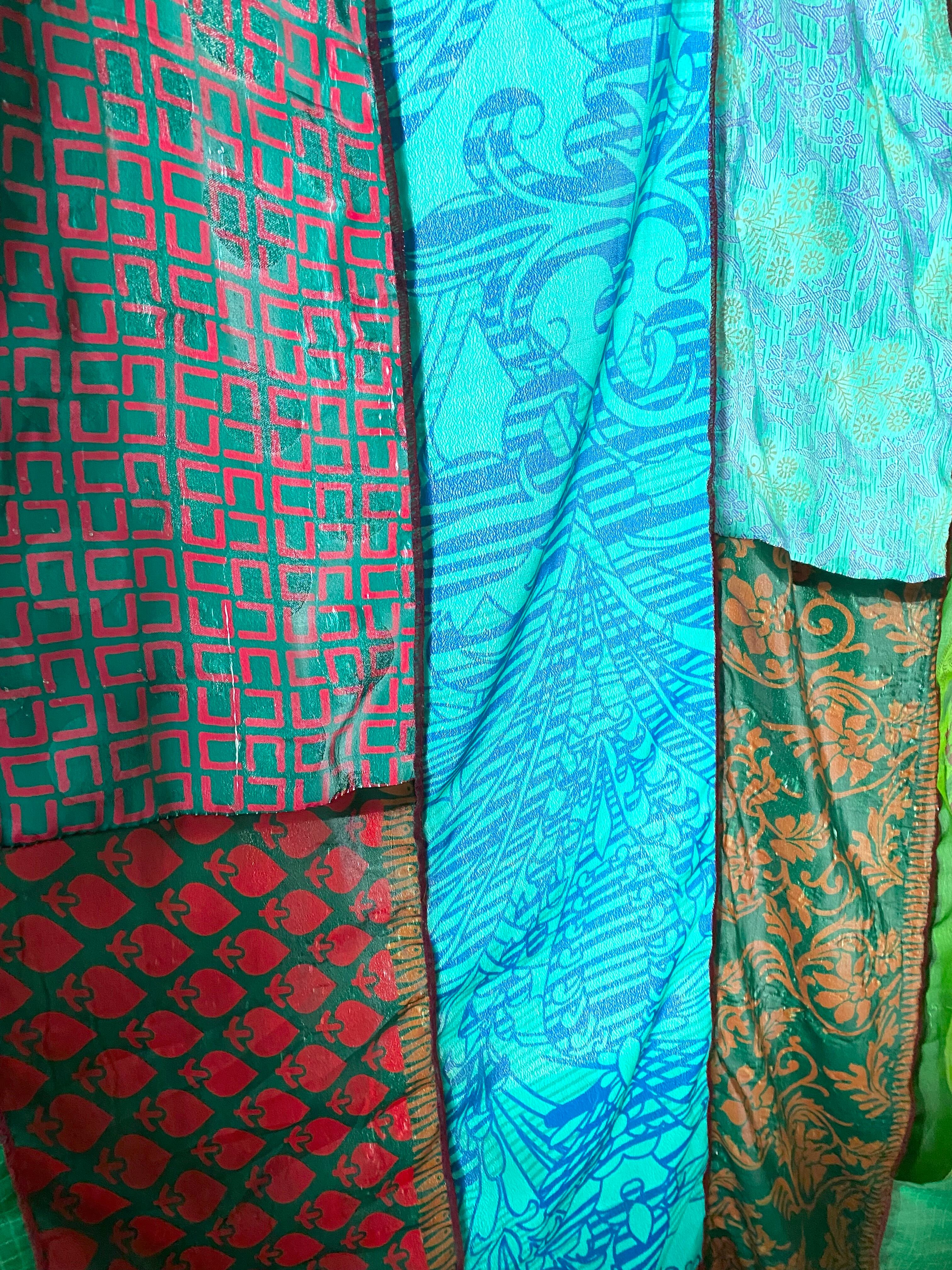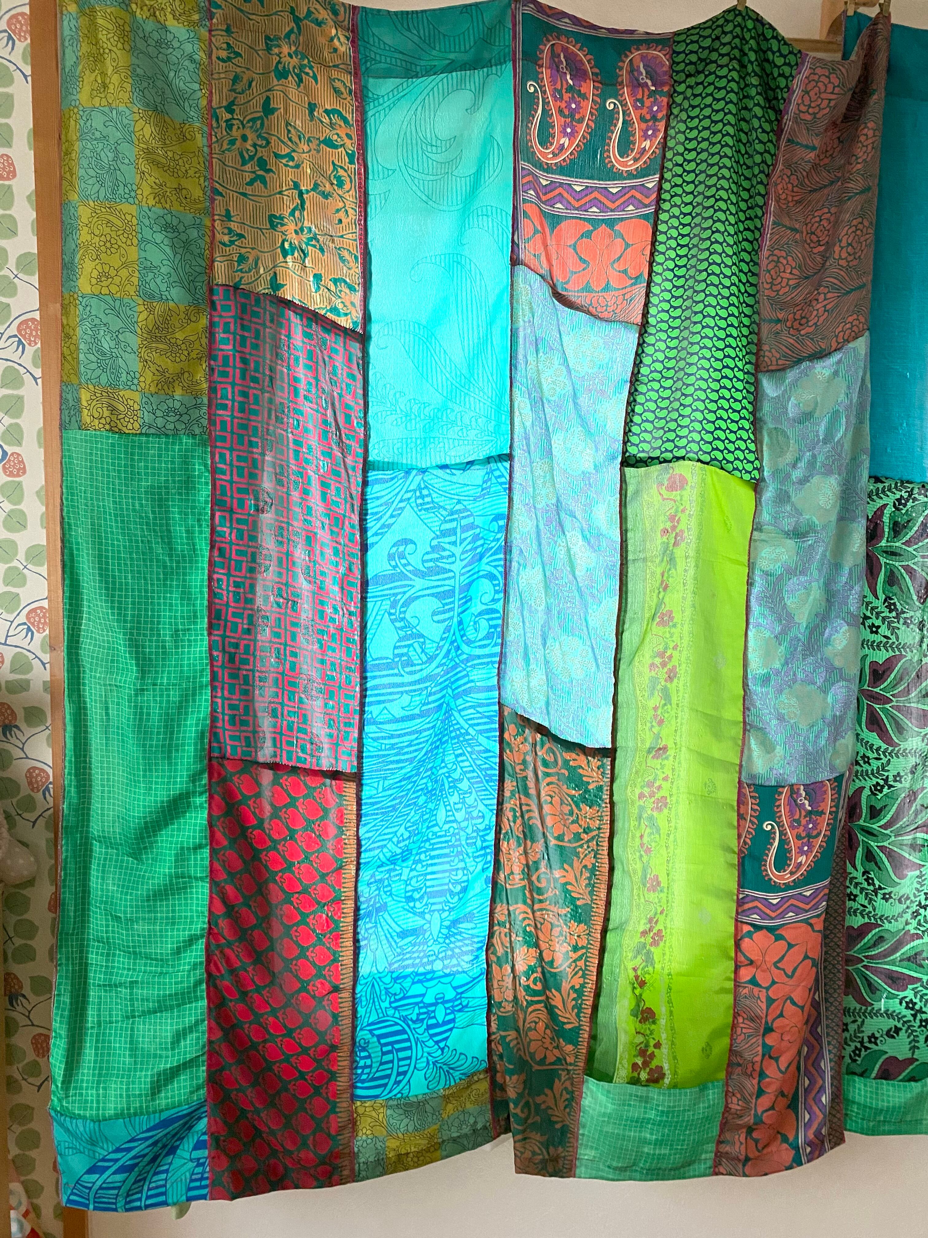 ヴィンテージサリーで出来たパッチワークシルクカーテン