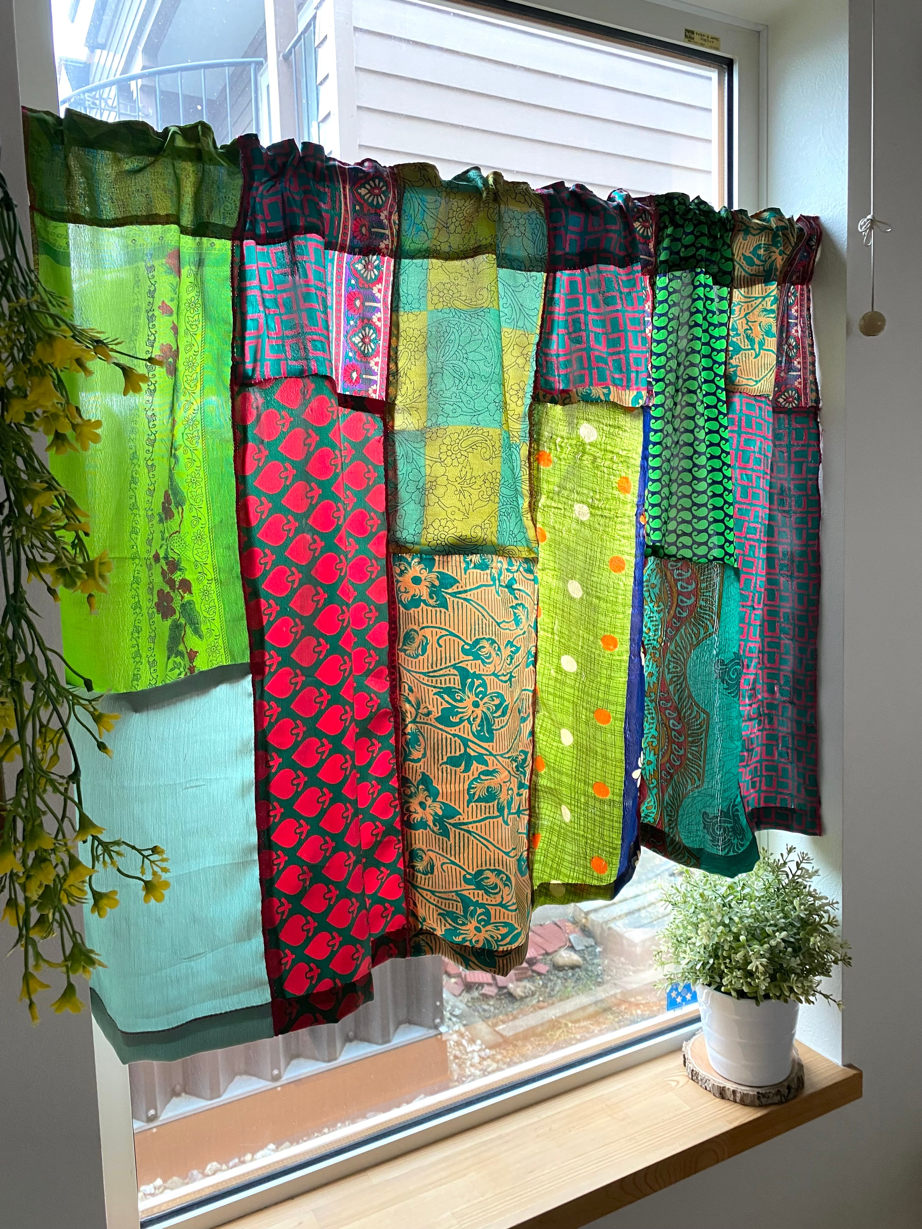 ヴィンテージサリーで出来たパッチワークシルクカーテン