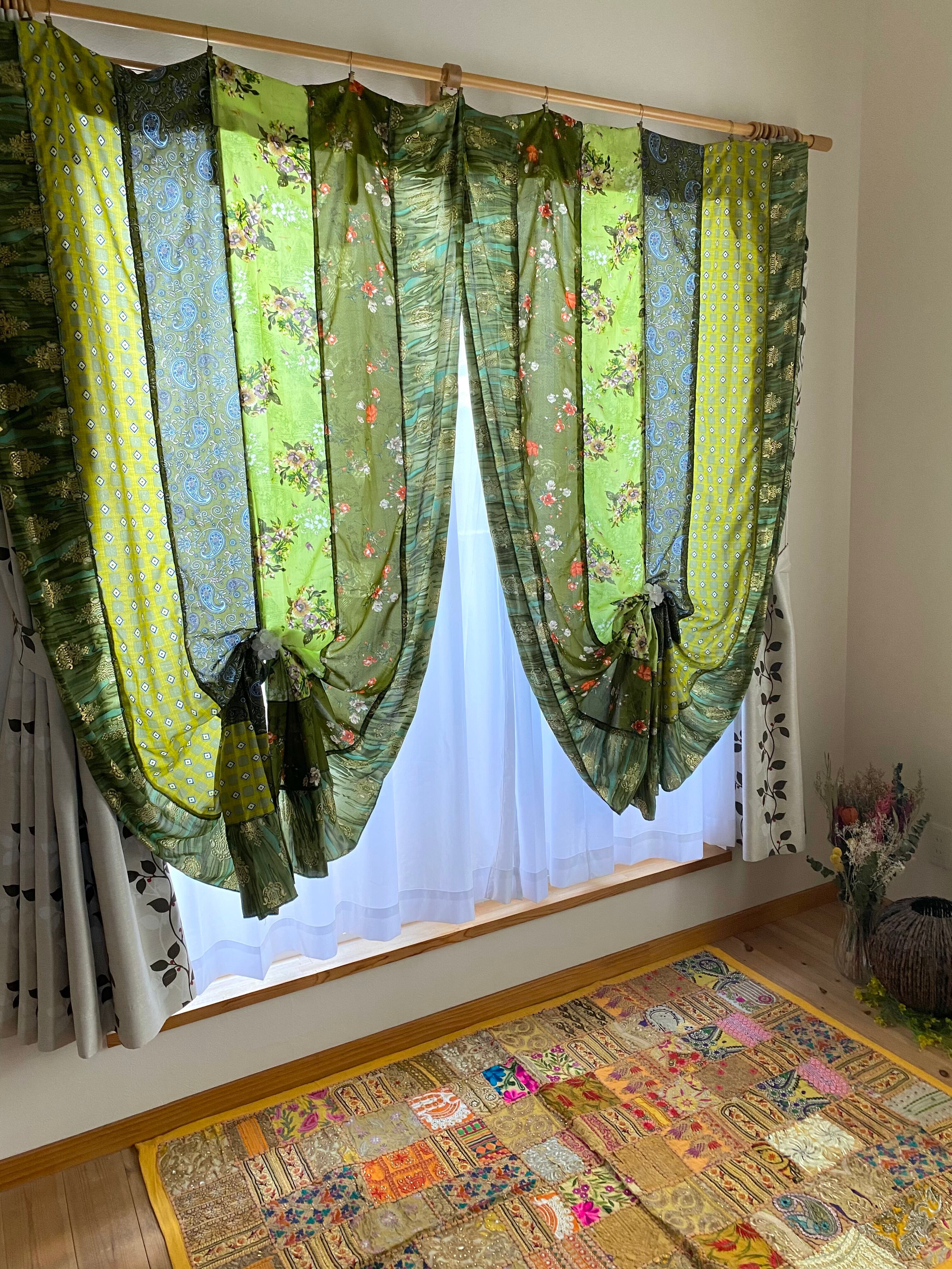 ※カーテンとしては新品未使用ですが、布はヴィンテージサリーを使っております。
